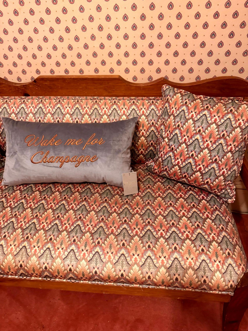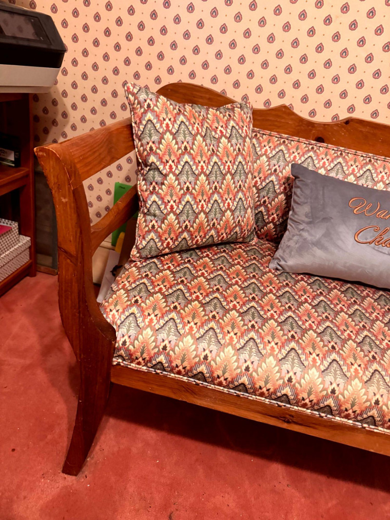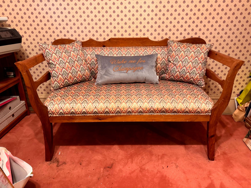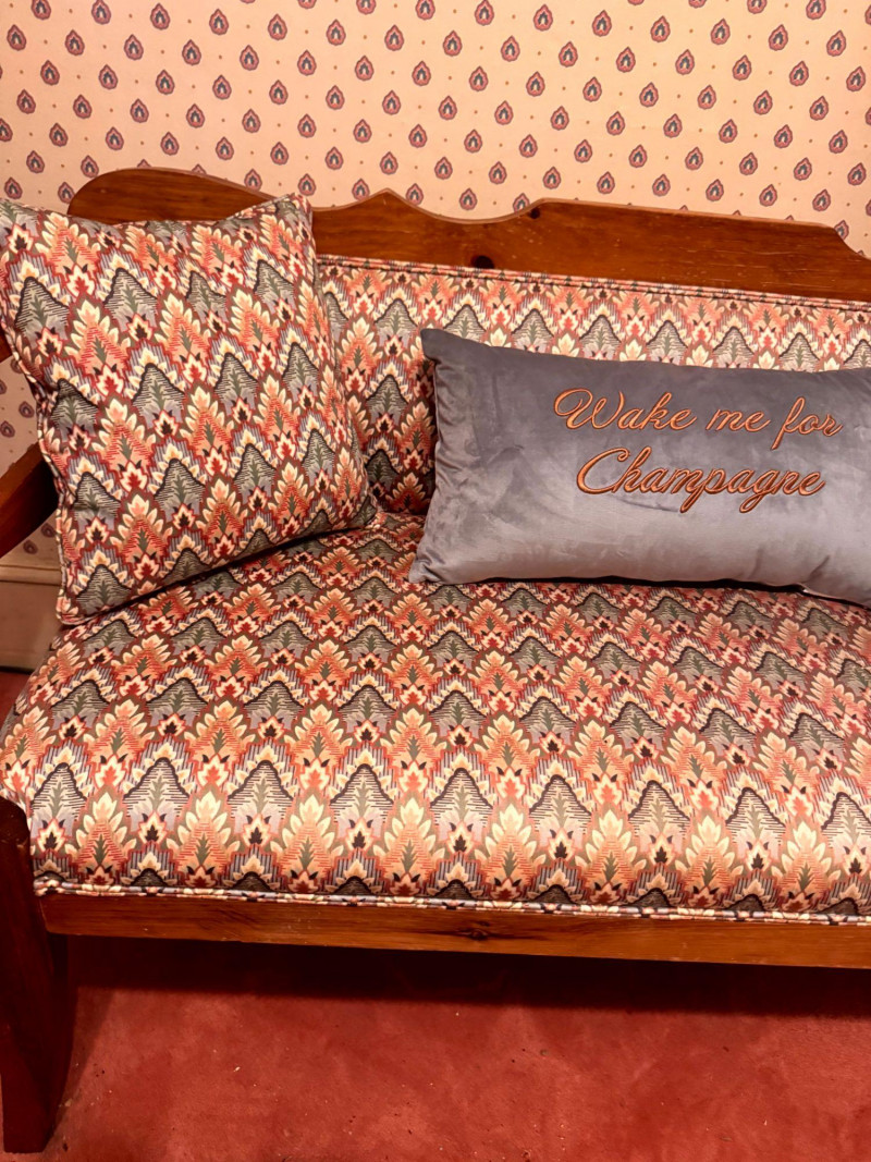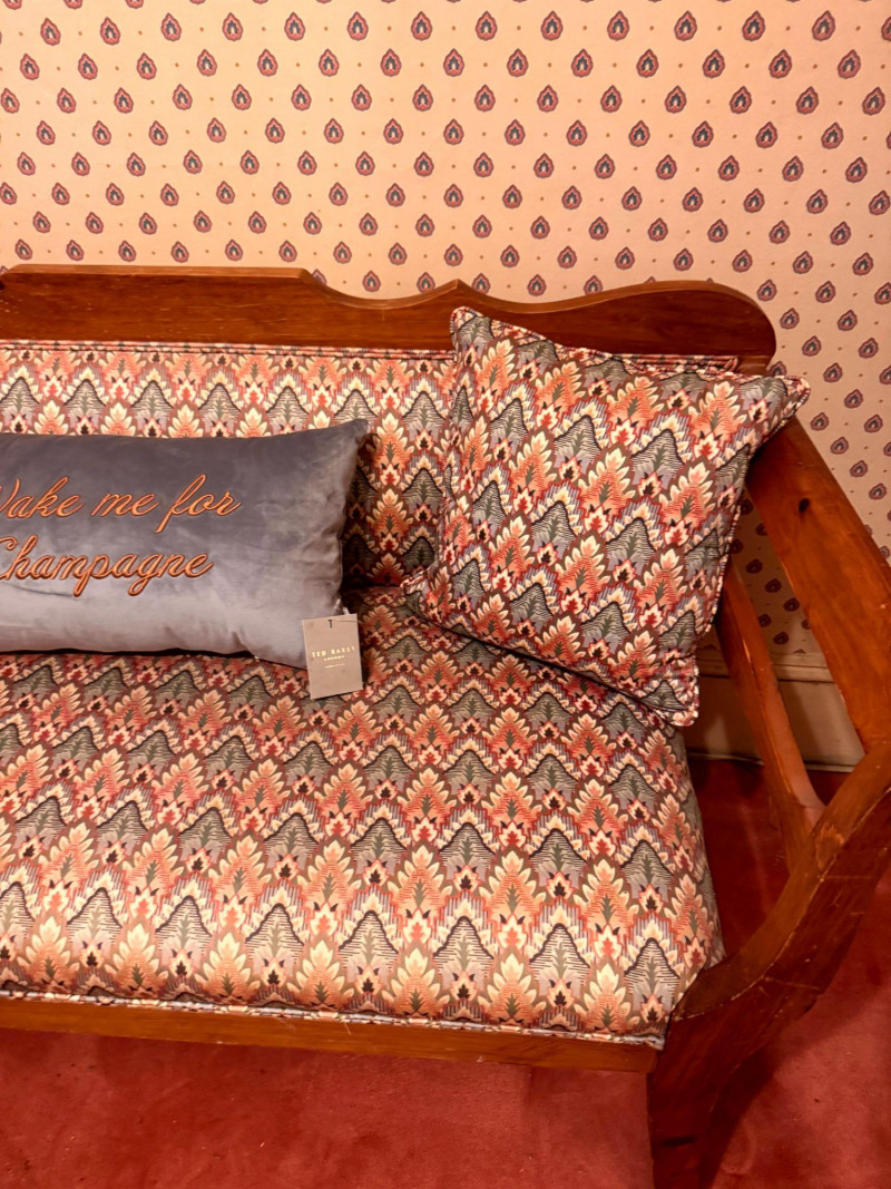 Vintage Custom Upholstered Bench w/ New Ted Baker Velvet Pillow +
