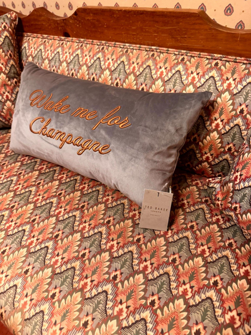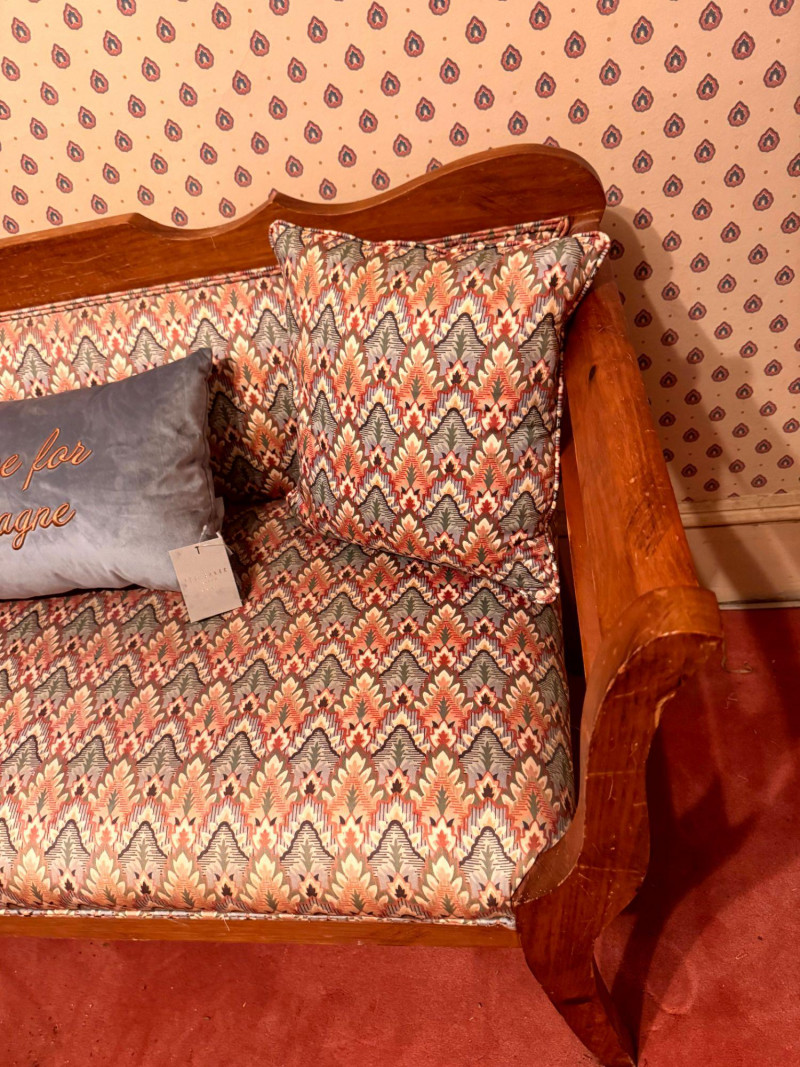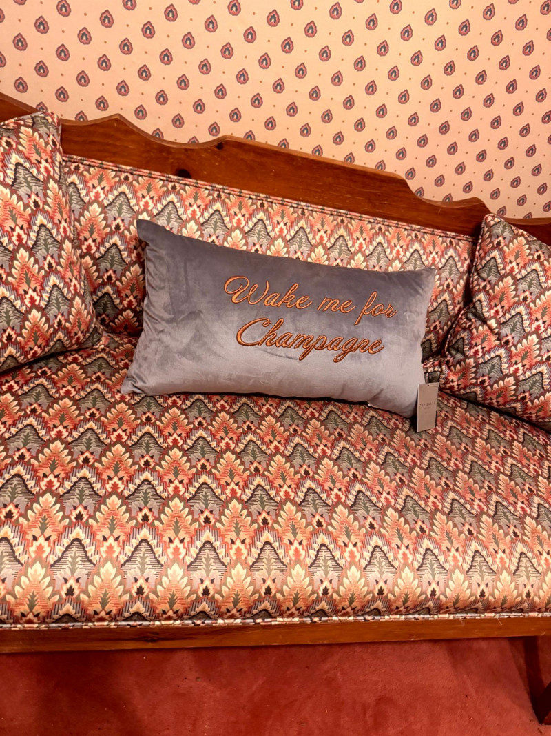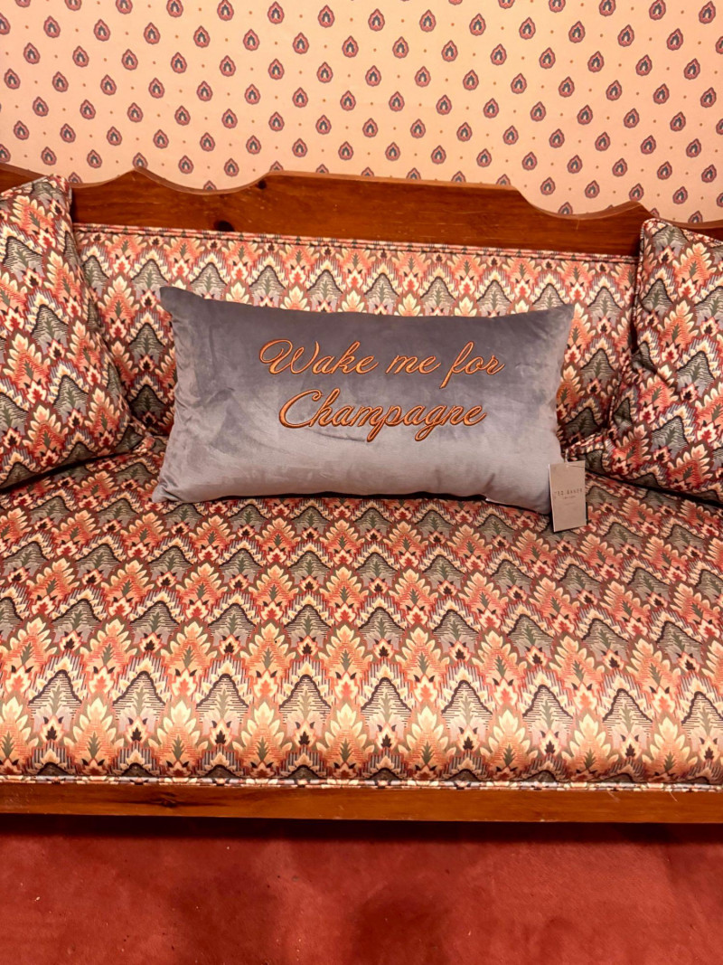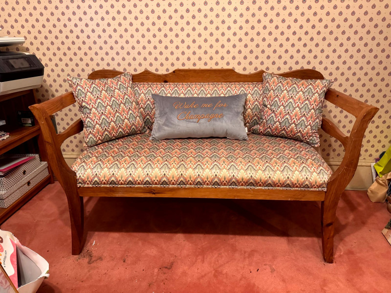 Vintage Custom Upholstered Bench w/ New Ted Baker Velvet Pillow +