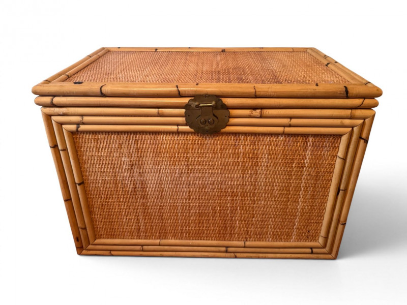 Lot # 37 - Bamboo & Woven Rattan Storage Chest – McGuire Style Trunk