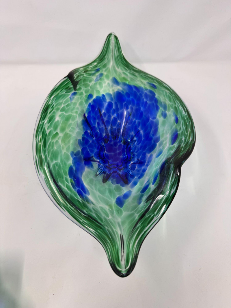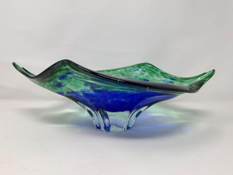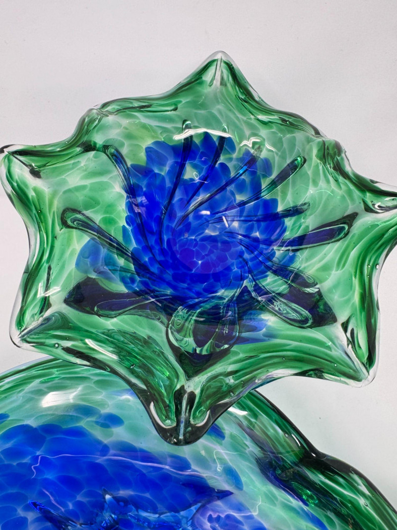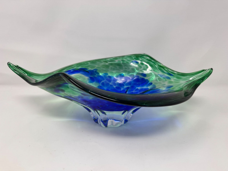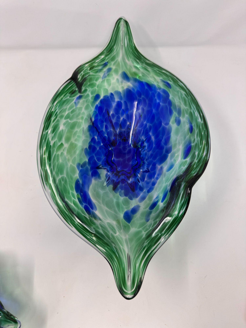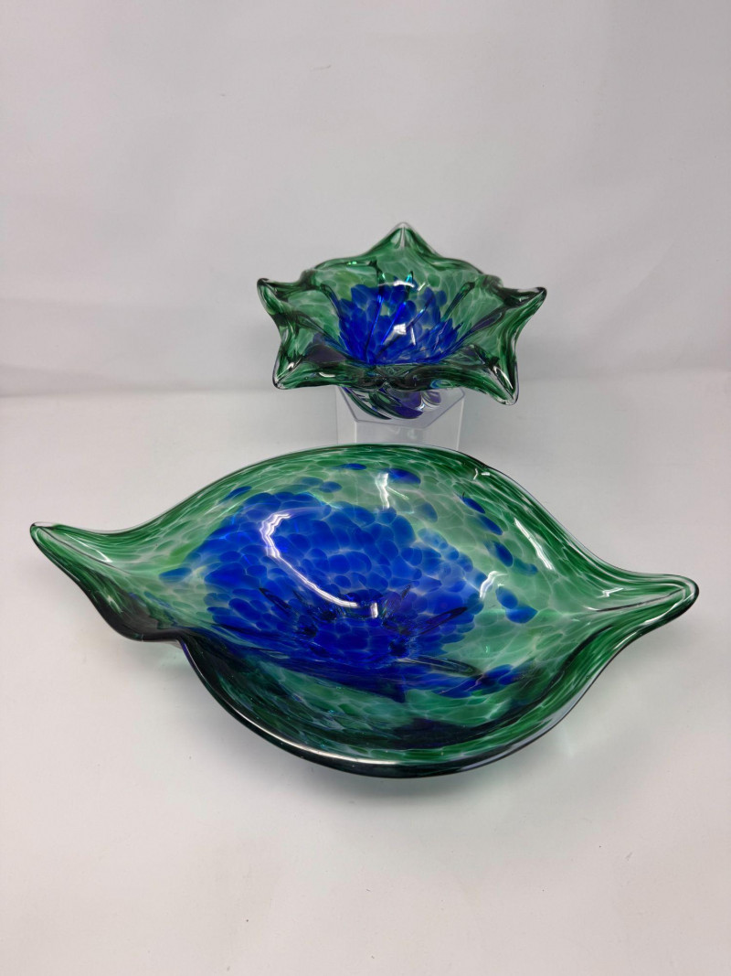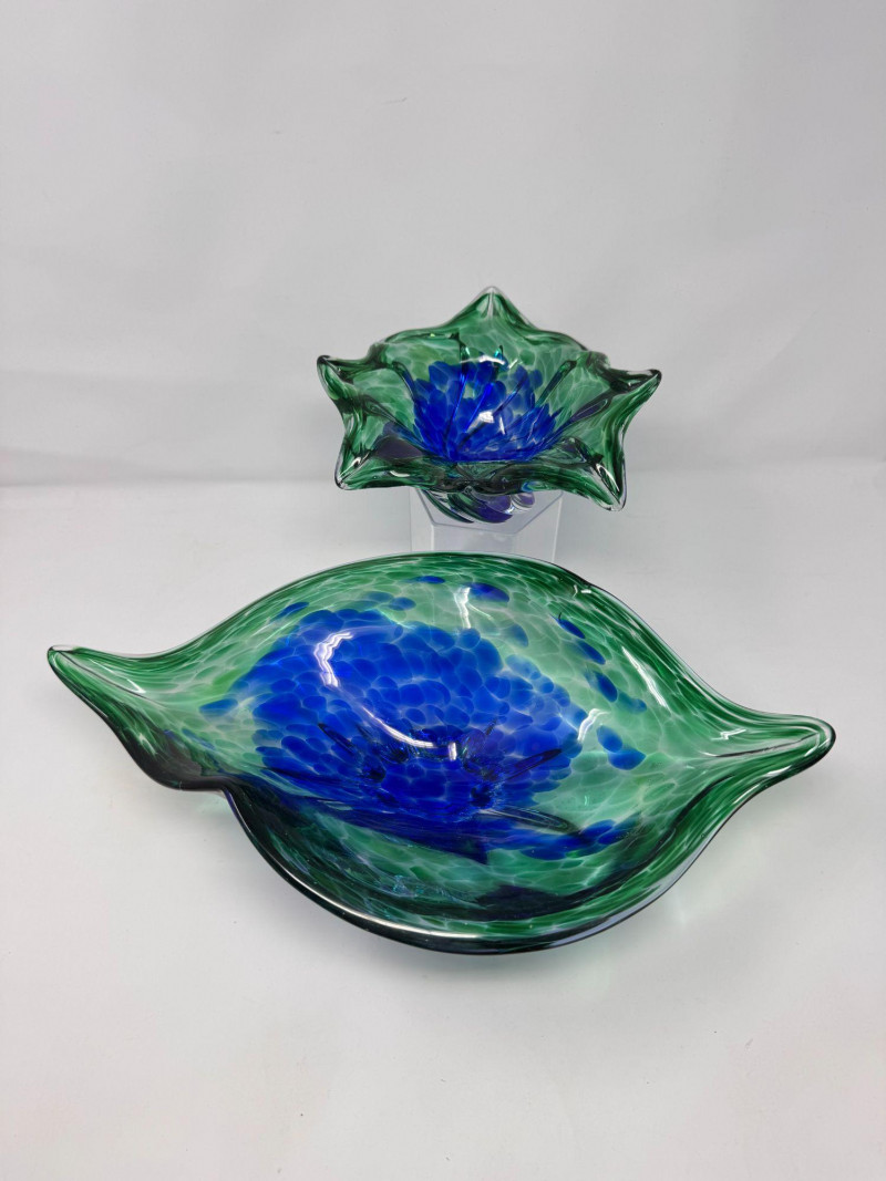 Lot # 42 - Hand Blown Art Glass Bowls - Freeform w/ Blue Green Swirl