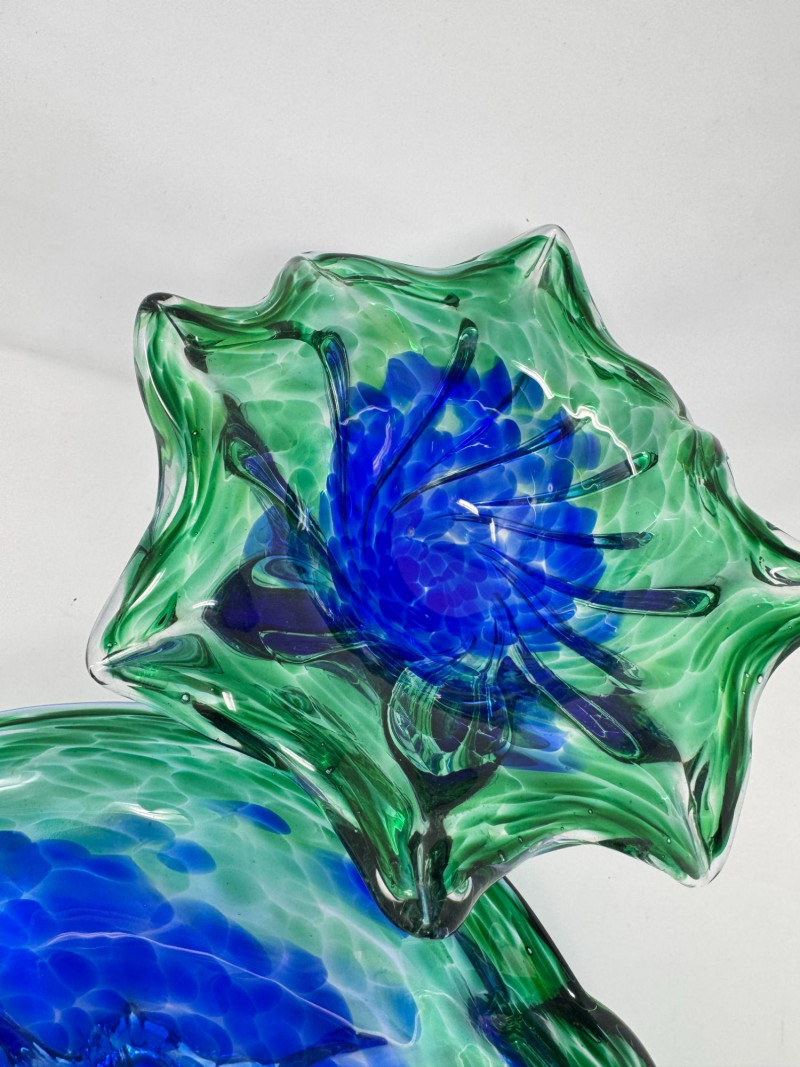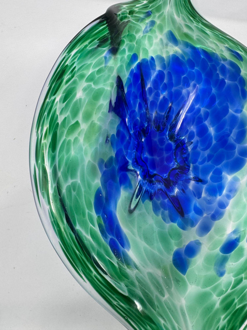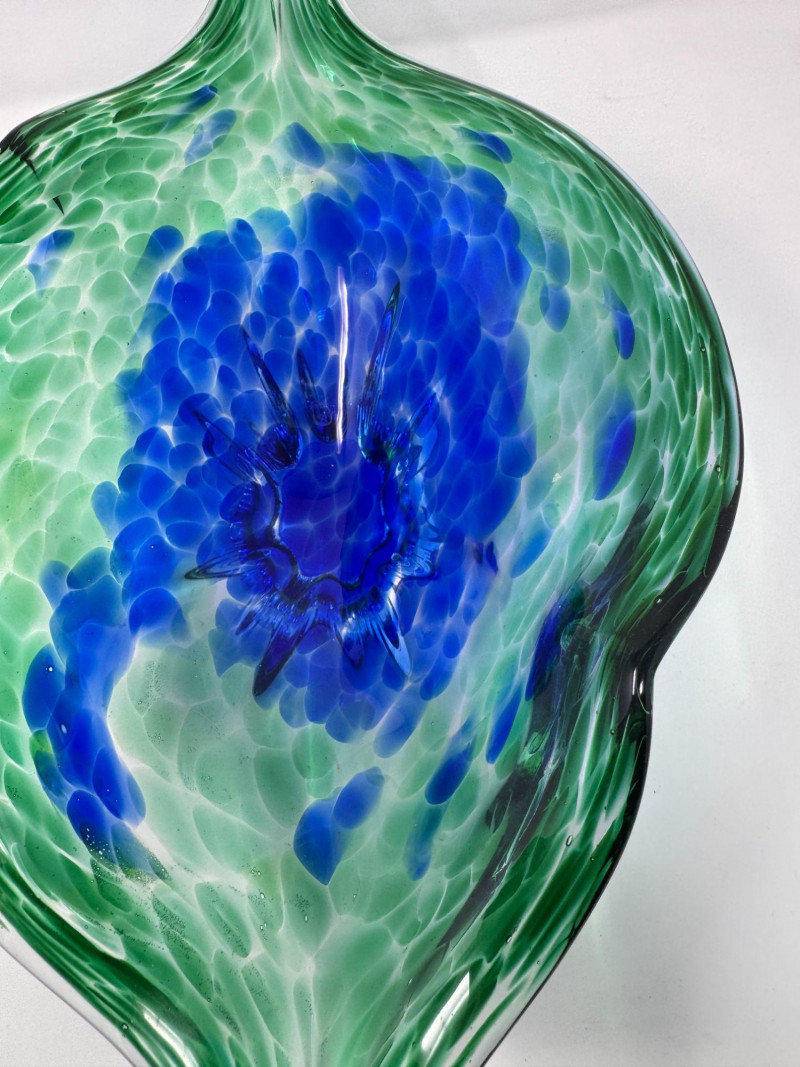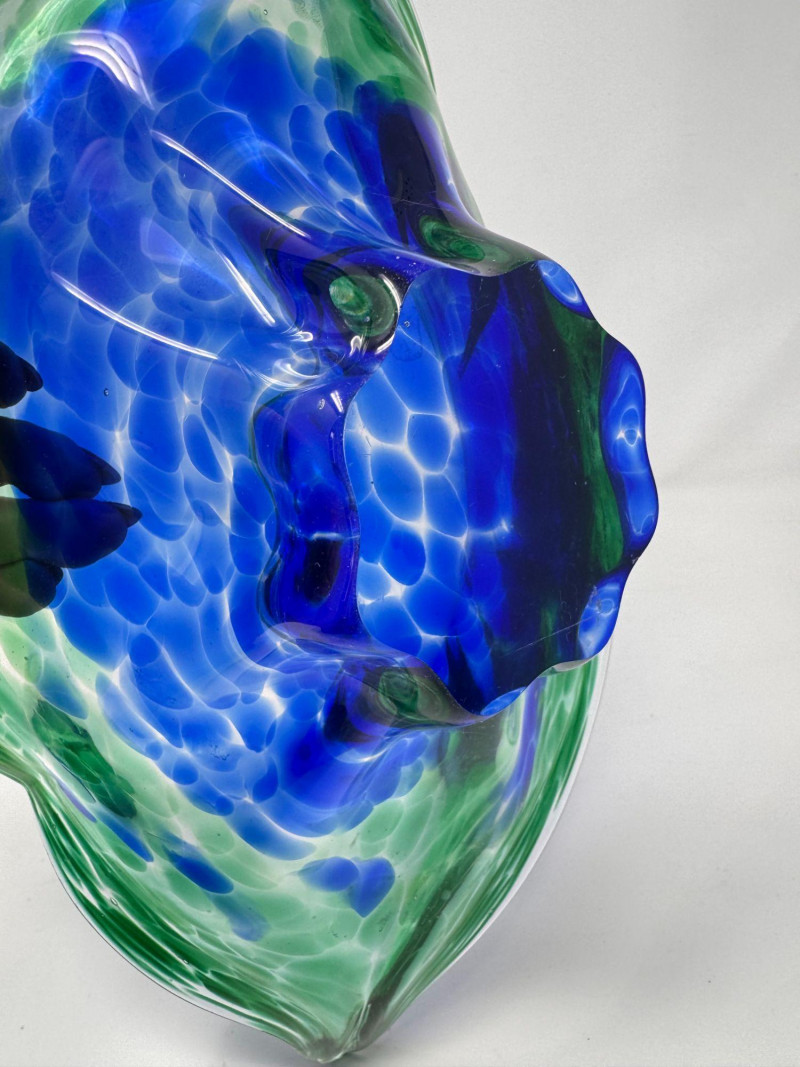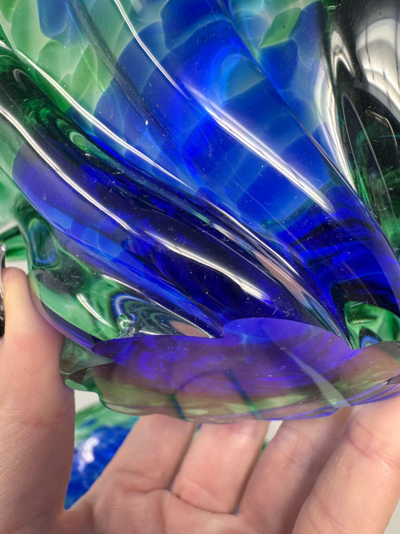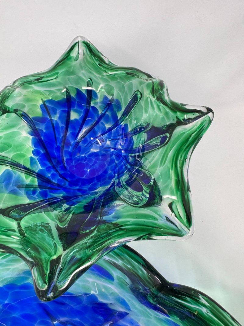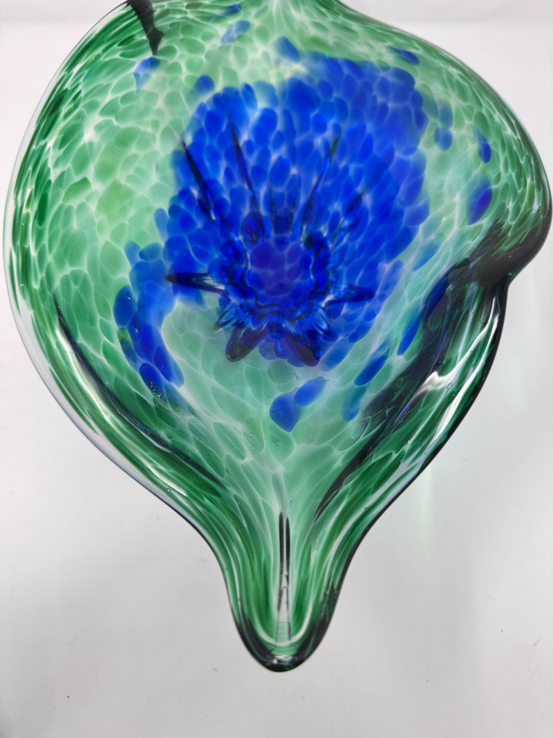 Lot # 42 - Hand Blown Art Glass Bowls - Freeform w/ Blue Green Swirl