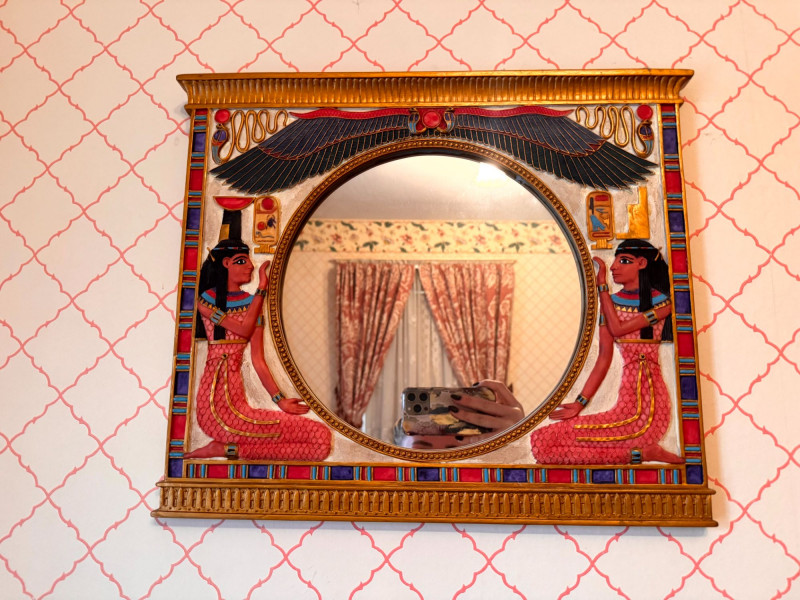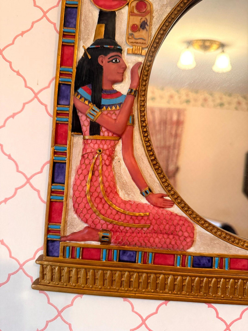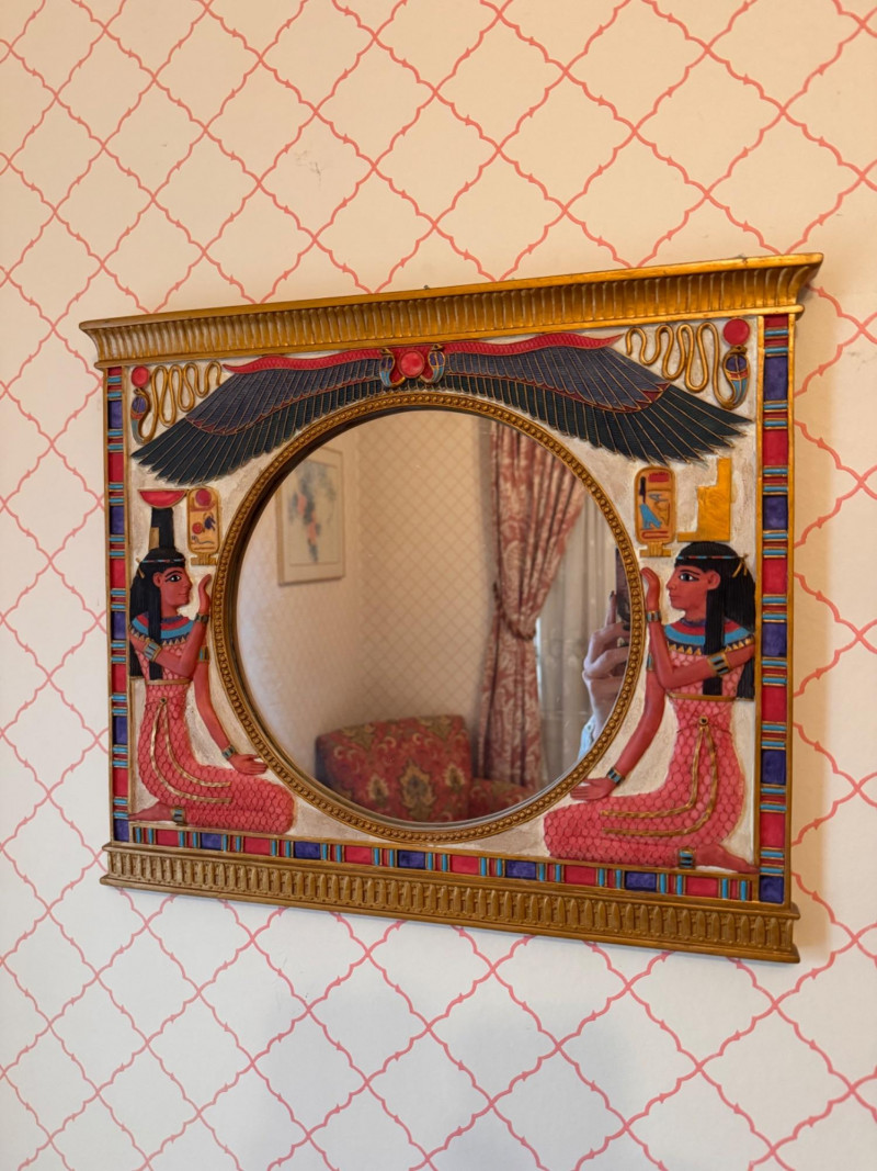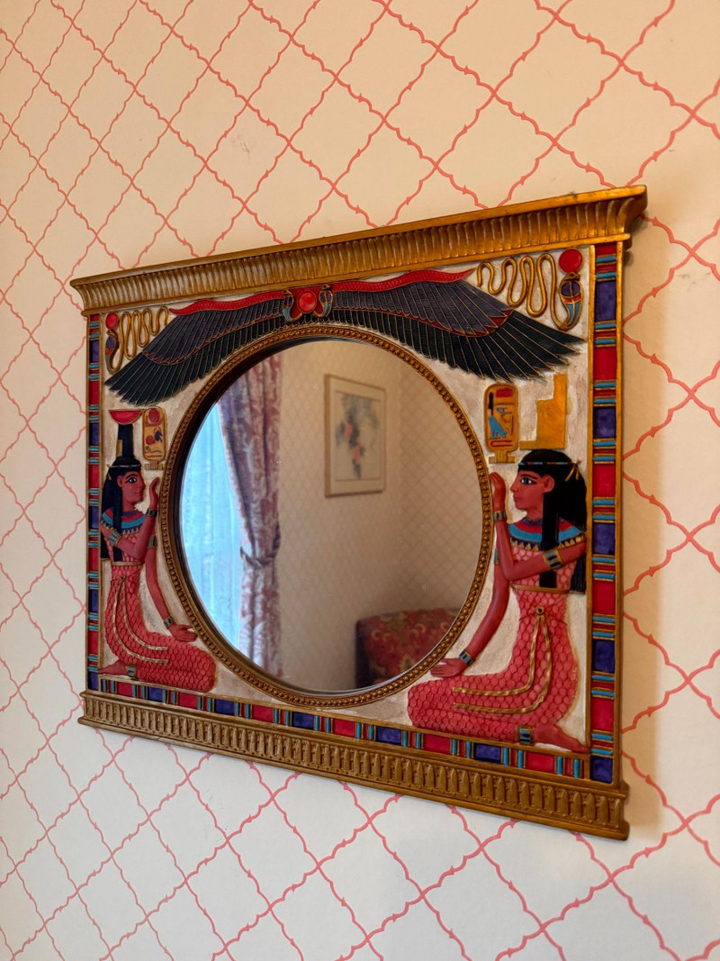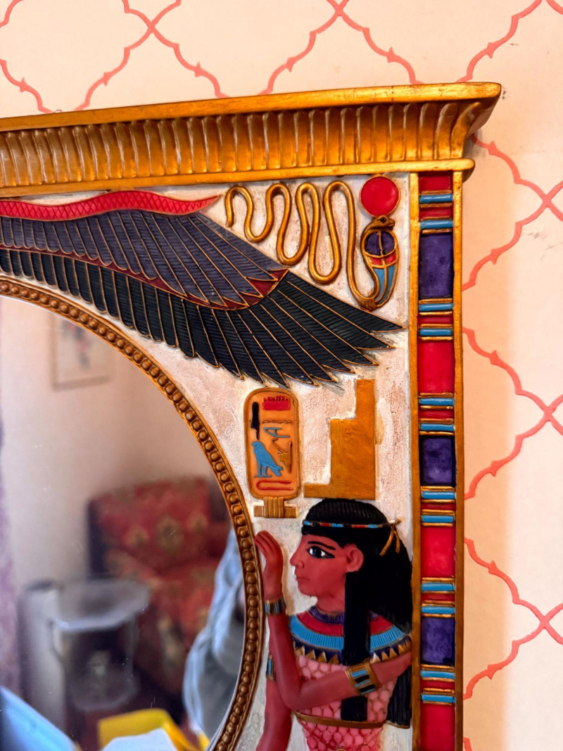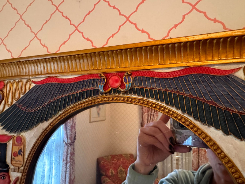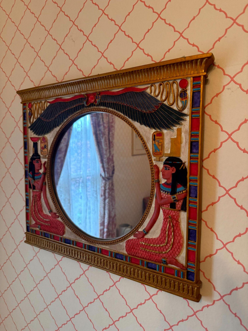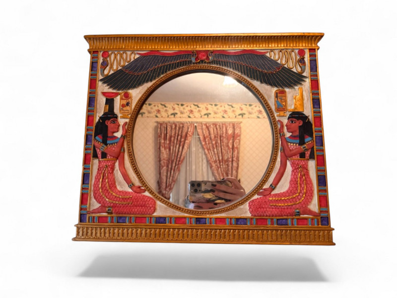 Lot # 44 - Egyptian Revival Wall Mirror w/ Winged Scarab & Figural Frame