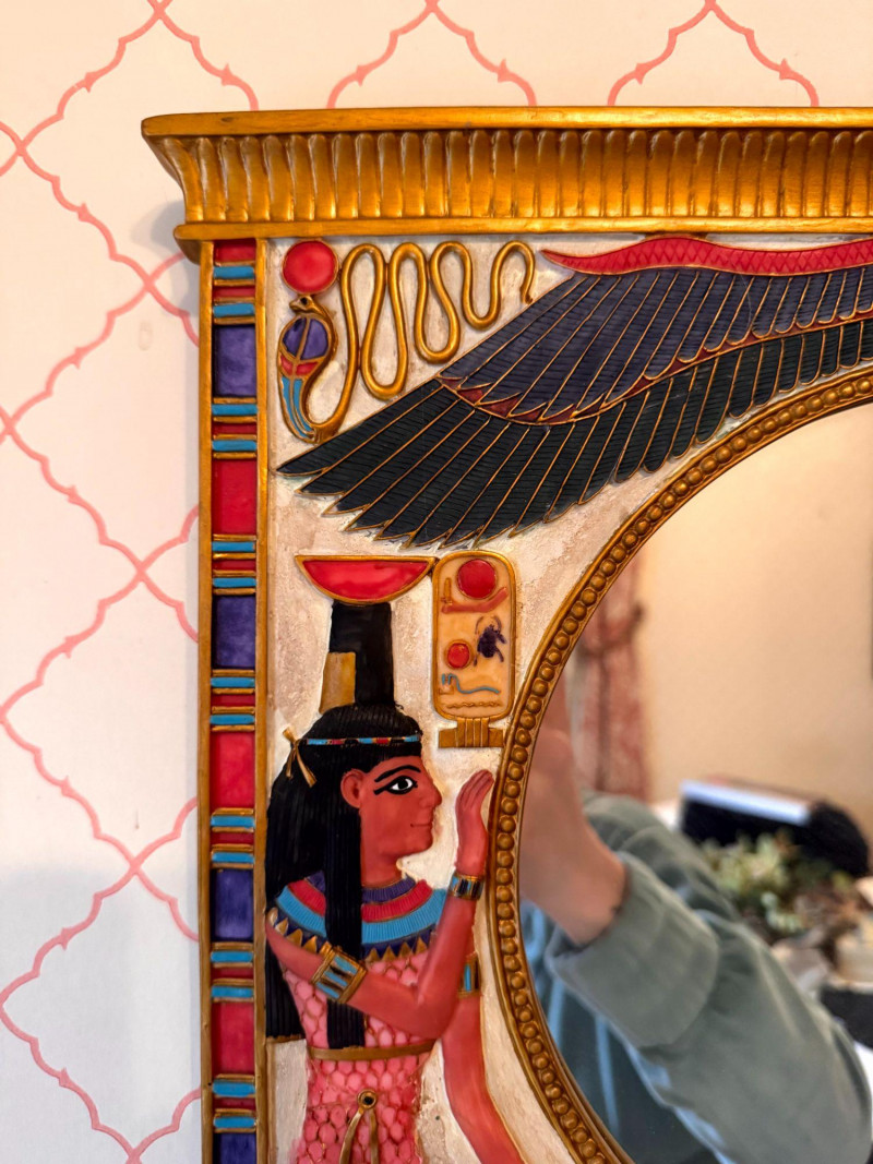 Egyptian Revival Wall Mirror w/ Winged Scarab & Figural Frame.