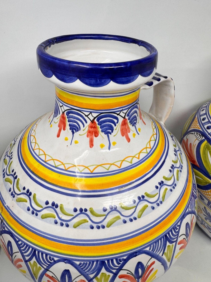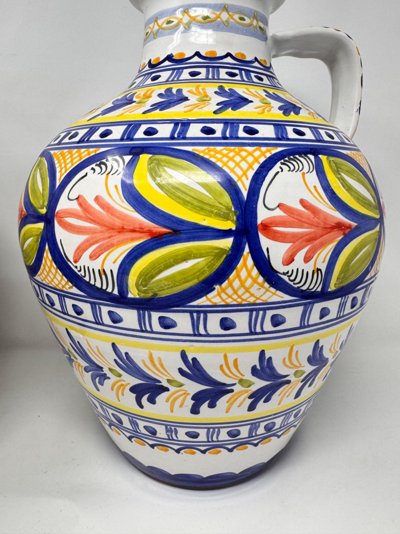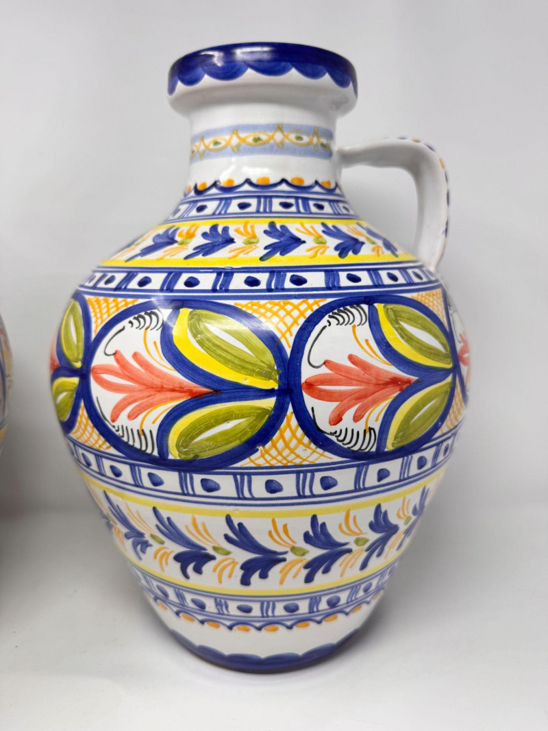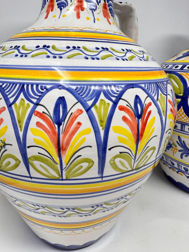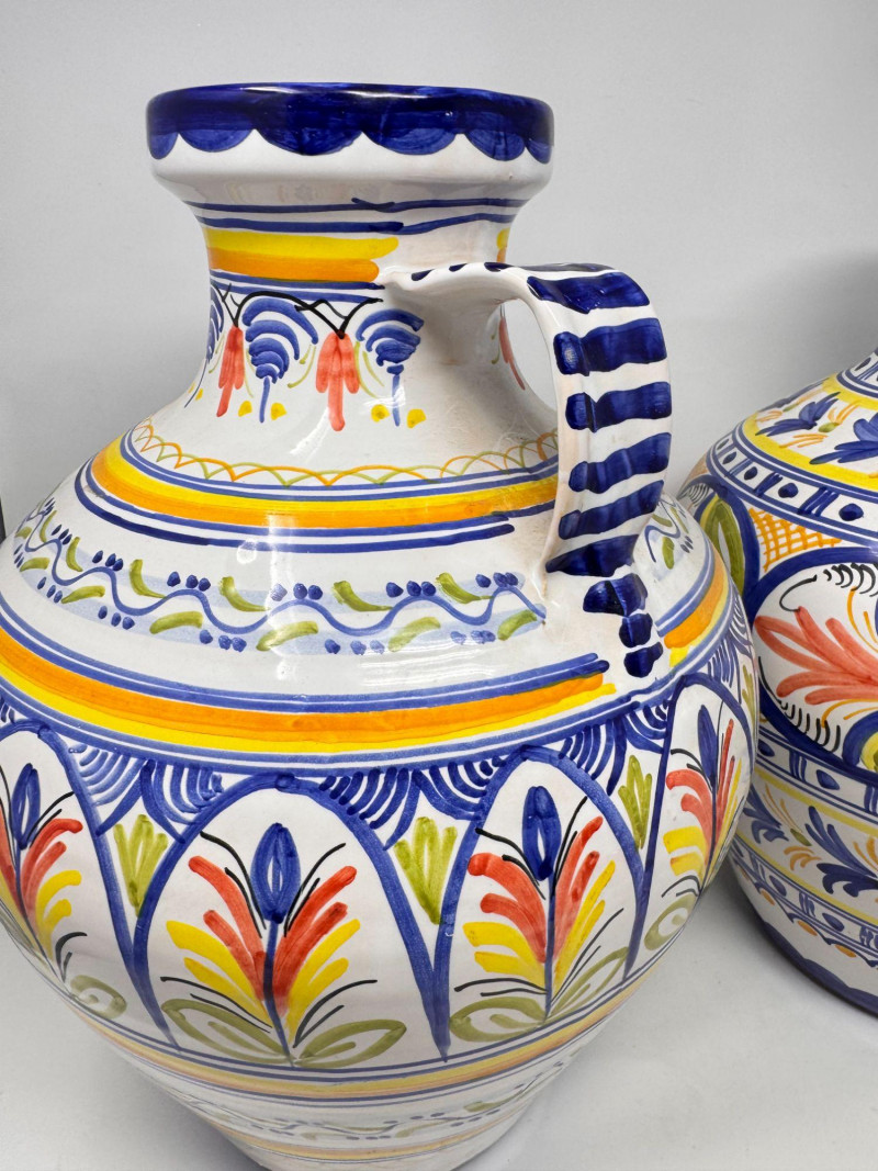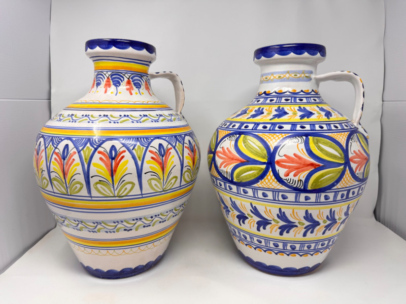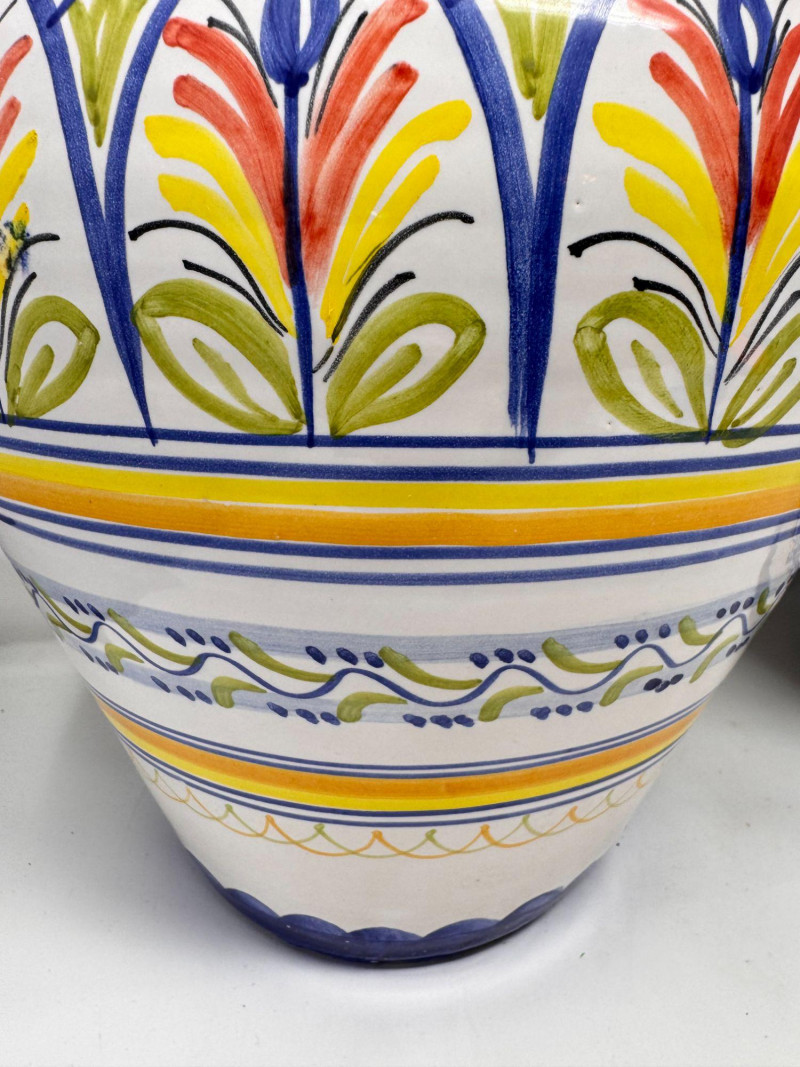 Large Hand Painted Ceramic Vases - Colorful Folk Art Style, Pair.