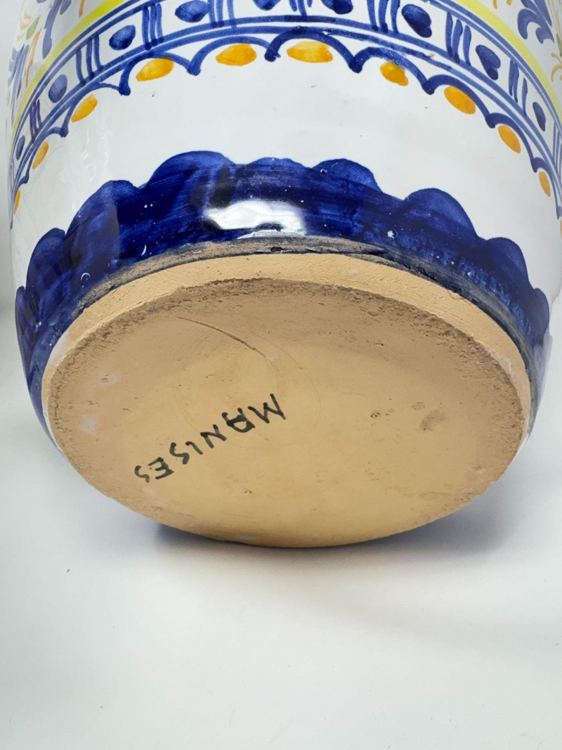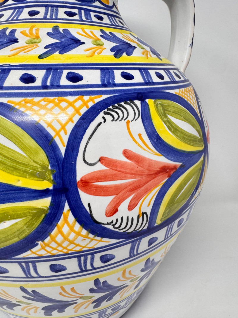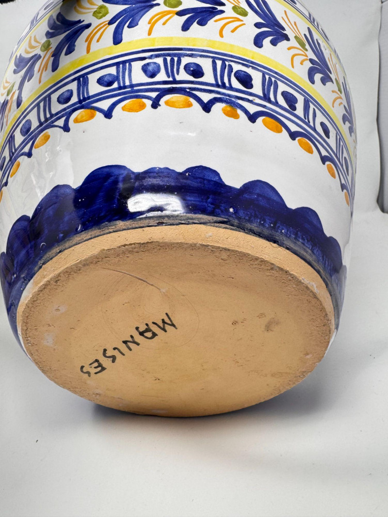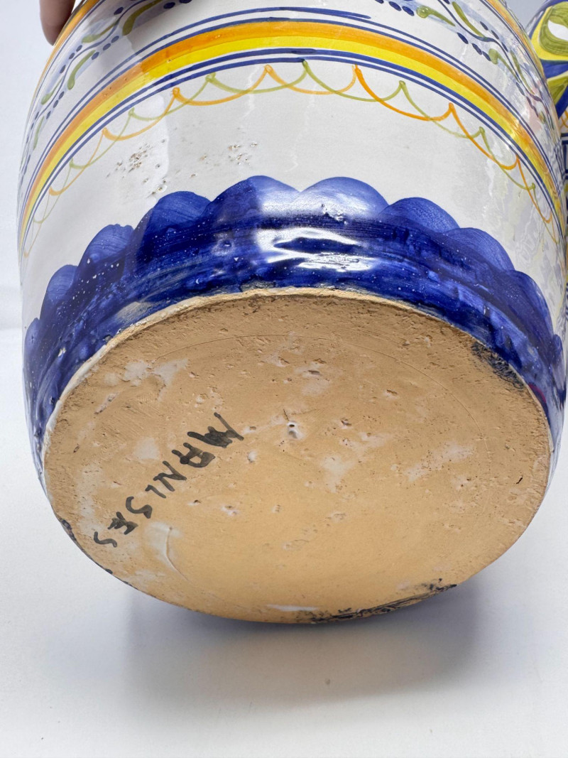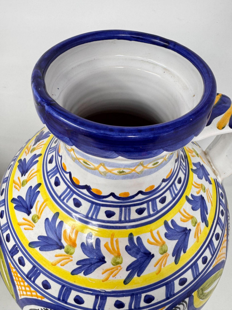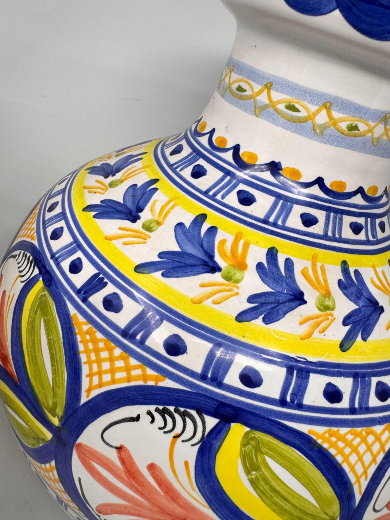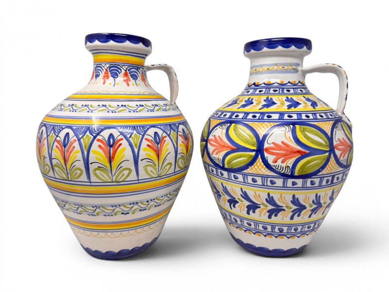 Large Hand Painted Ceramic Vases - Colorful Folk Art Style, Pair.