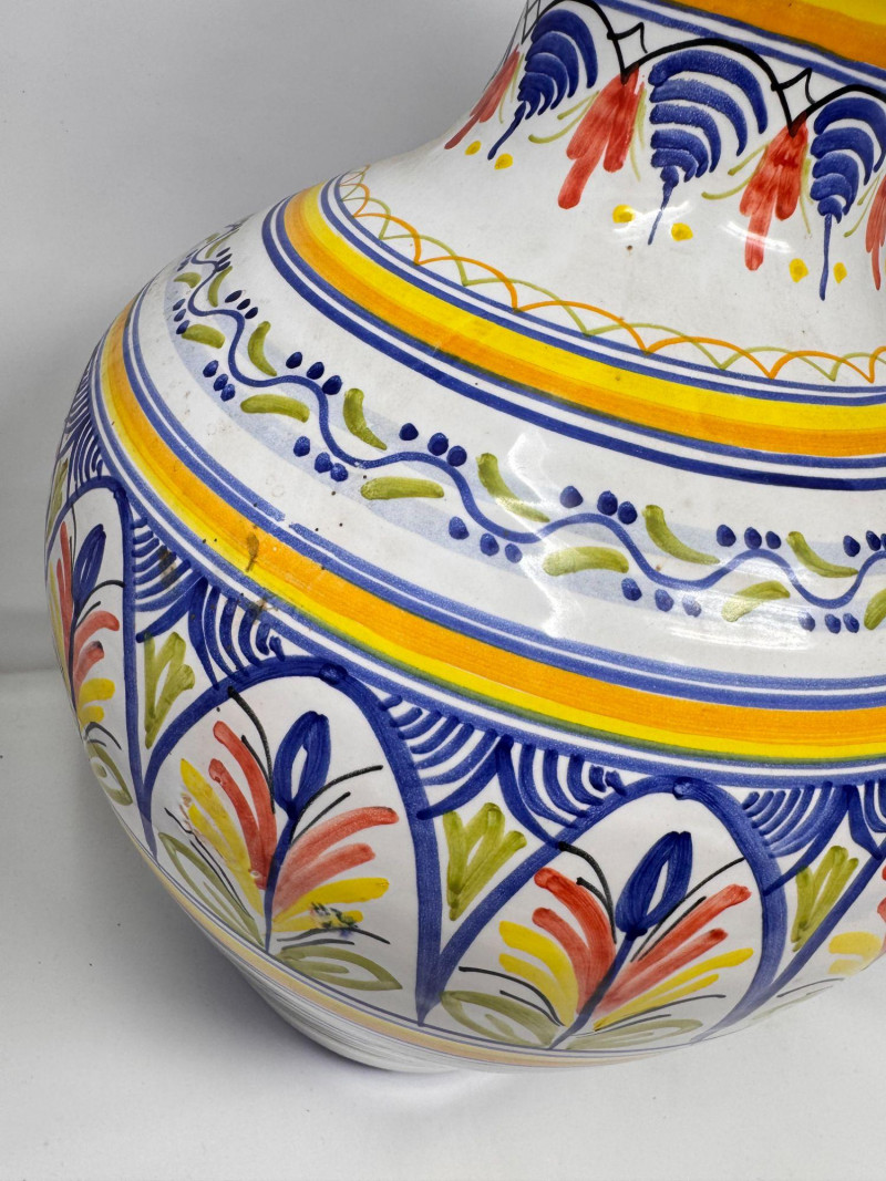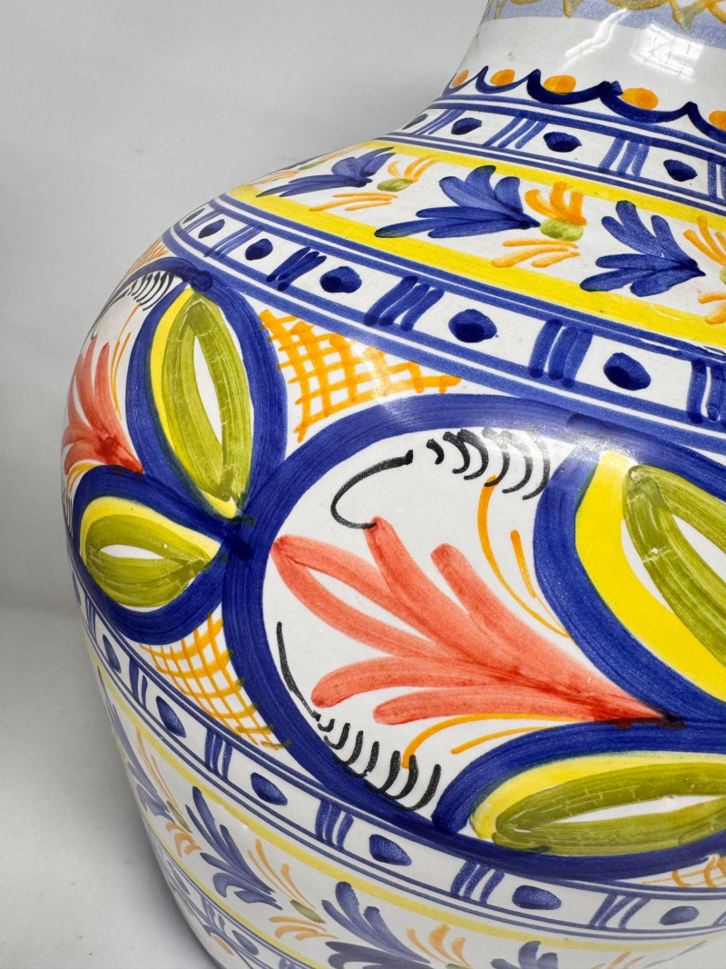 Lot # 45 - Large Hand Painted Ceramic Vases - Colorful Folk Art Style, Pair