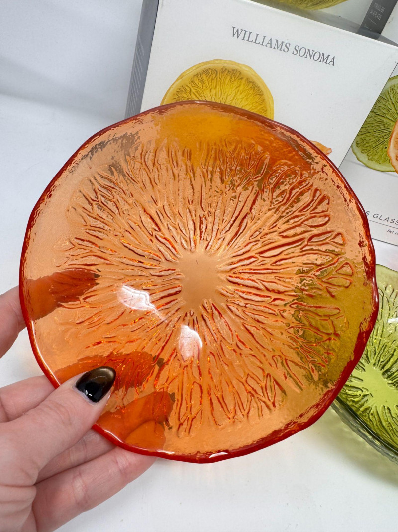 Williams Sonoma Citrus Glass Salad Plates & Bowls Set - New in Box.