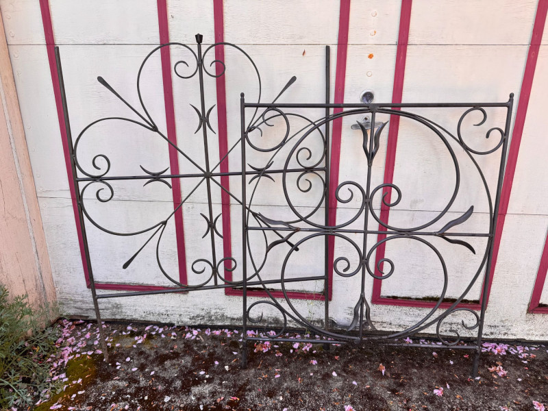 Set of 2 Decorative Wrought Iron Garden Trellis Panels - Scroll Design.
