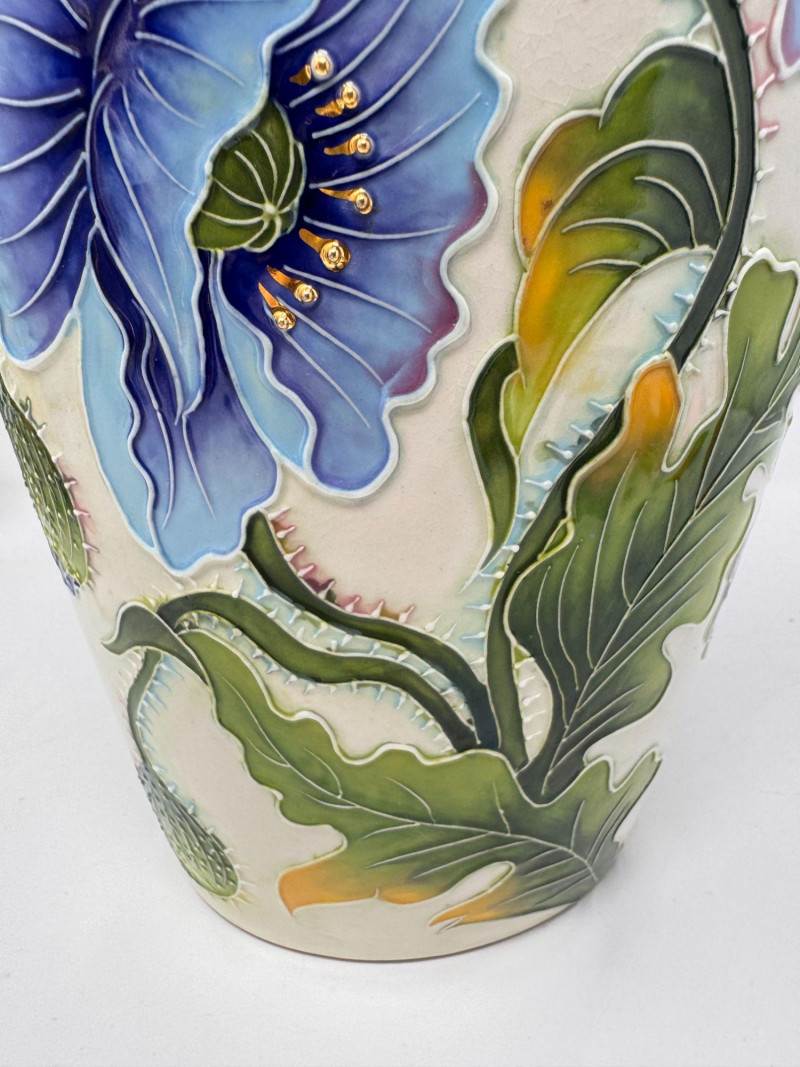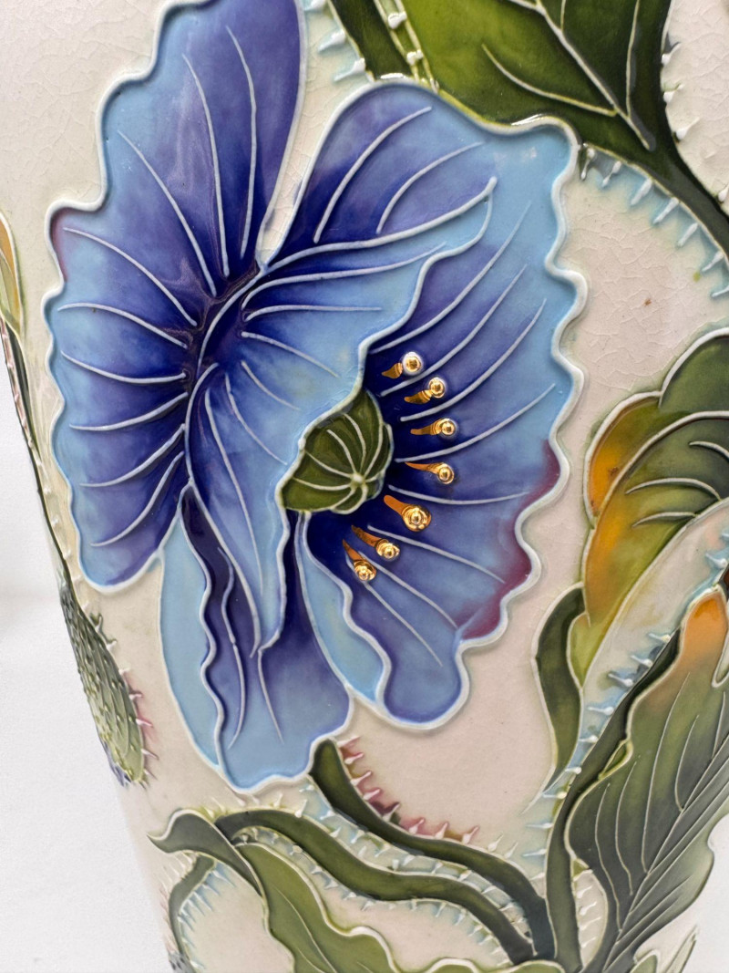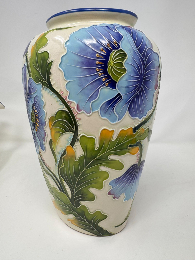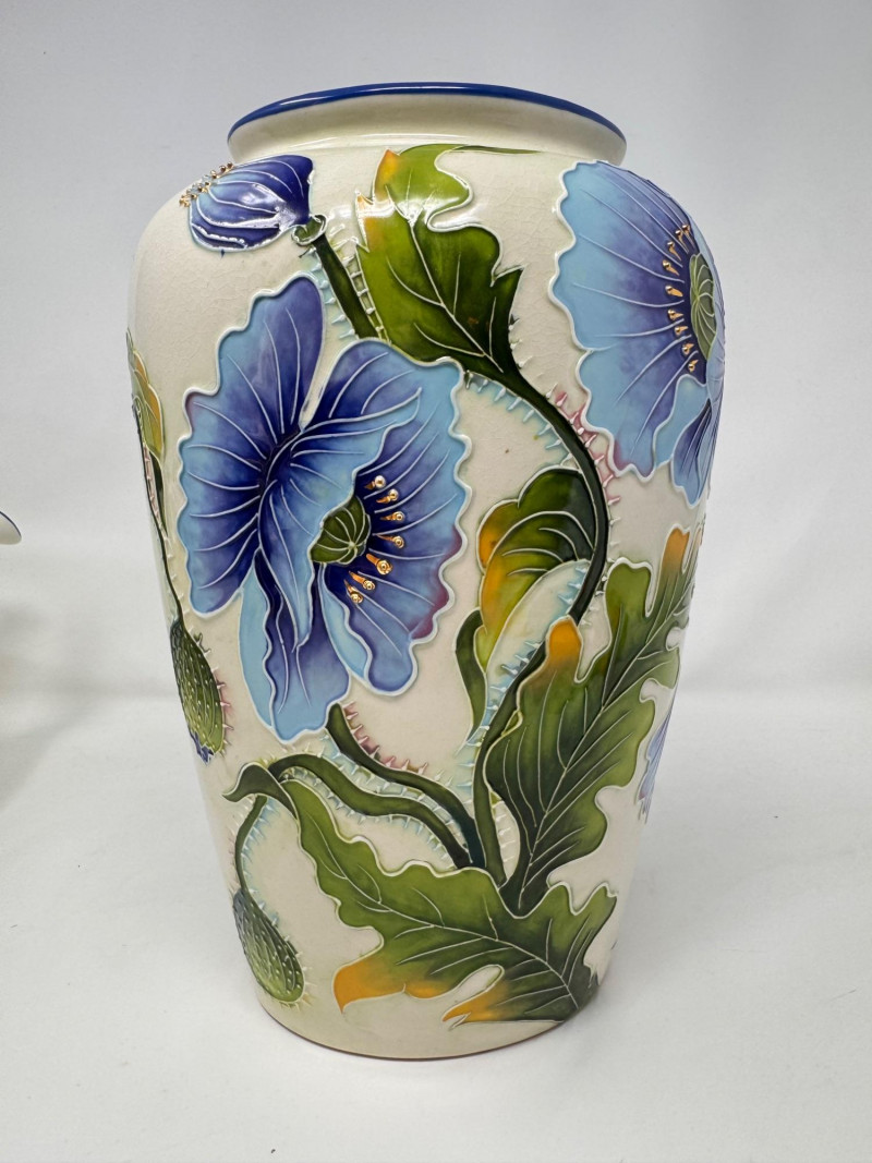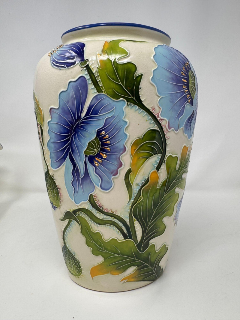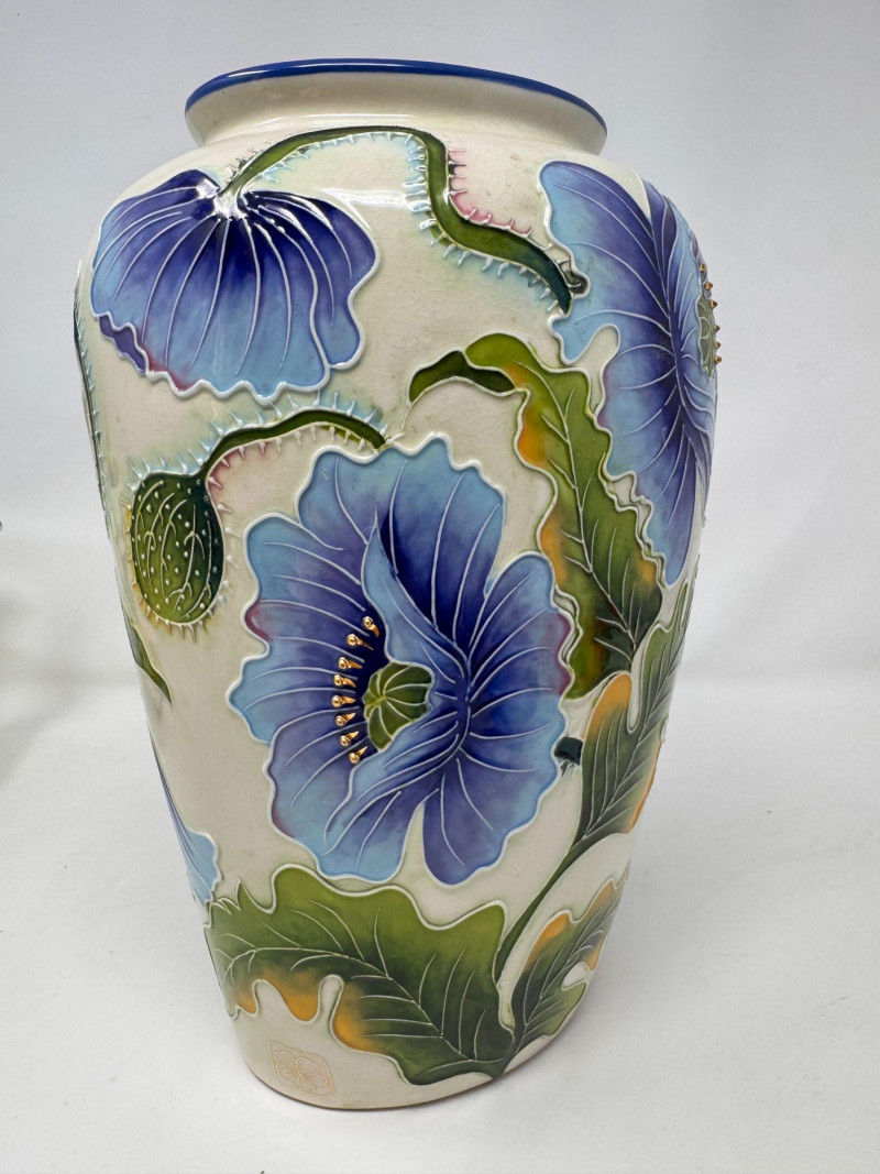 Lot # 53 - J McCall Blue Sky Clayworks - Large Poppy Floral Vase Embossed Design