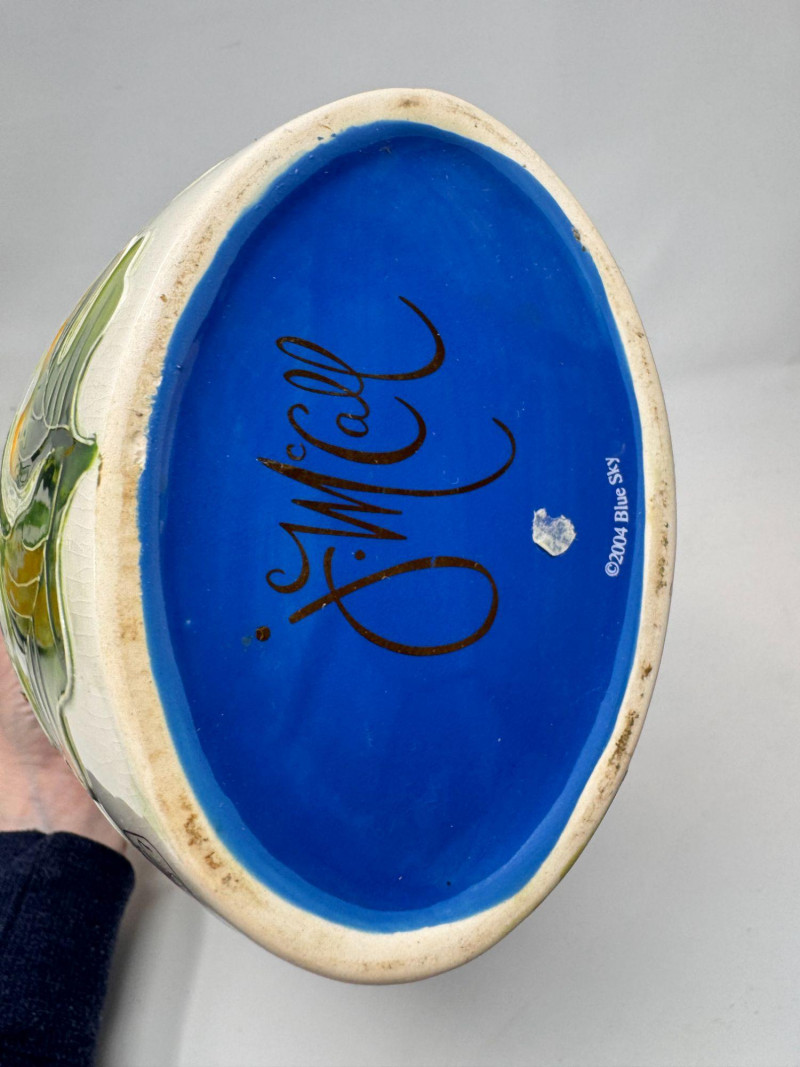 J McCall Blue Sky Clayworks - Large Poppy Floral Vase Embossed Design.