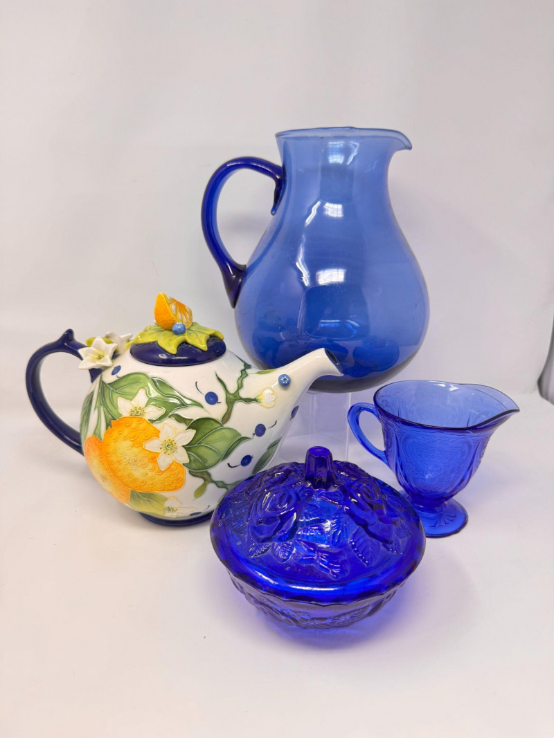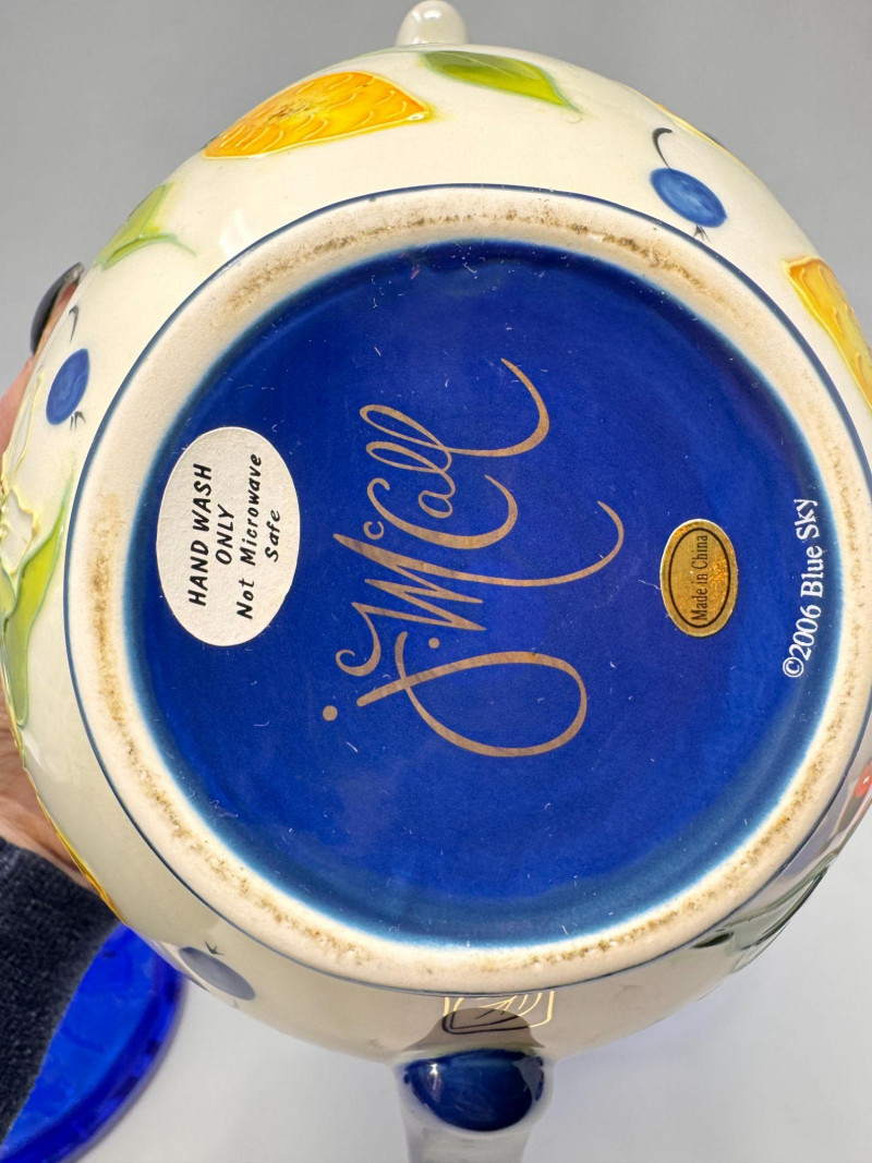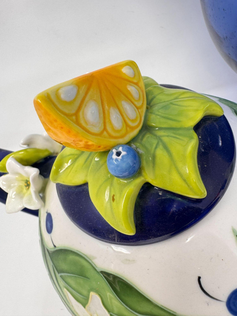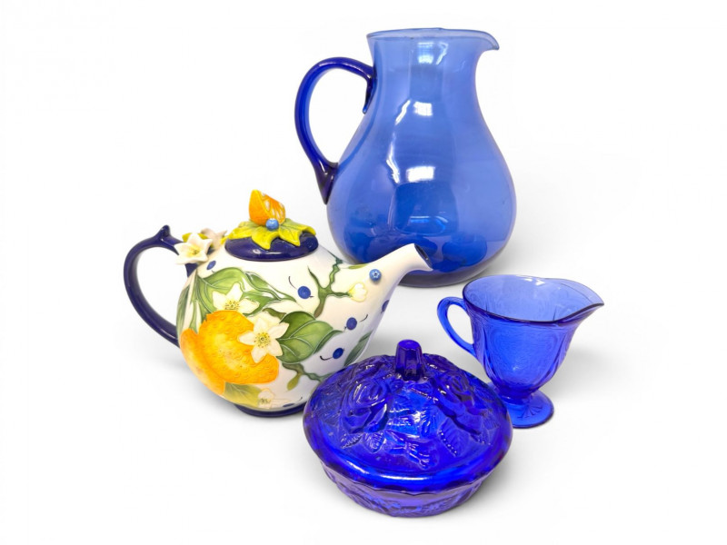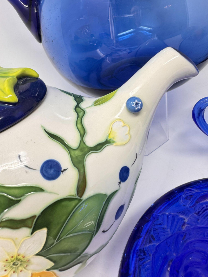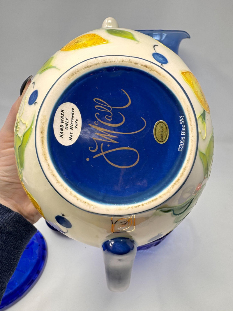 Blue Sky Clayworks J McCall Lemon Teapot & Cobalt Blue Pitcher +