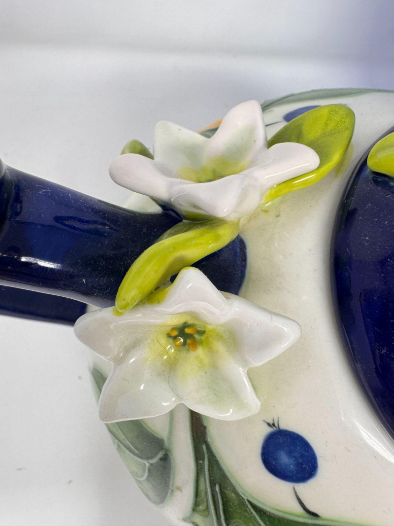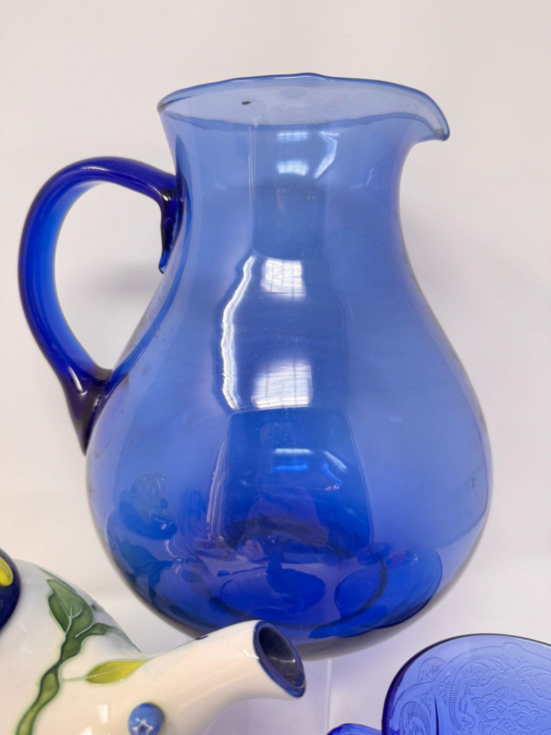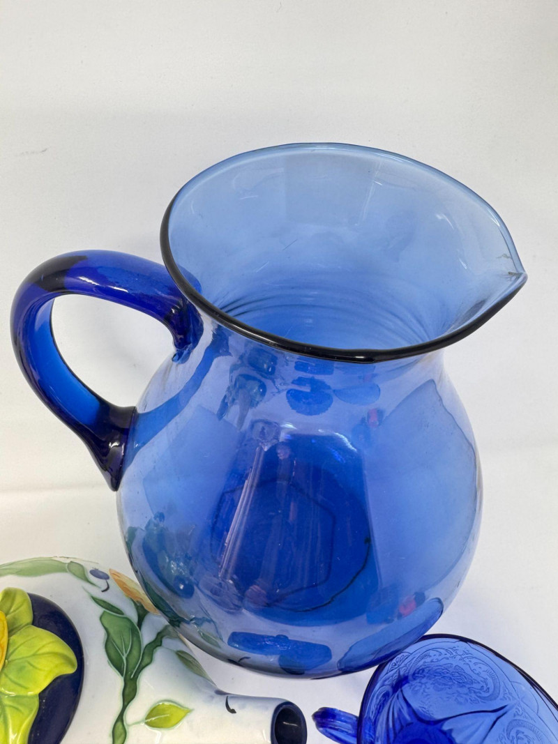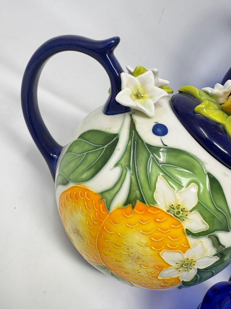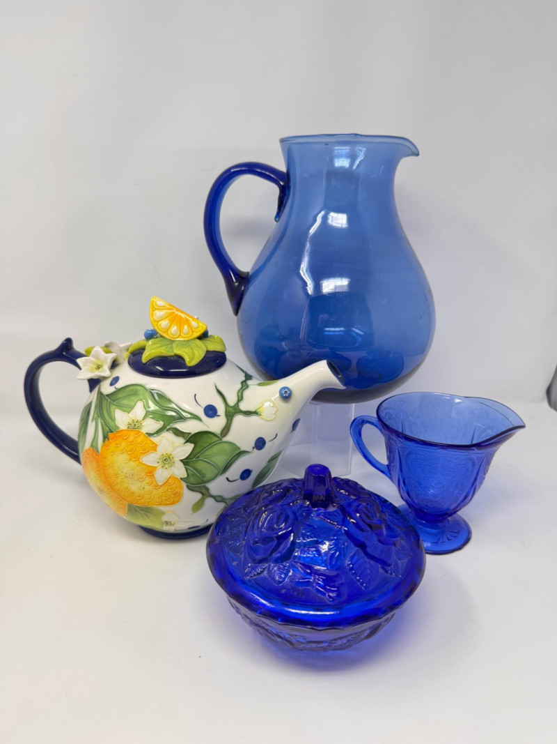 Blue Sky Clayworks J McCall Lemon Teapot & Cobalt Blue Pitcher +