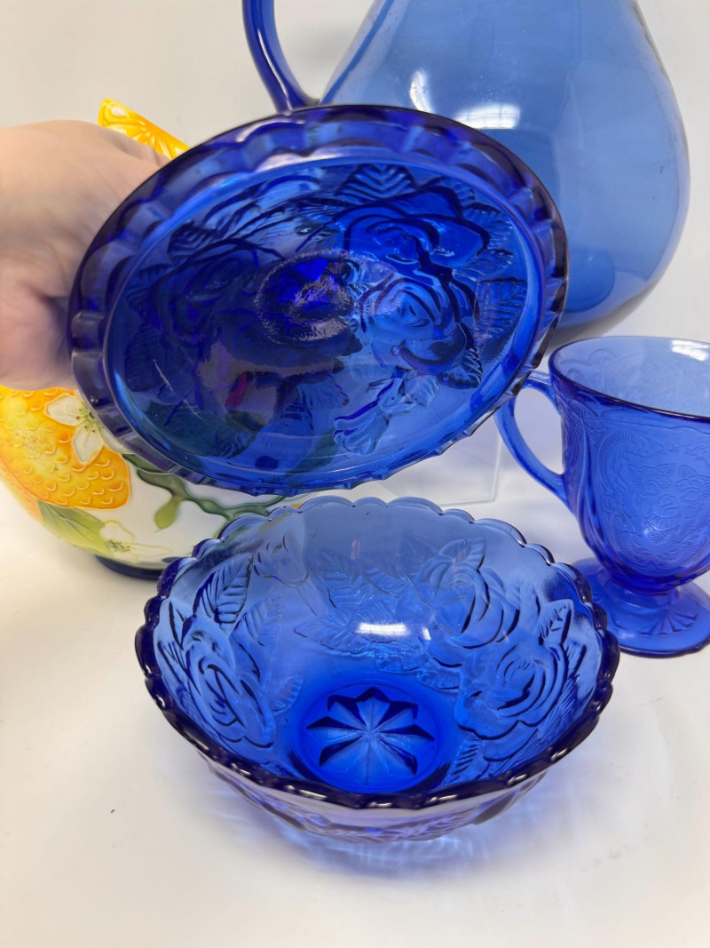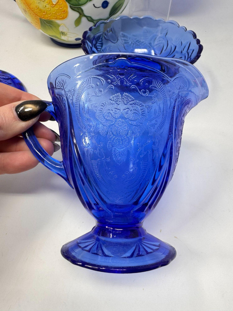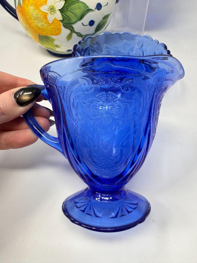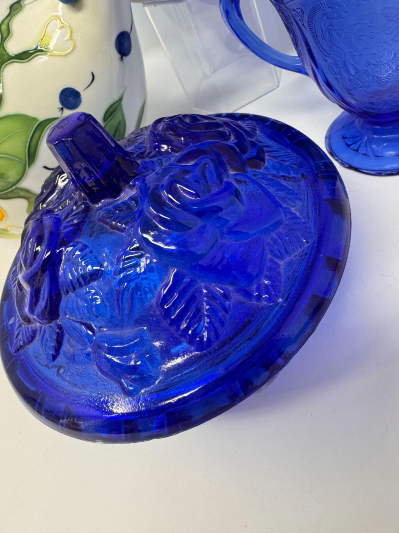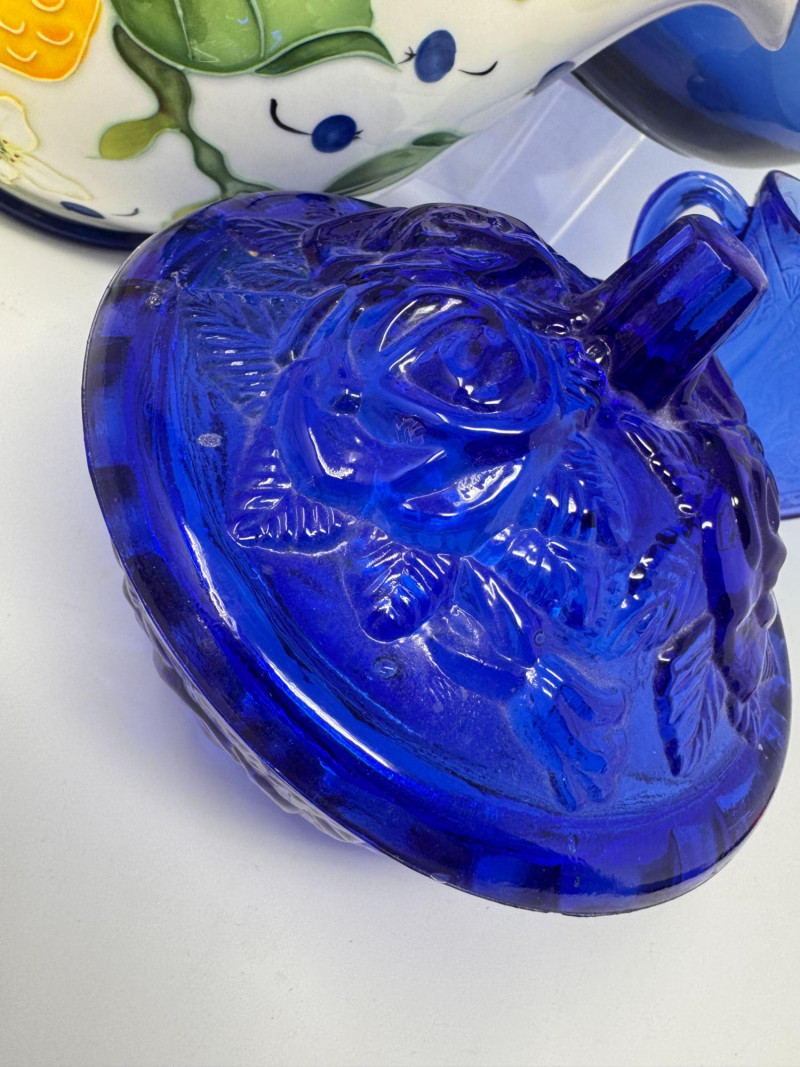Blue Sky Clayworks J McCall Lemon Teapot & Cobalt Blue Pitcher +