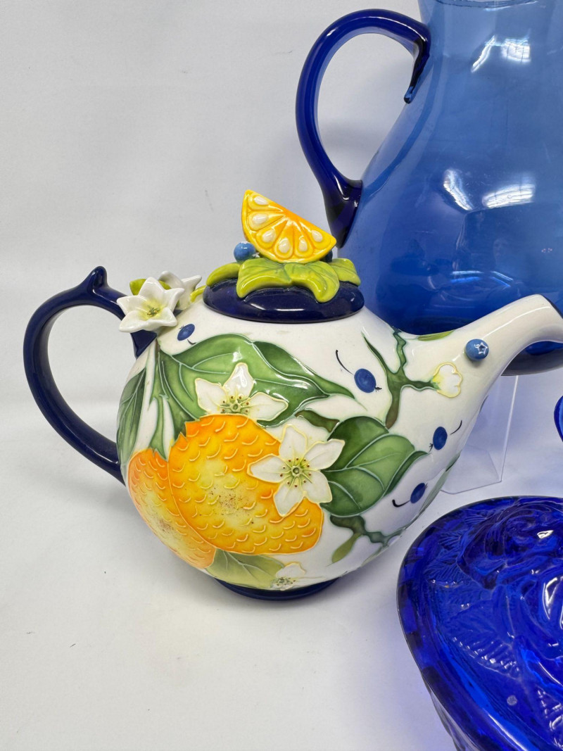 Lot # 54 - Blue Sky Clayworks J McCall Lemon Teapot & Cobalt Blue Pitcher +