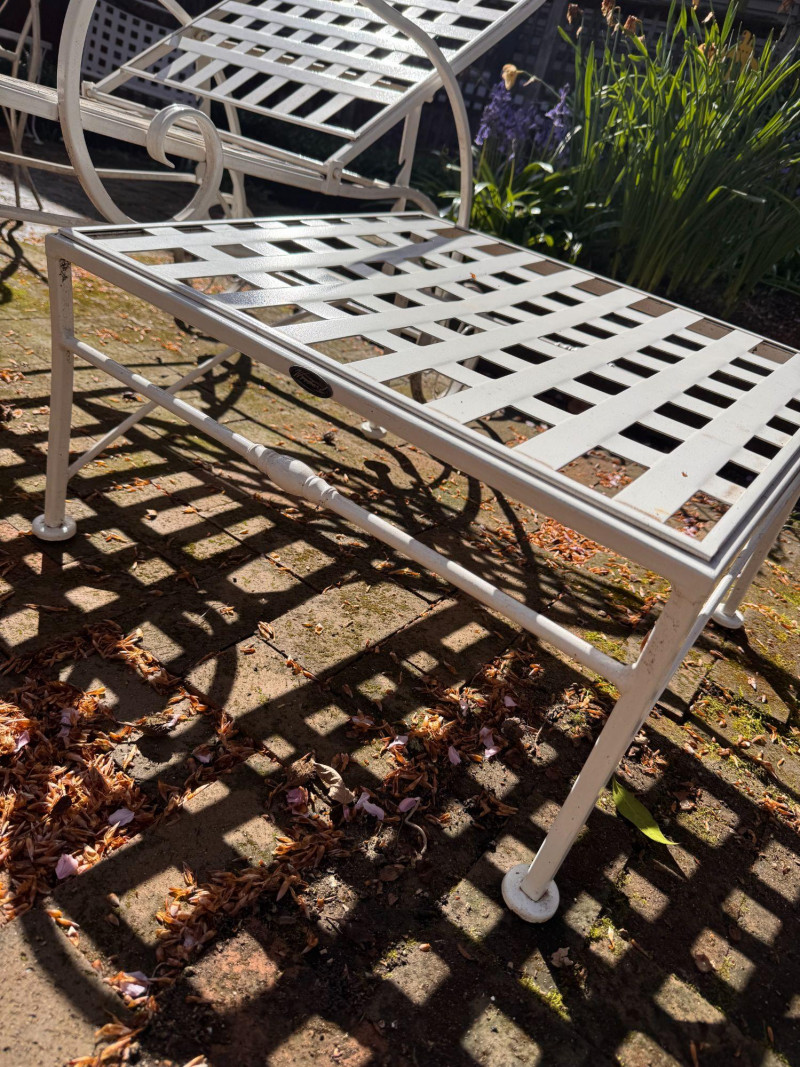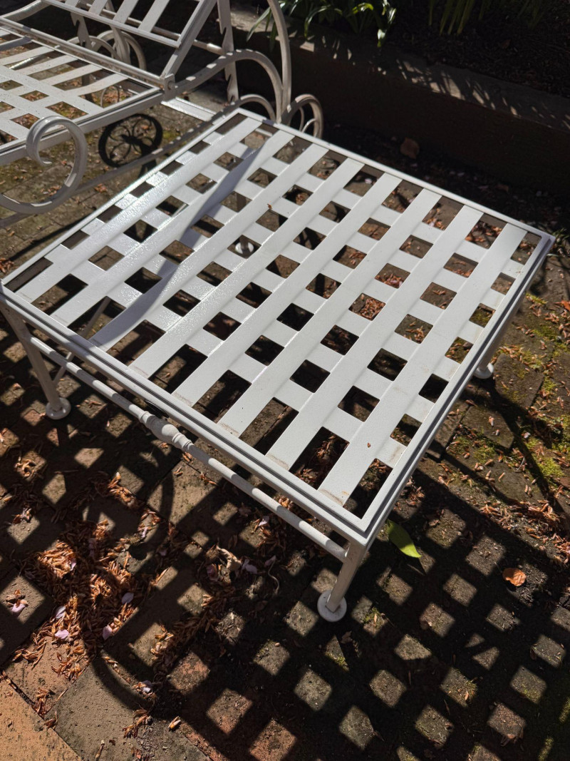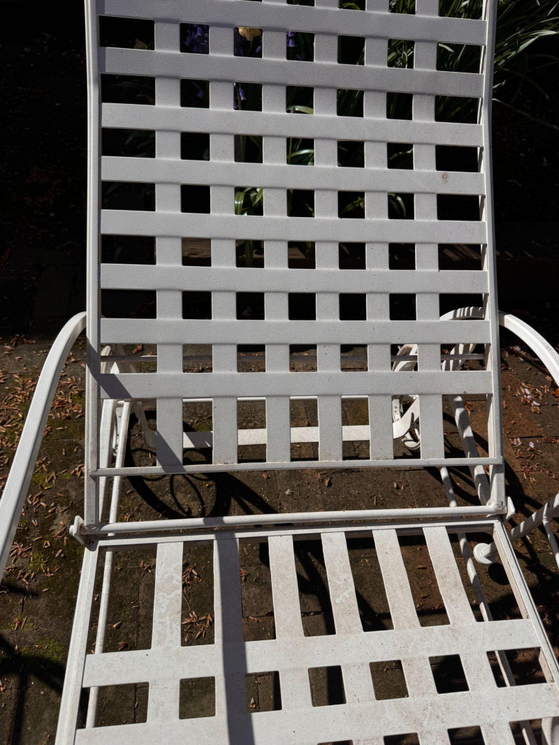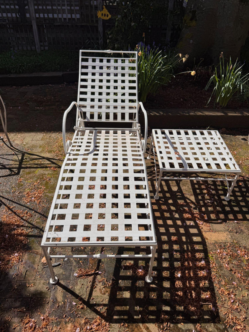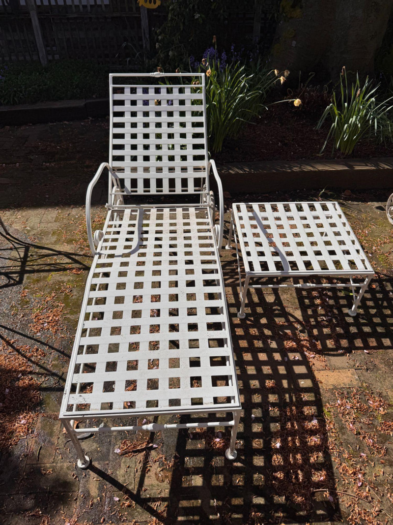 Woodard White Metal Chaise Lounge w/ Matching Side Table.