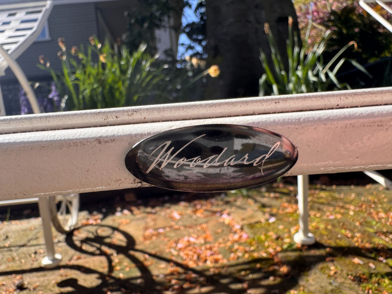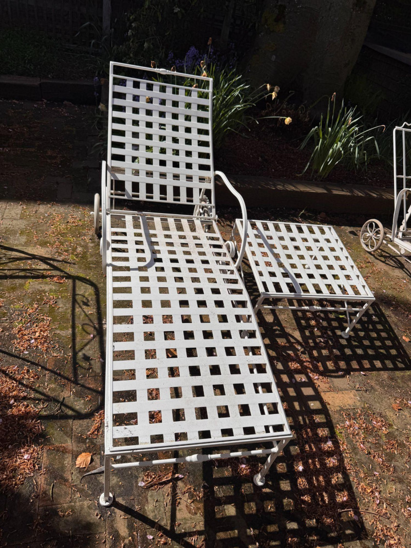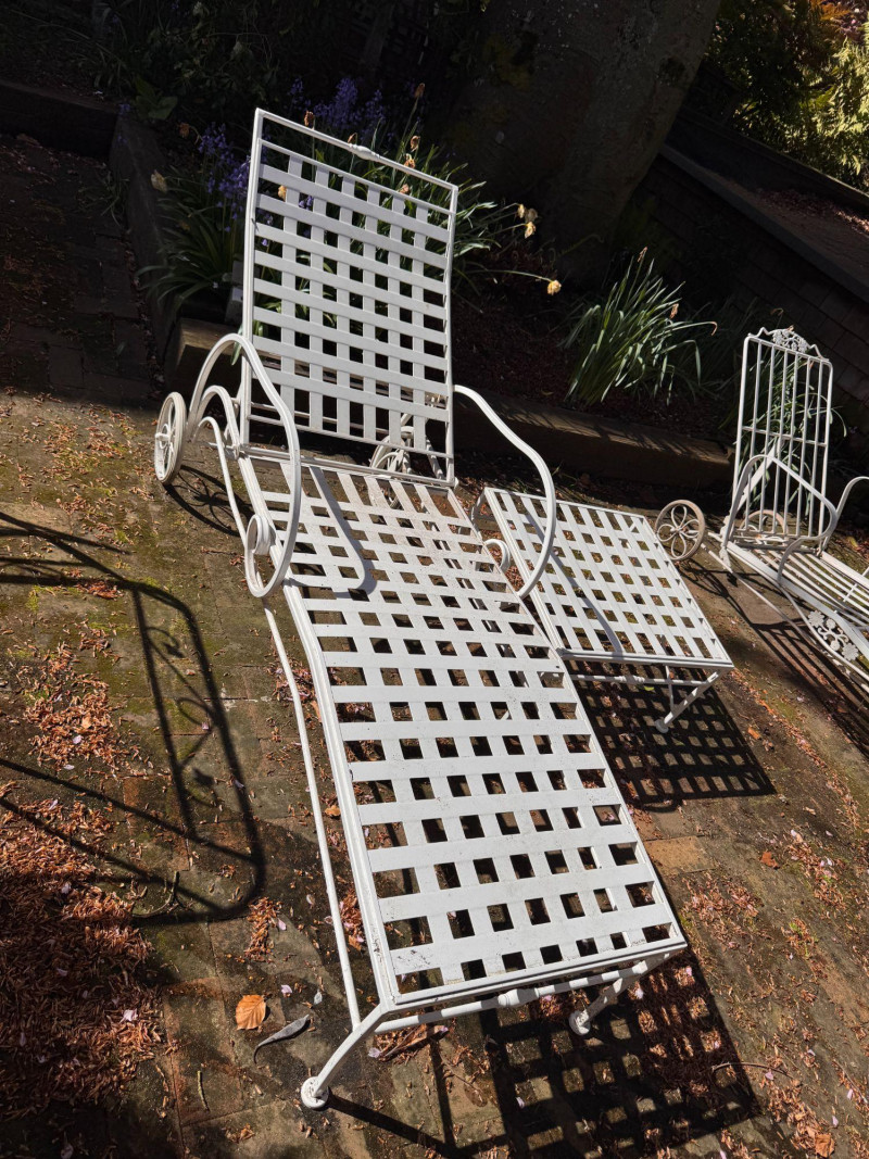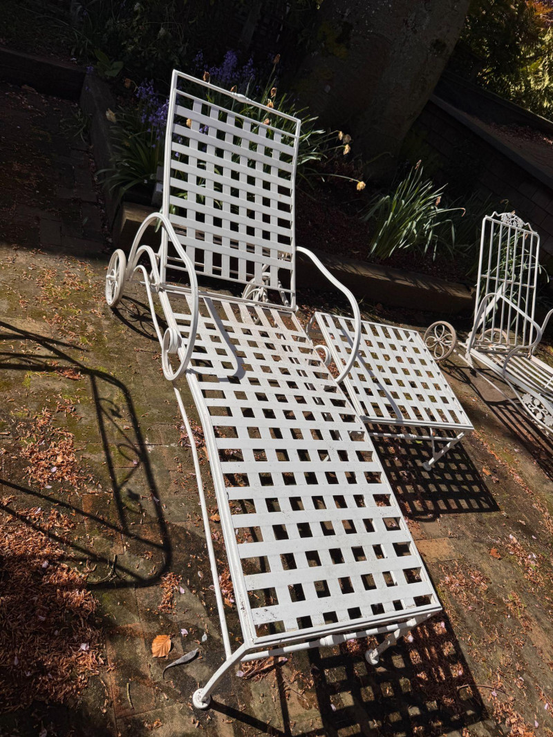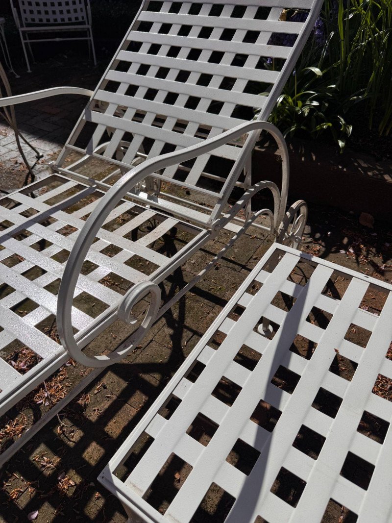 Woodard White Metal Chaise Lounge w/ Matching Side Table.