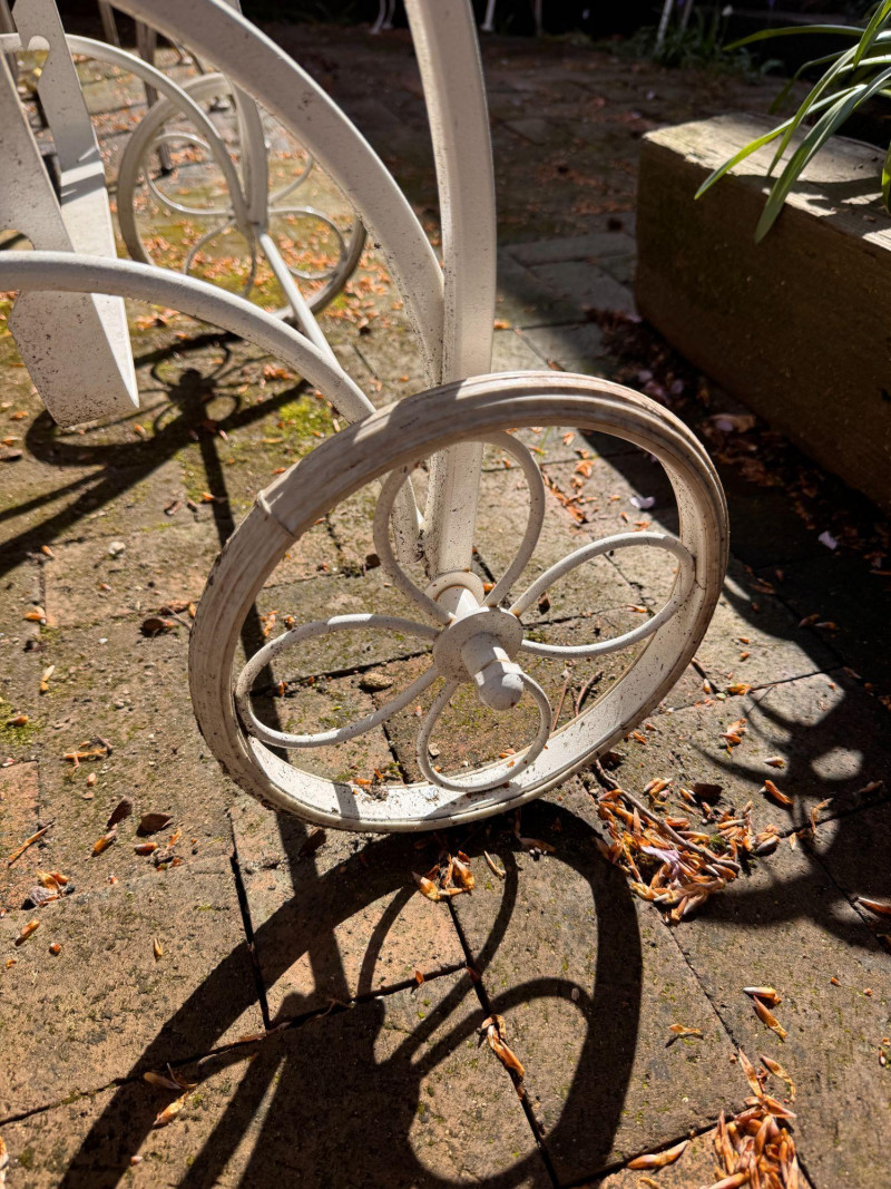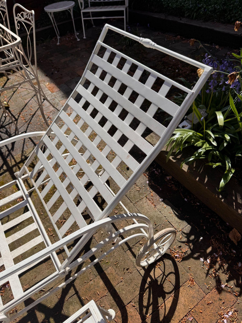 Lot # 57 - Woodard White Metal Chaise Lounge w/ Matching Side Table