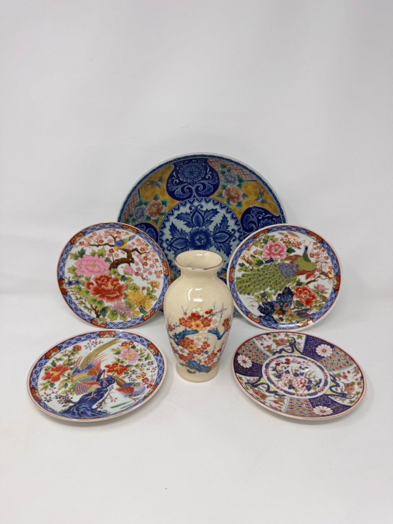 Andrea by Sadek Decorative Plate + Vintage Imari Style Plates & Vase.