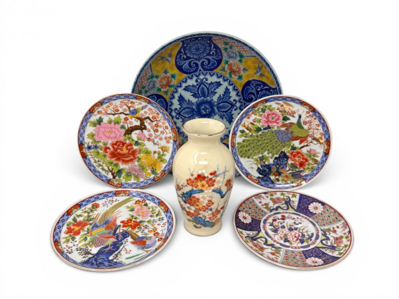 Lot # 59 - Andrea by Sadek Decorative Plate + Vintage Imari Style Plates & Vase