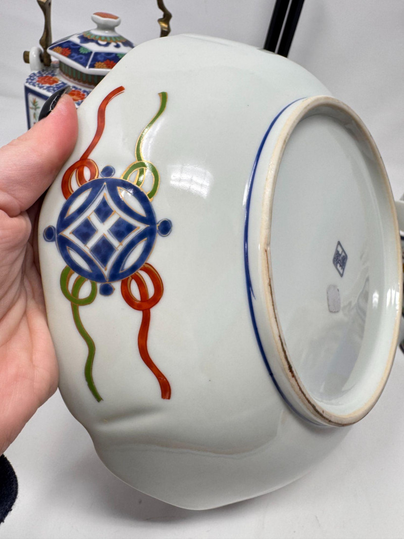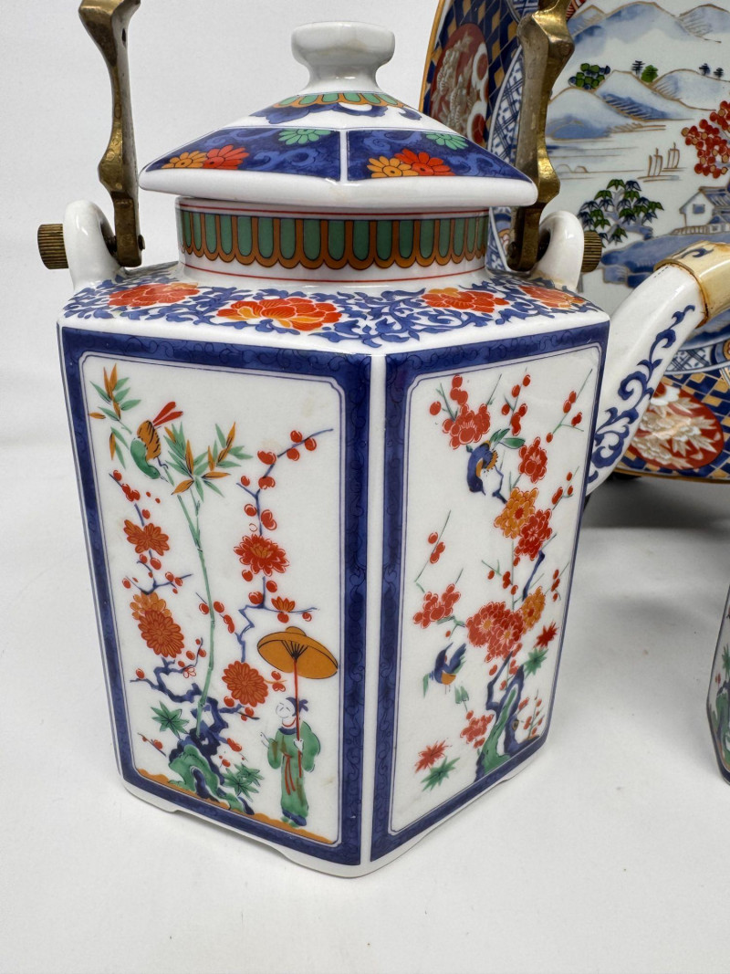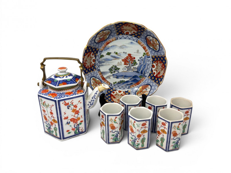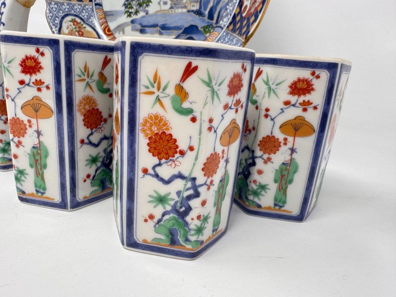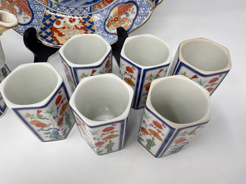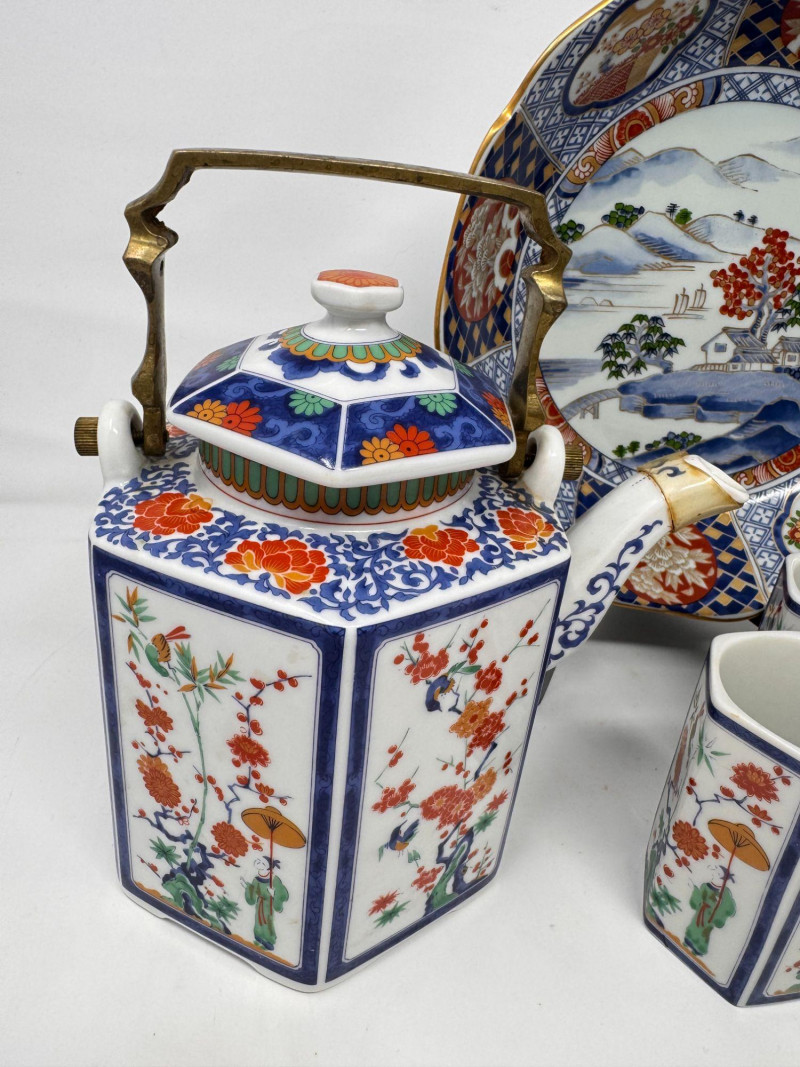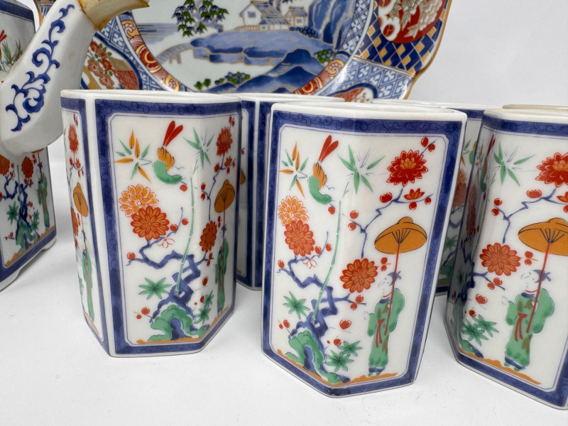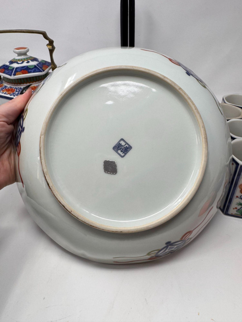 Lot # 64 - Vintage Japanese Imari Style Teapot & Cups Set + Hand Painted Bowl