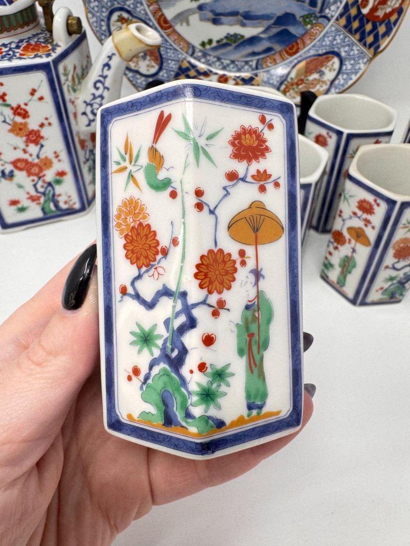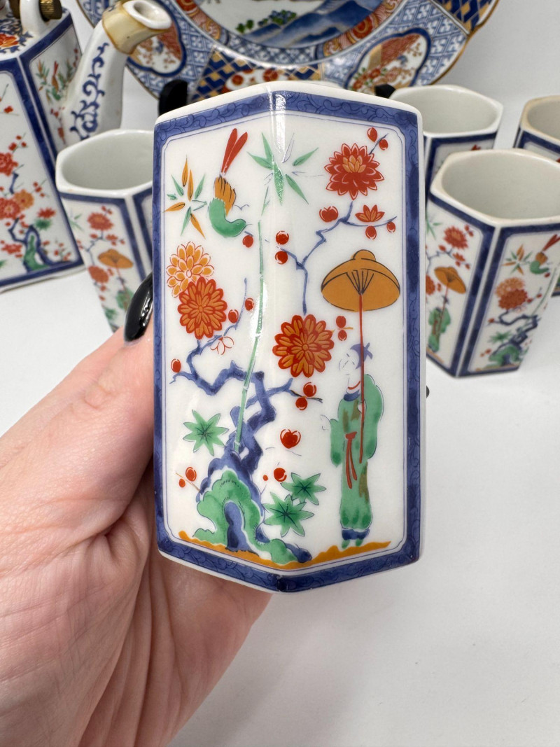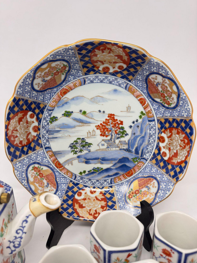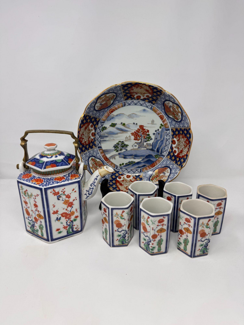 Vintage Japanese Imari Style Teapot & Cups Set + Hand Painted Bowl.