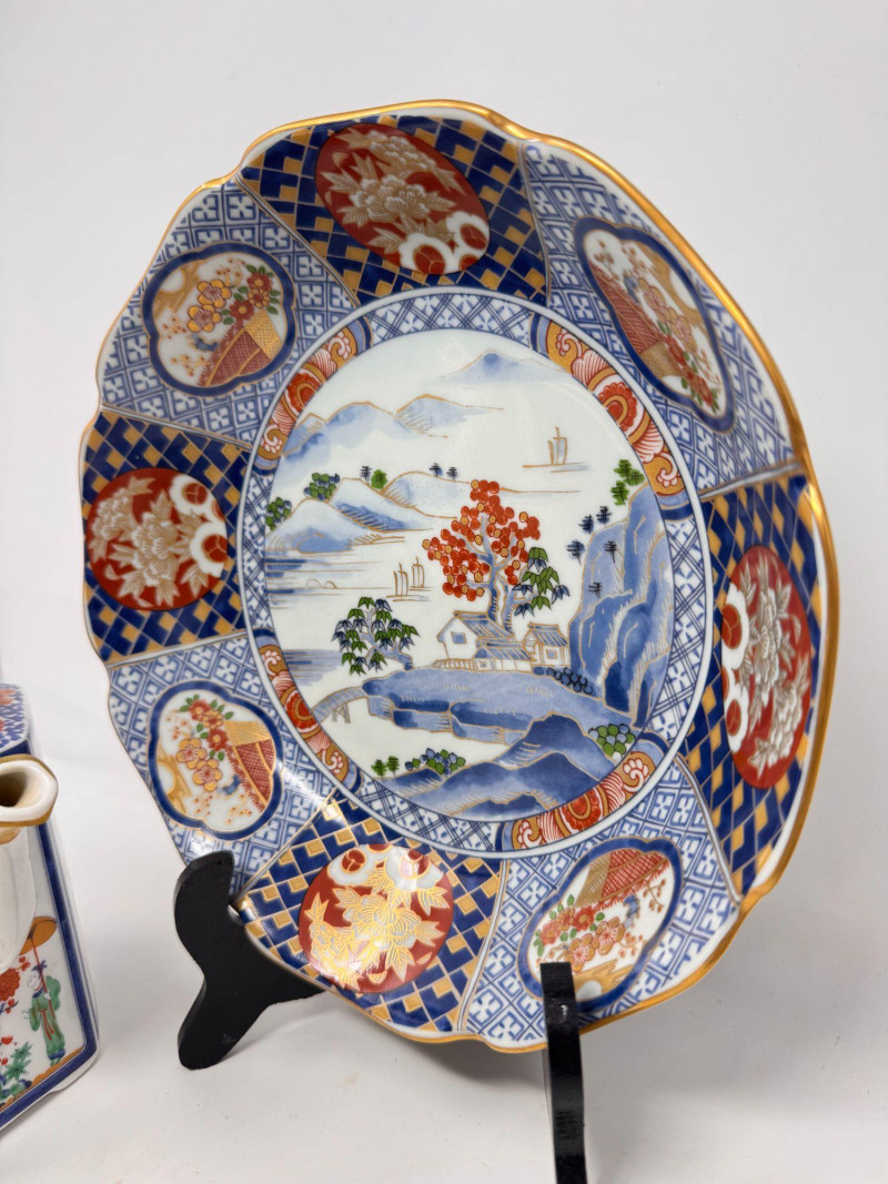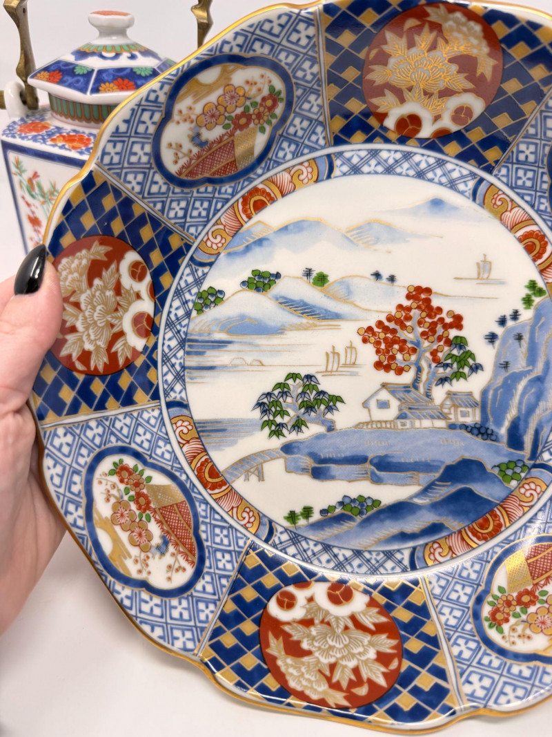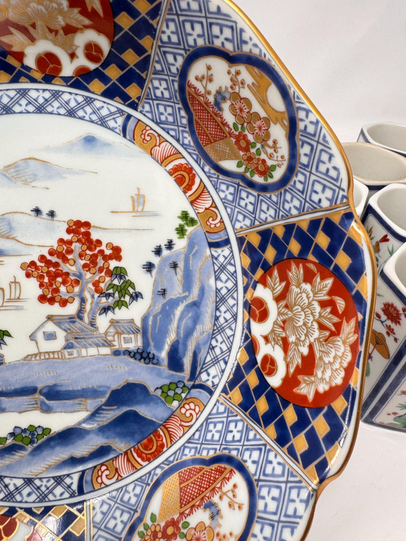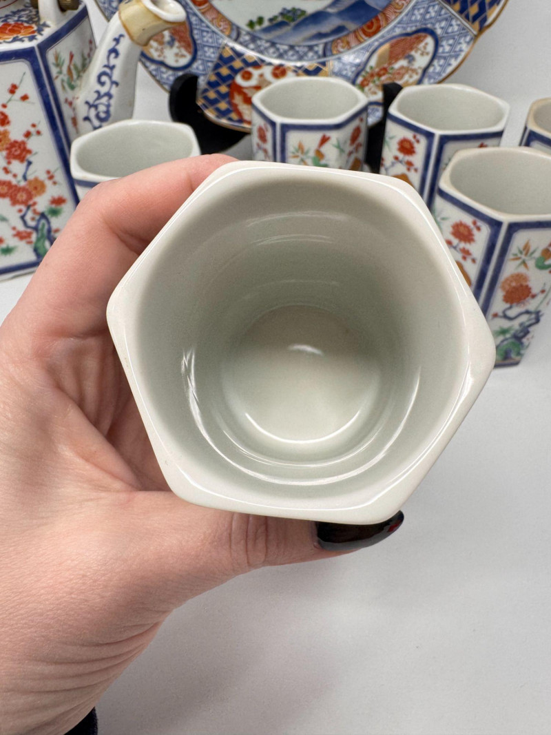 Vintage Japanese Imari Style Teapot & Cups Set + Hand Painted Bowl.