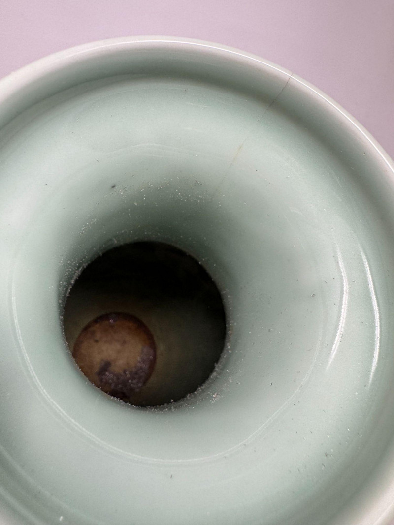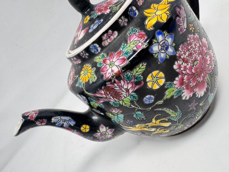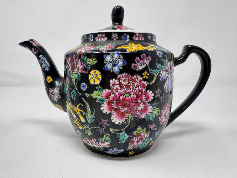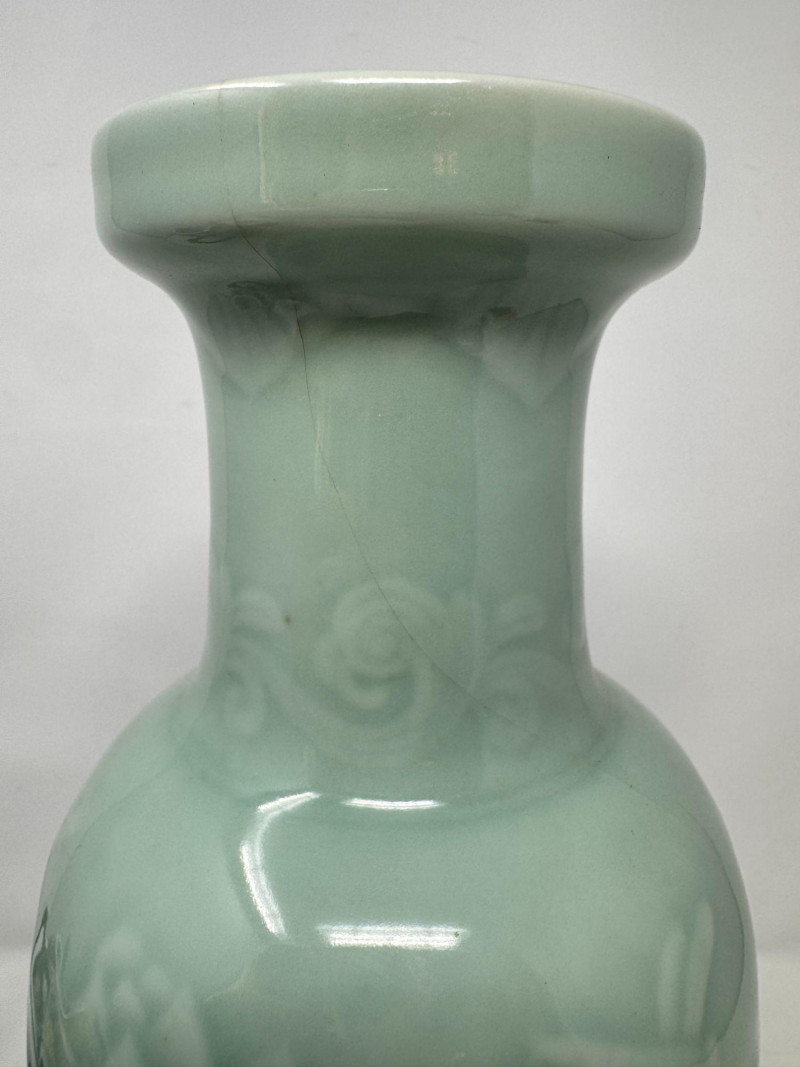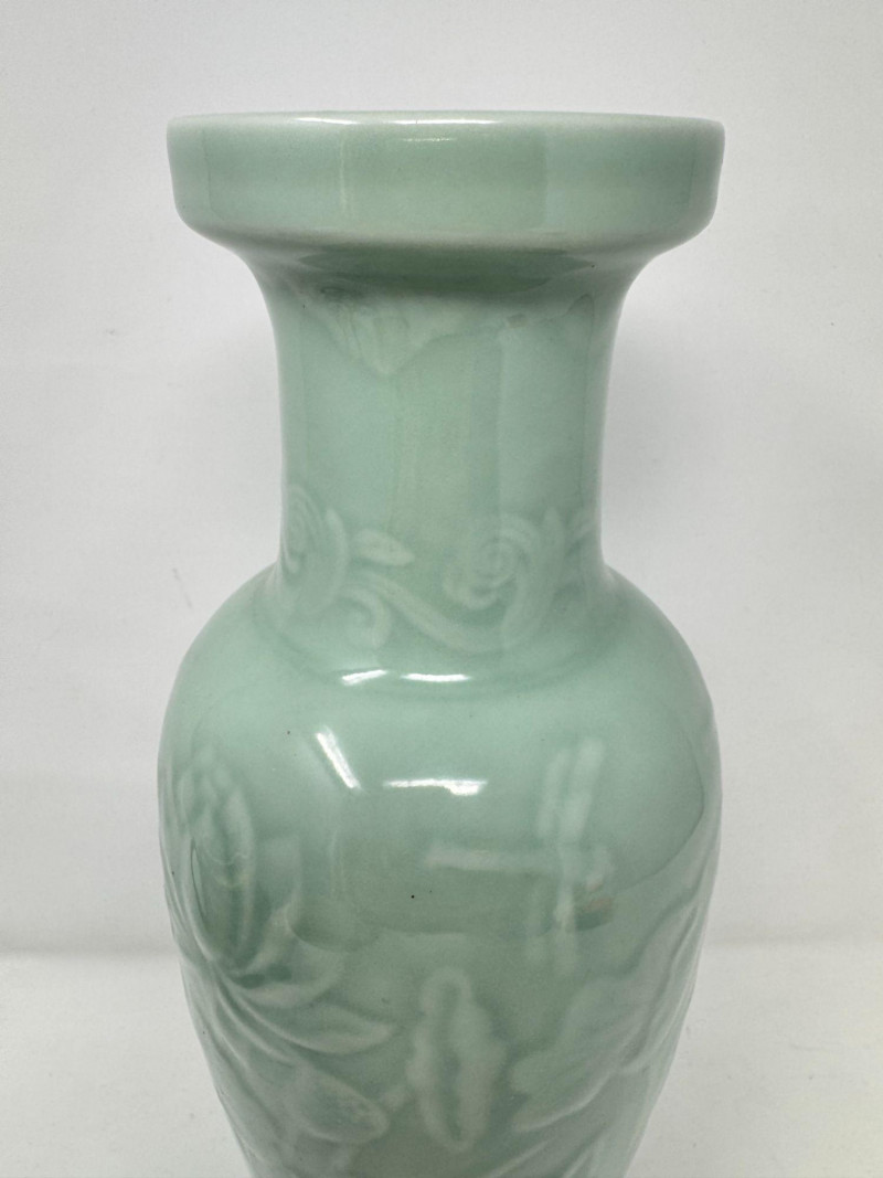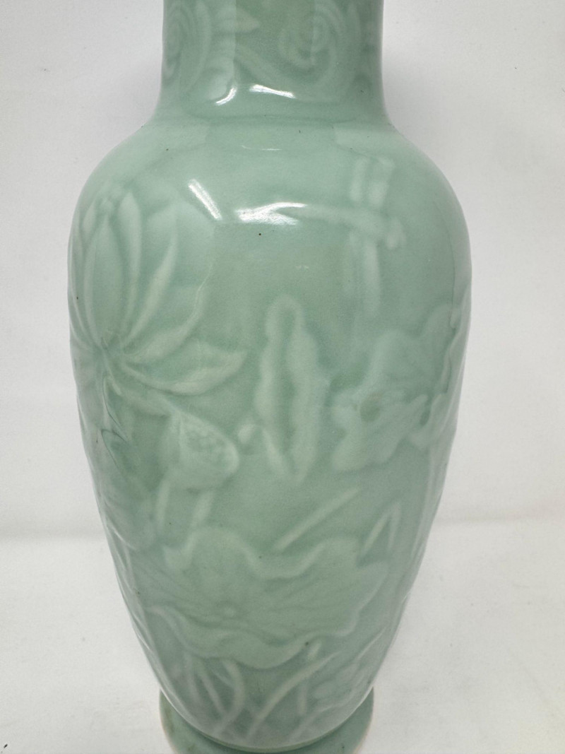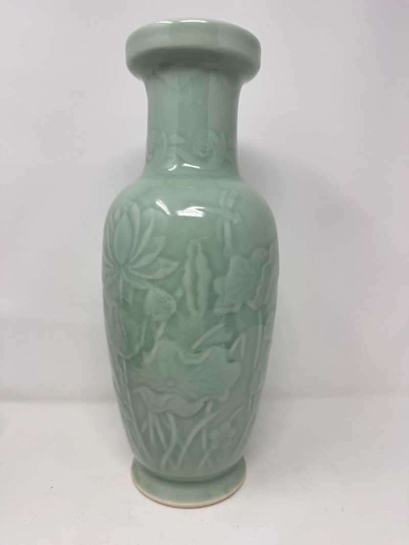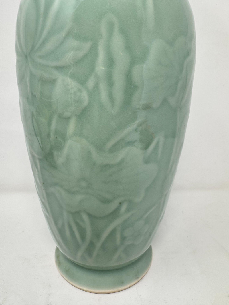 Lot # 78 - Large Asian Celadon Vase + Floral Porcelain Teapot & Cup