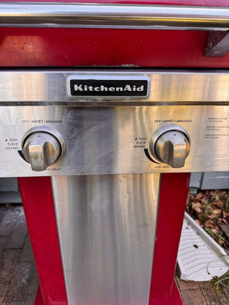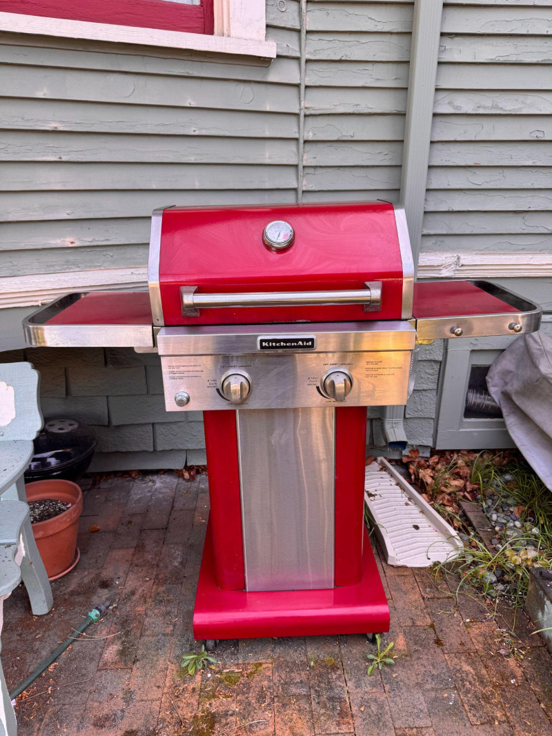 KitchenAid 2-Burner Propane Gas Grill Red w/ Side Shelves.Condition: