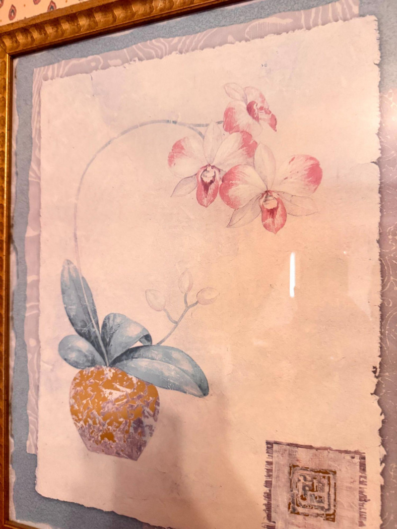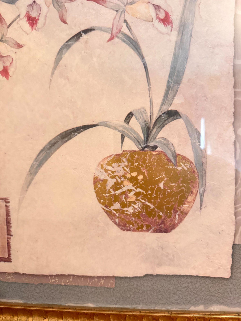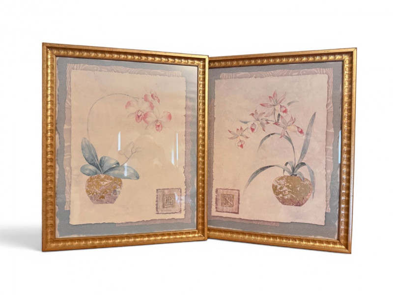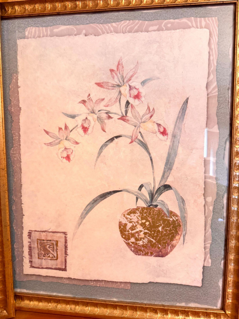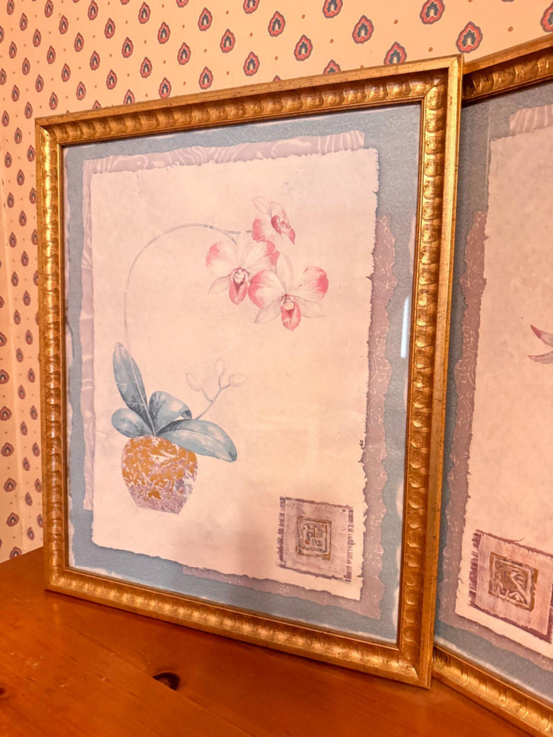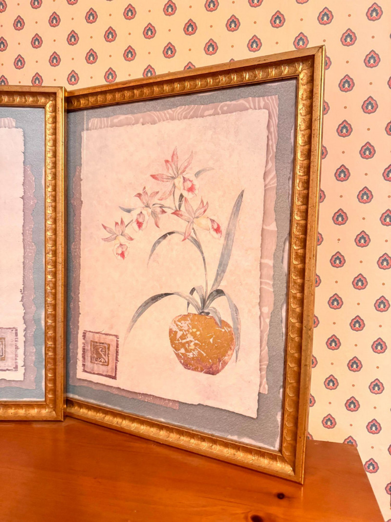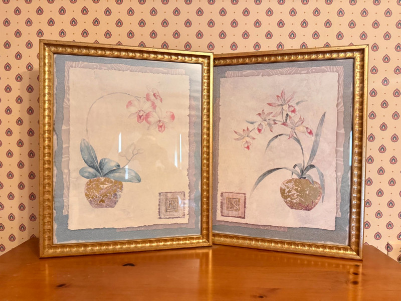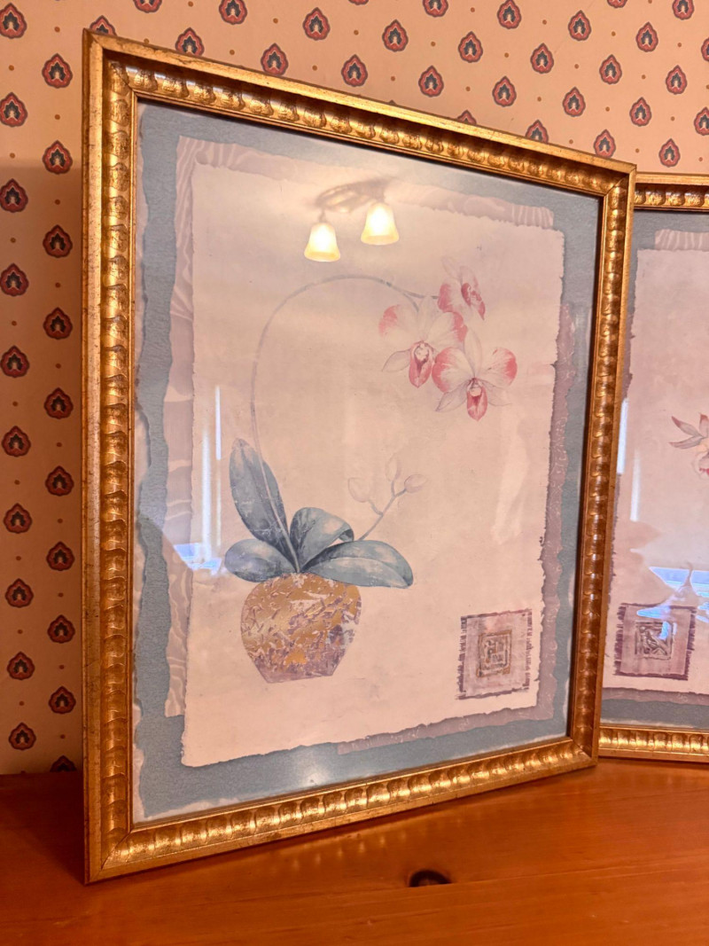 Pamela Gladding Style Orchid Prints in Gold Frames.