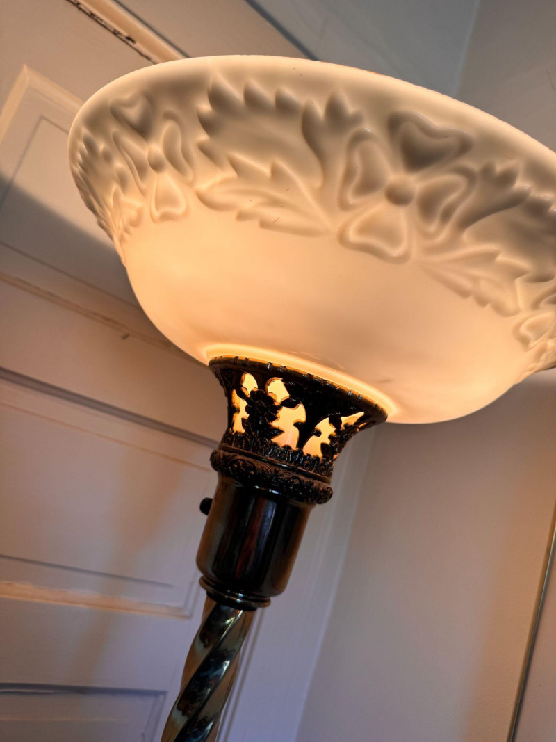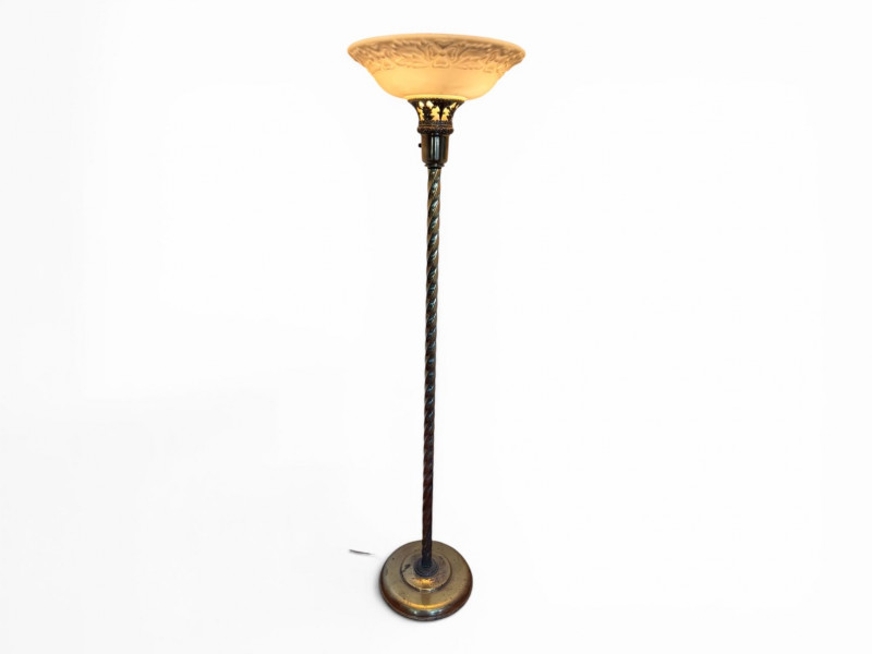 Lot # 89 - Vintage Torchiere Floor Lamp w/ Frosted Glass Shade & Twisted Column