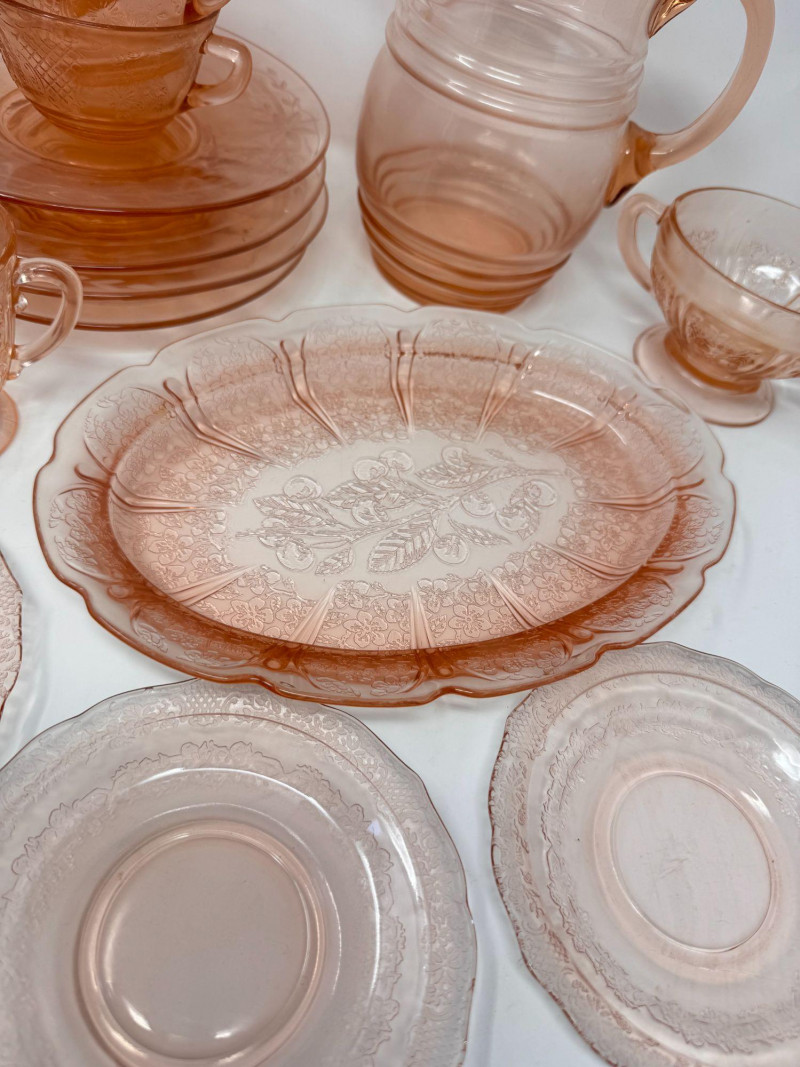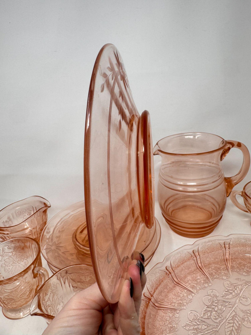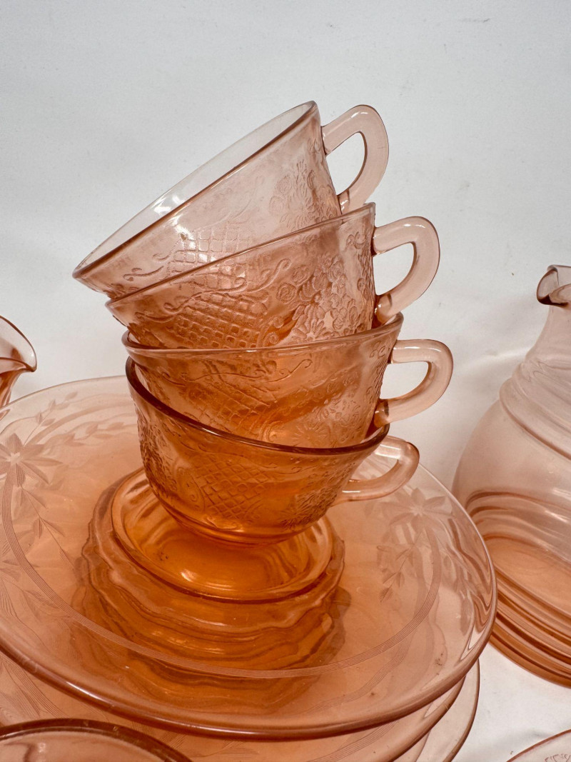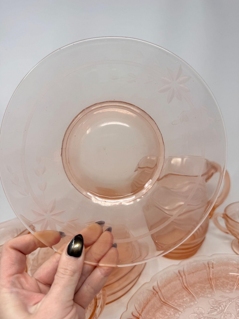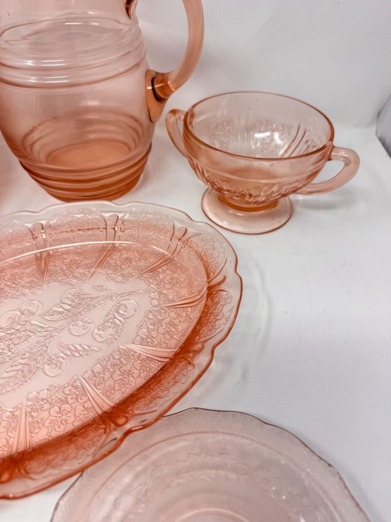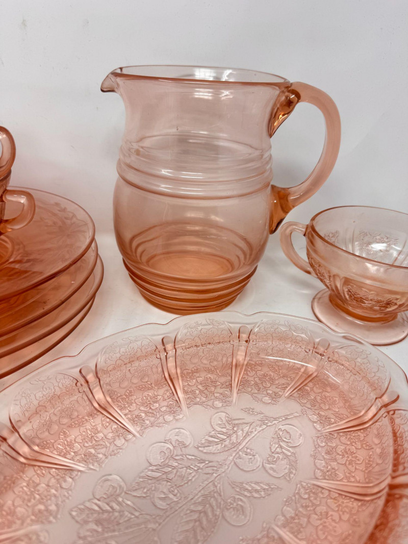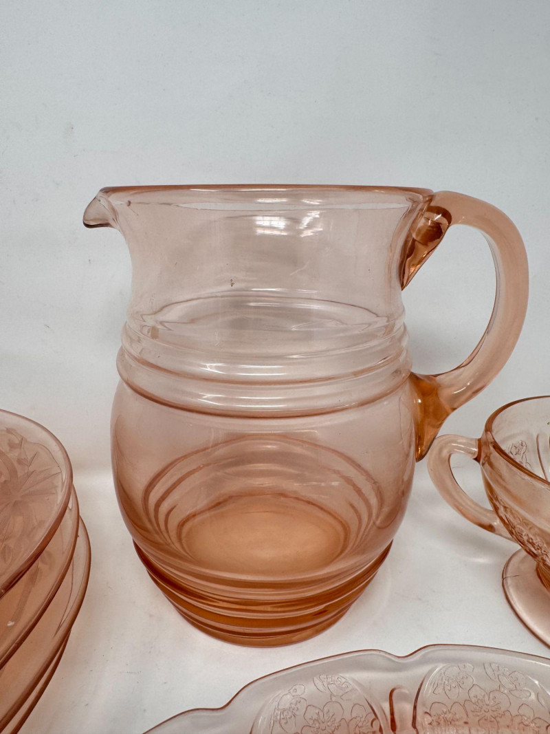 Pink Depression Tea Set - Federal Normandie Style w/ Pitcher & Plates. Includes: