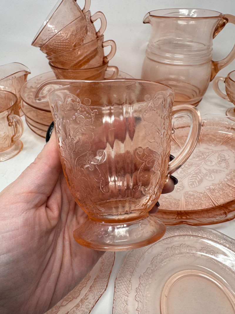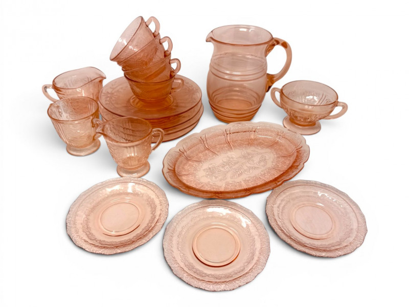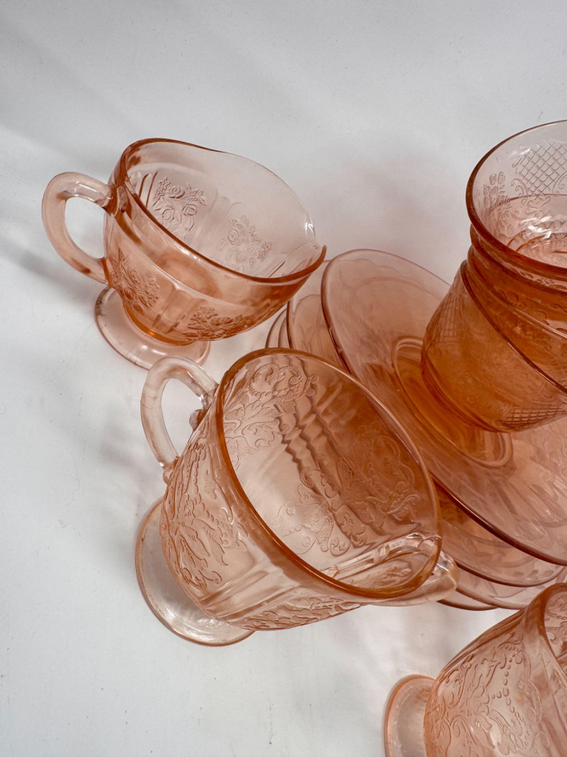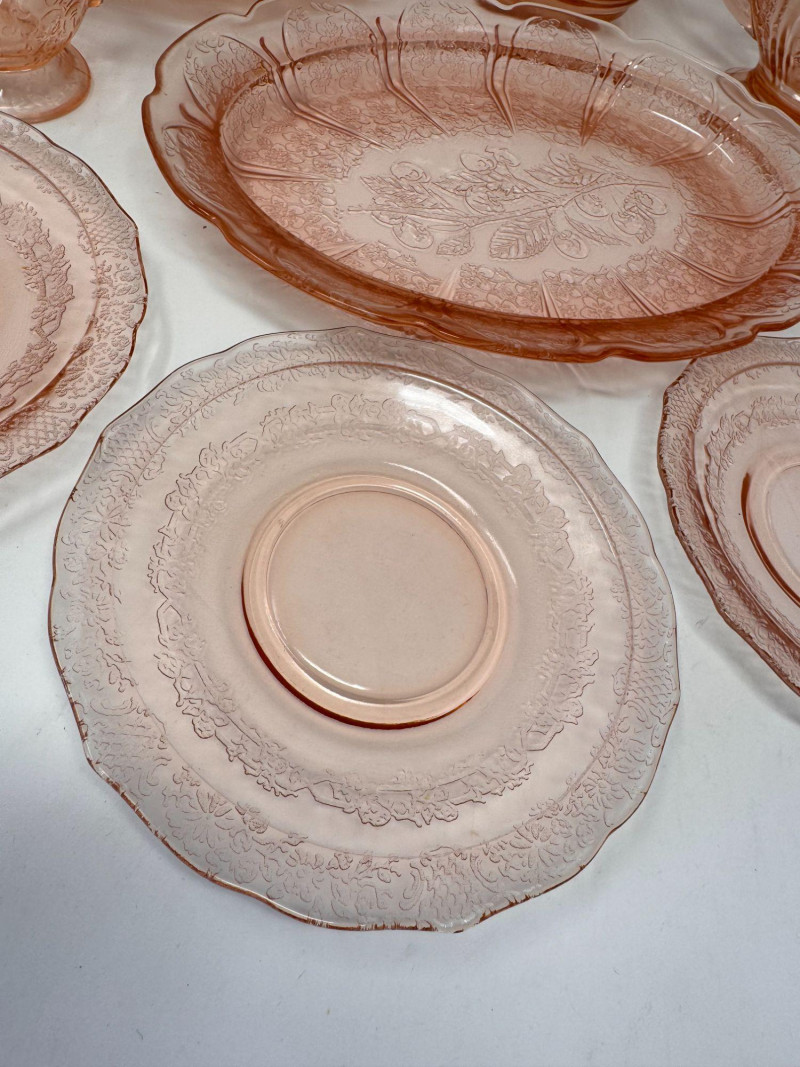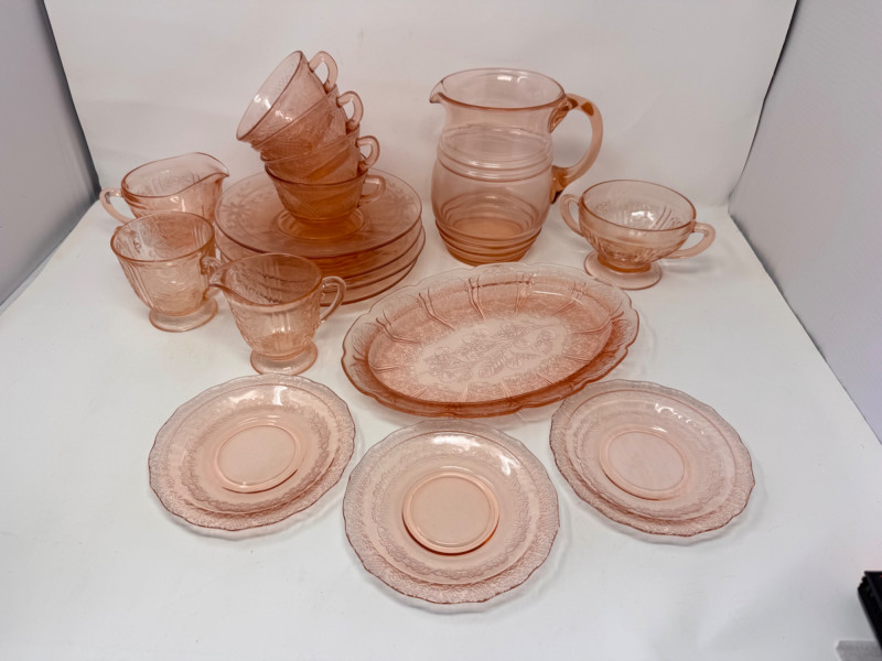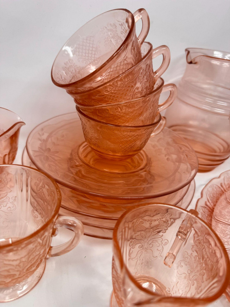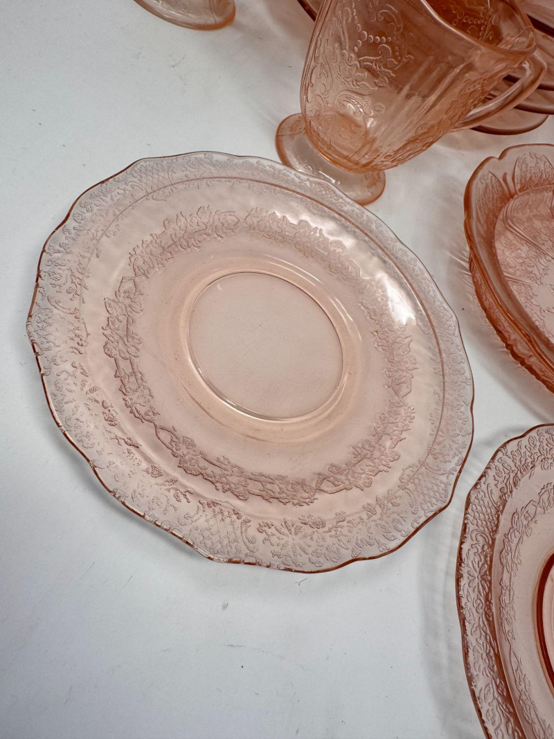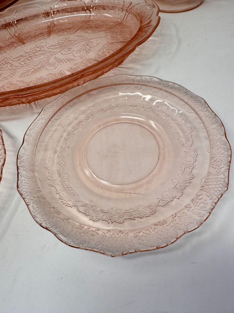 Pink Depression Tea Set - Federal Normandie Style w/ Pitcher & Plates. Includes: