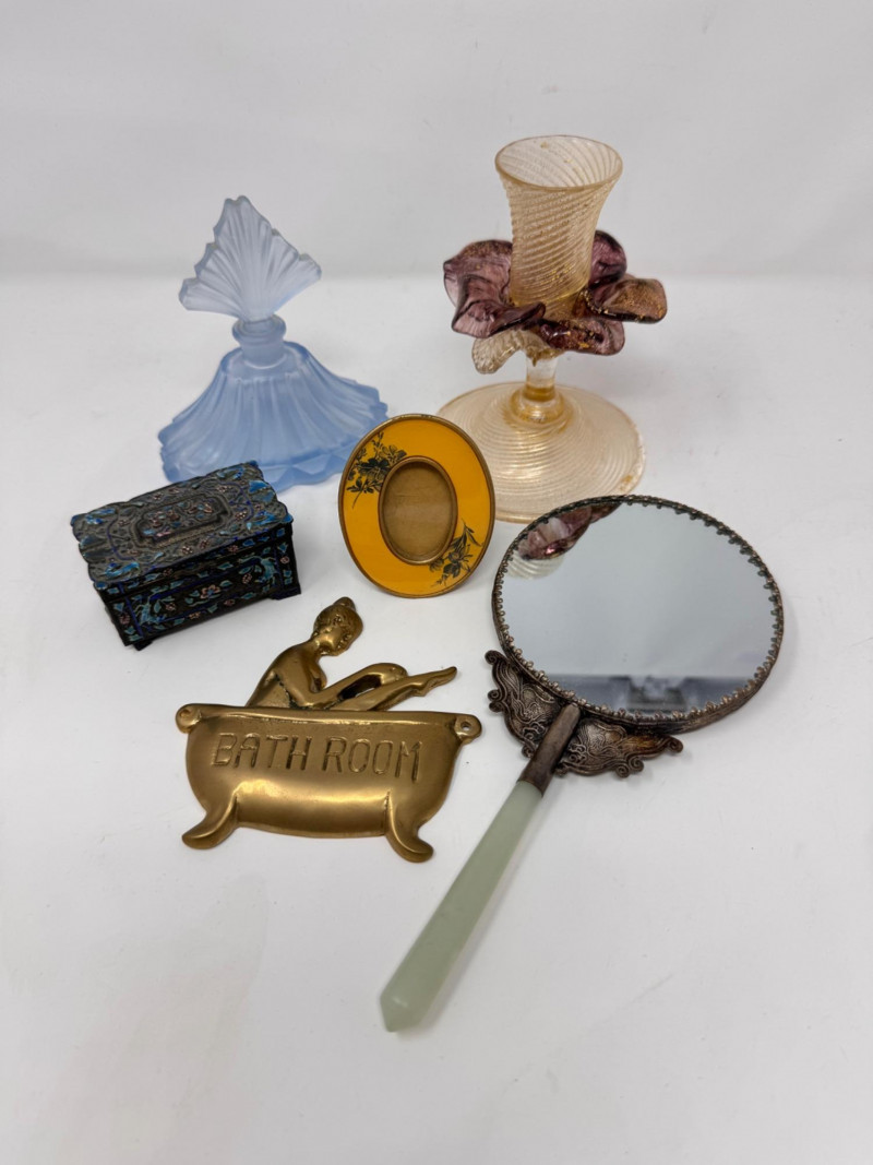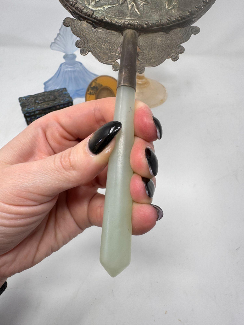 Assorted Vintage Vanity & Trinket Collection - Murano, Jade, & More. Condition notes: