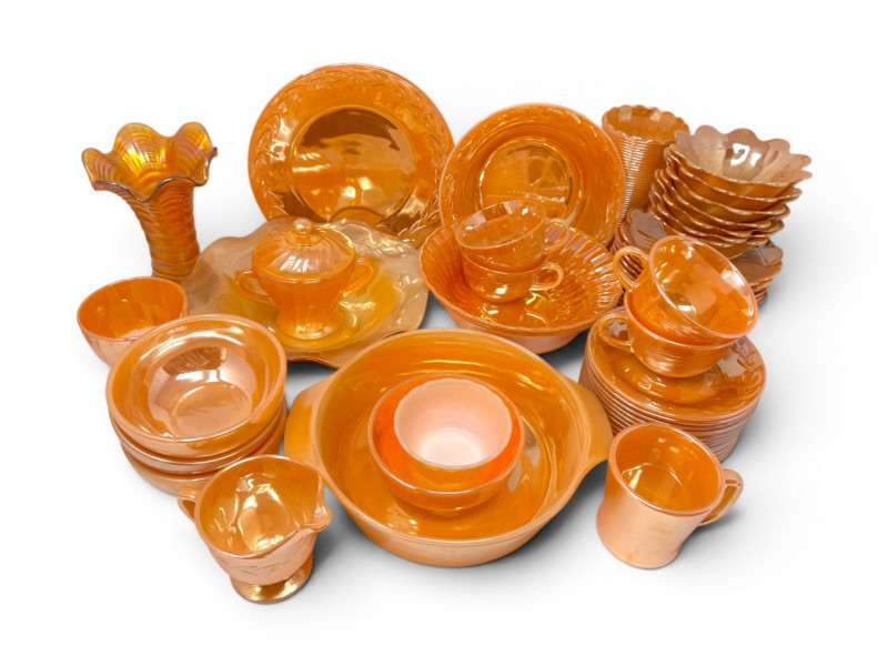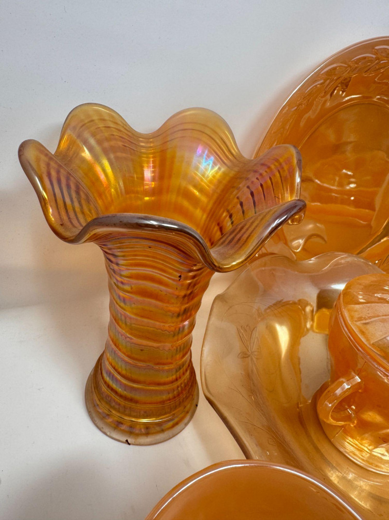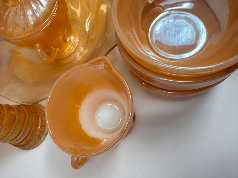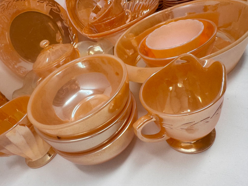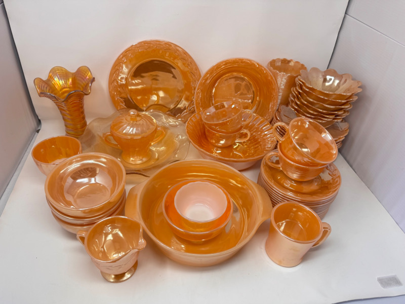 Lot # 102 - Vintage Anchor Hocking Fire King - Peach Lustre Glass Dish Set & Vase