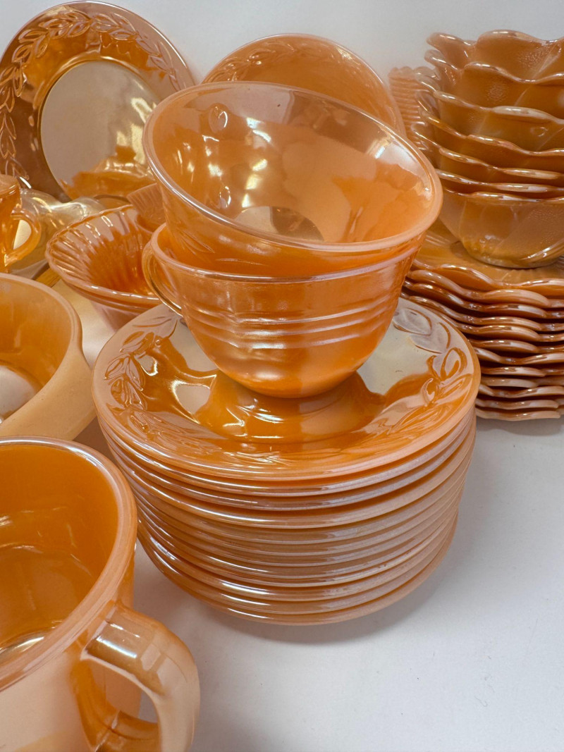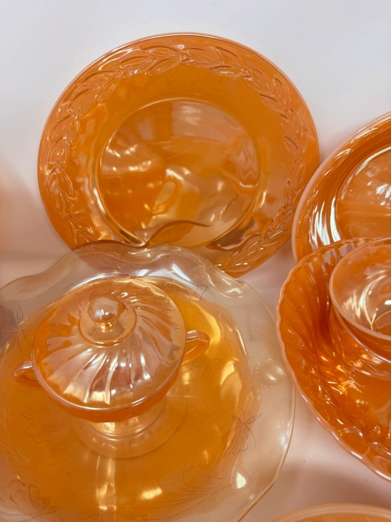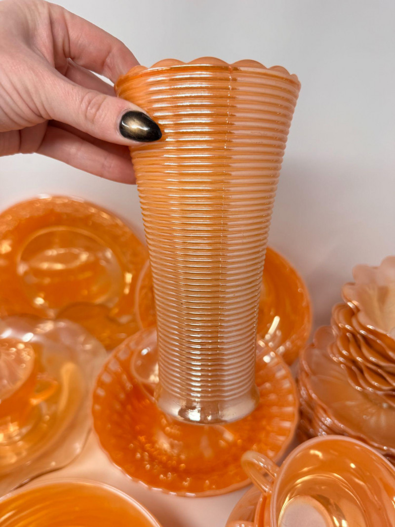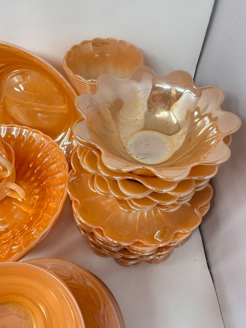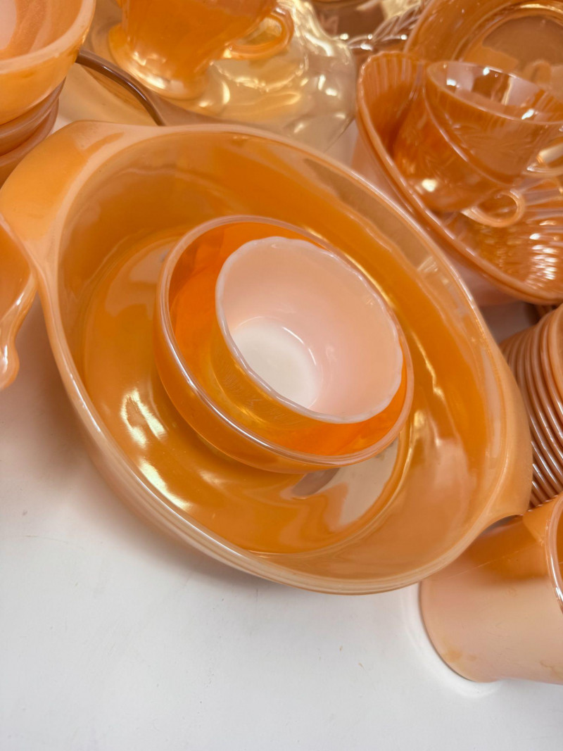 Vintage Anchor Hocking Fire King - Peach Lustre Glass Dish Set & Vase.