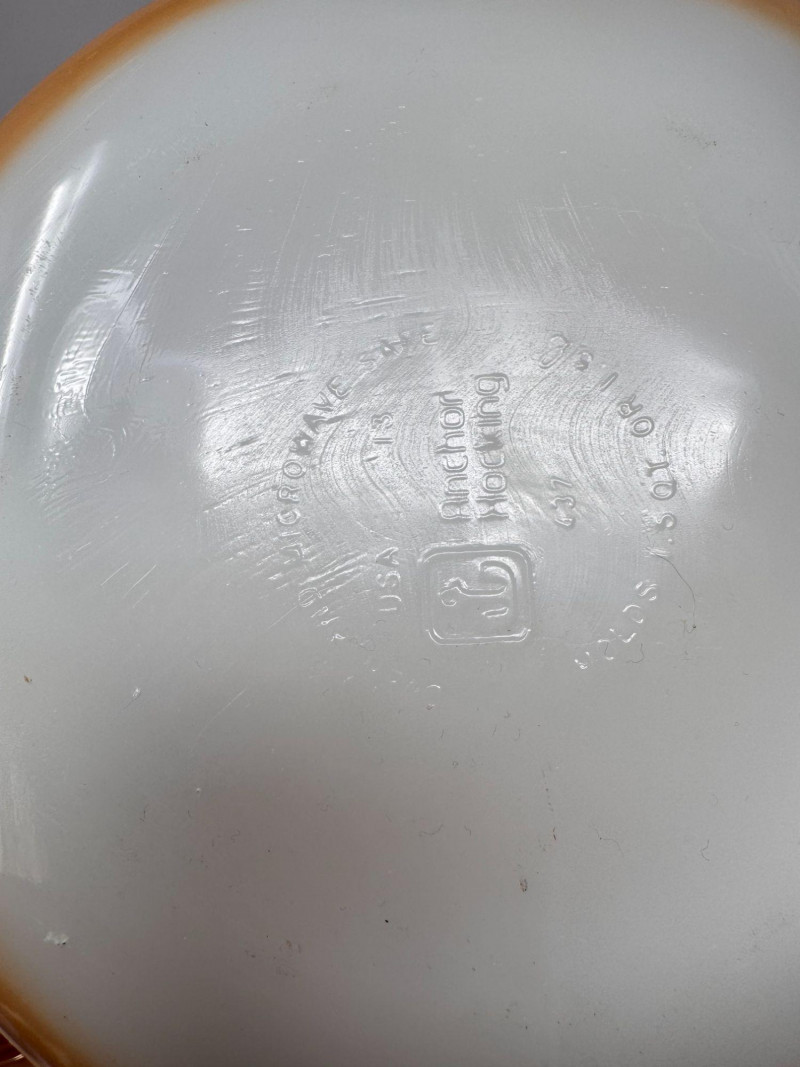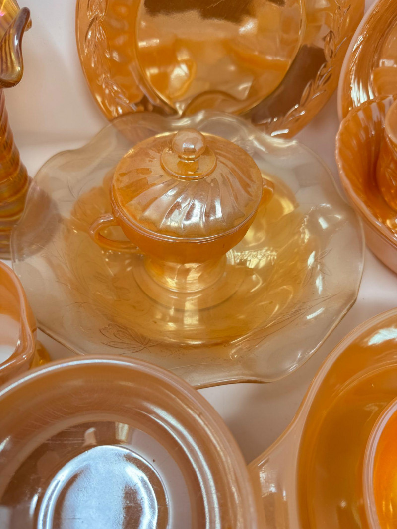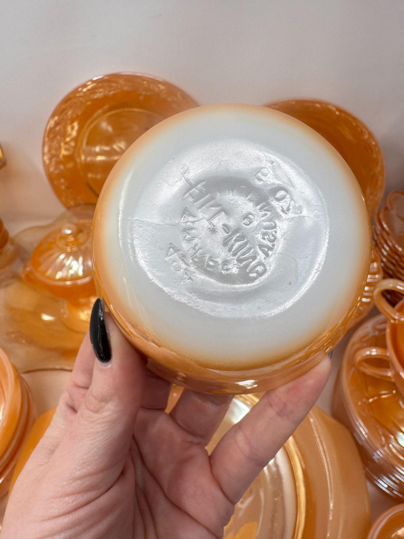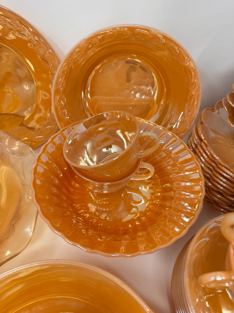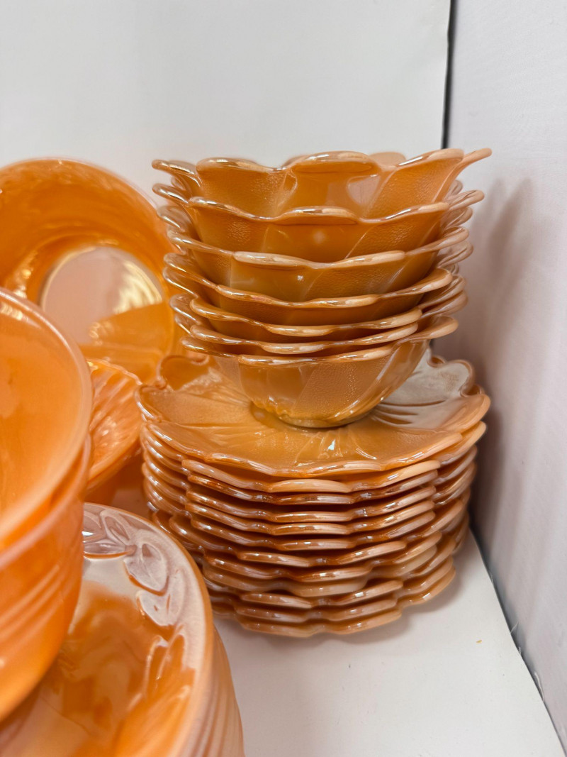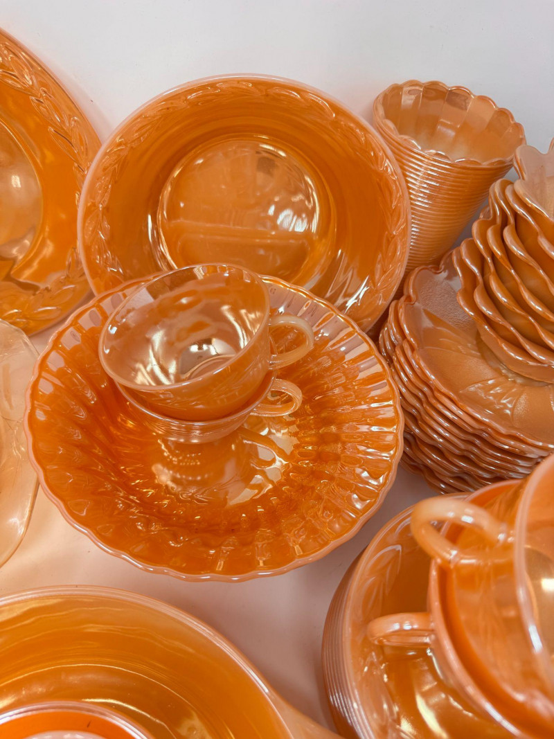 Vintage Anchor Hocking Fire King - Peach Lustre Glass Dish Set & Vase.