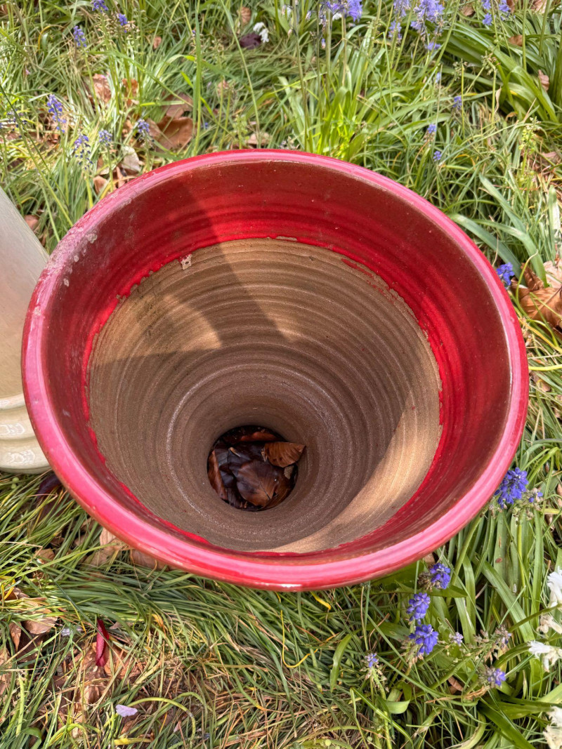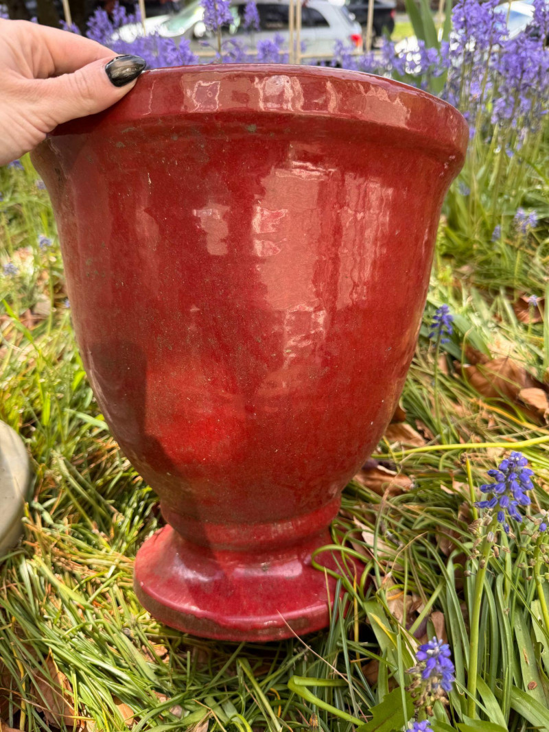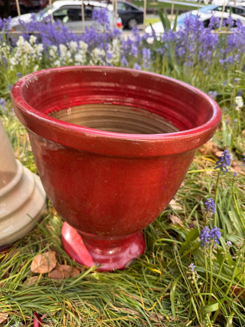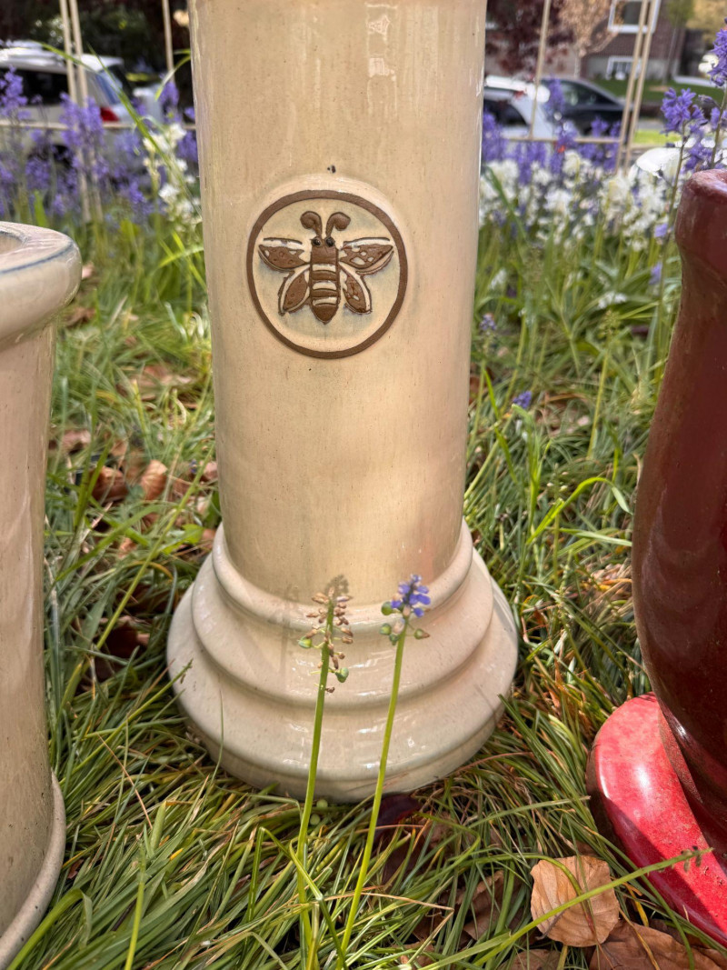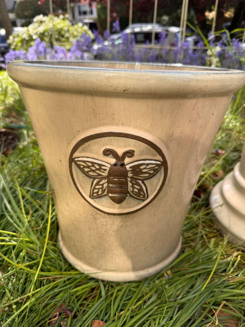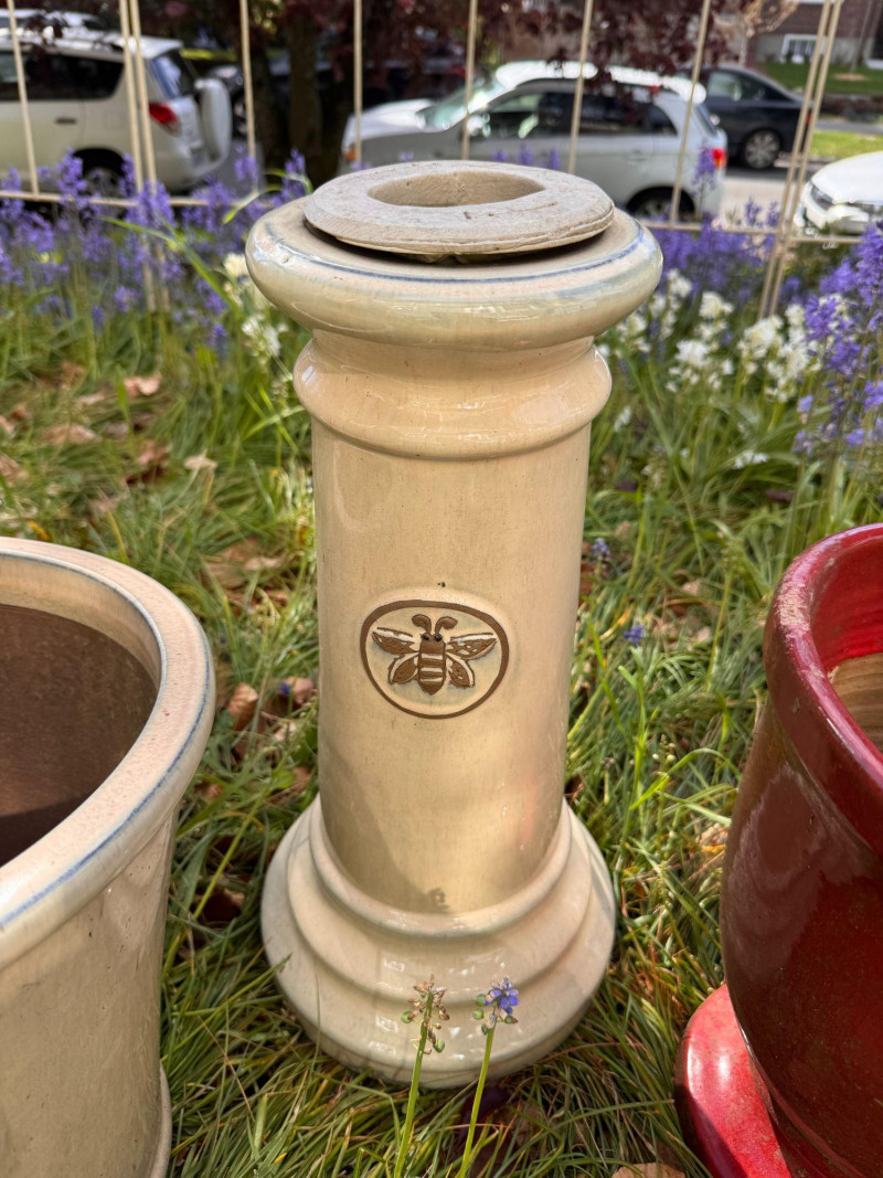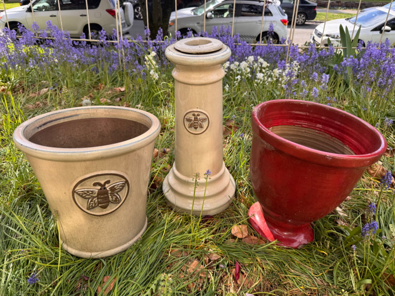 3 Garden Planters & Bird Bath Base - Ceramic Pots w/ Bee Motif.