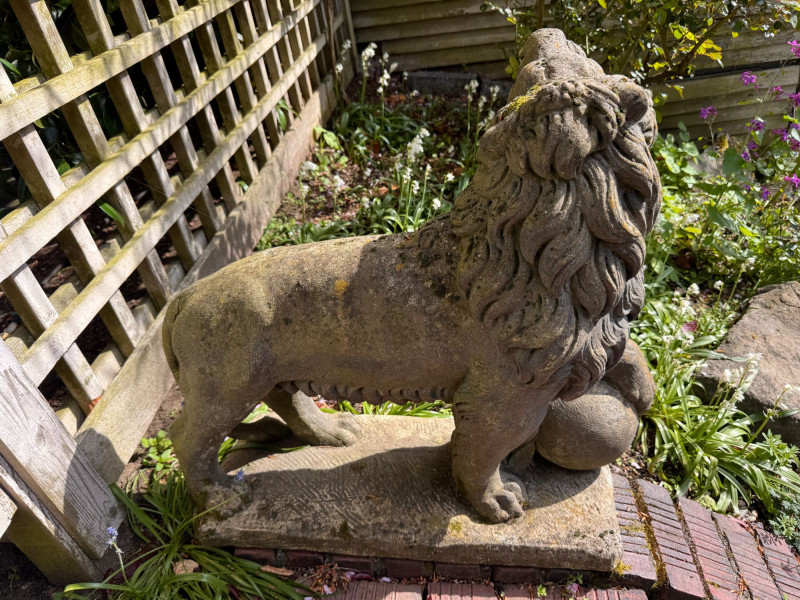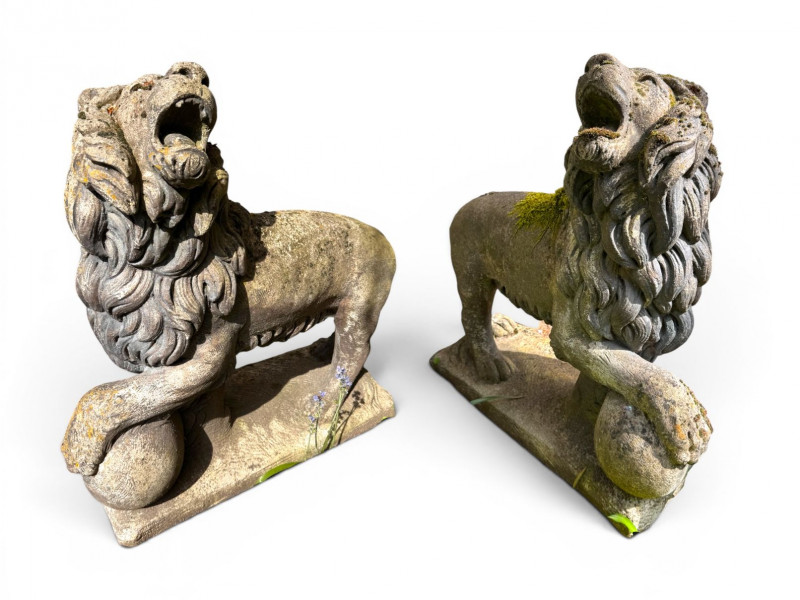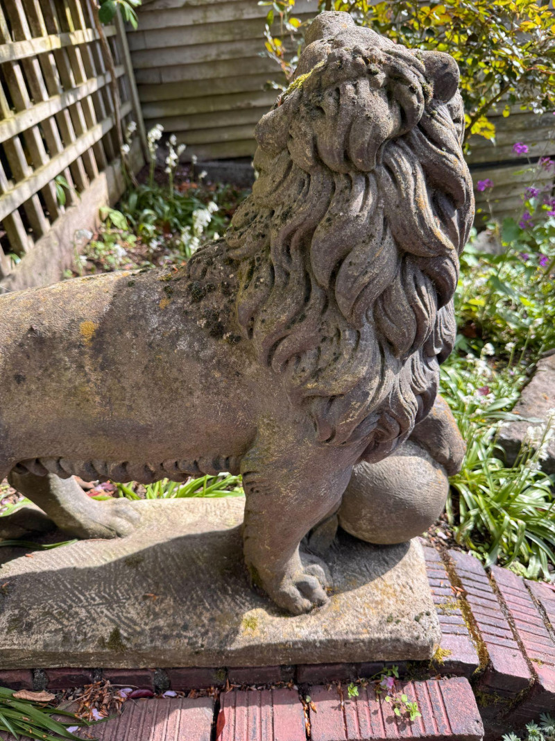 Lot # 116 - Pair of Large & Heavy Cement Lion Garden Statues