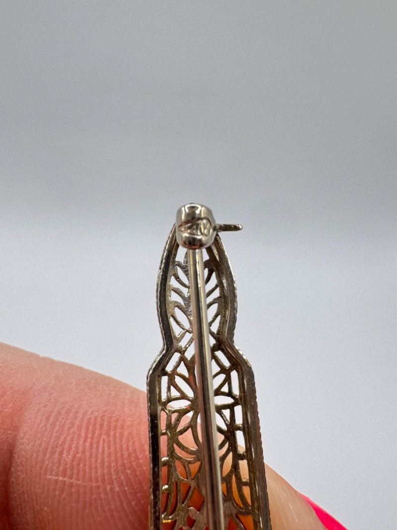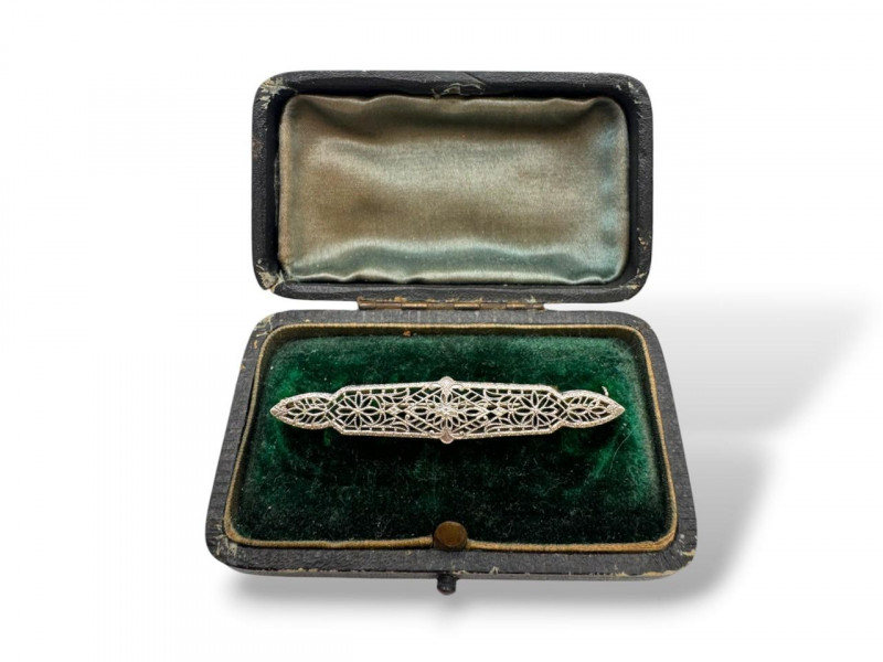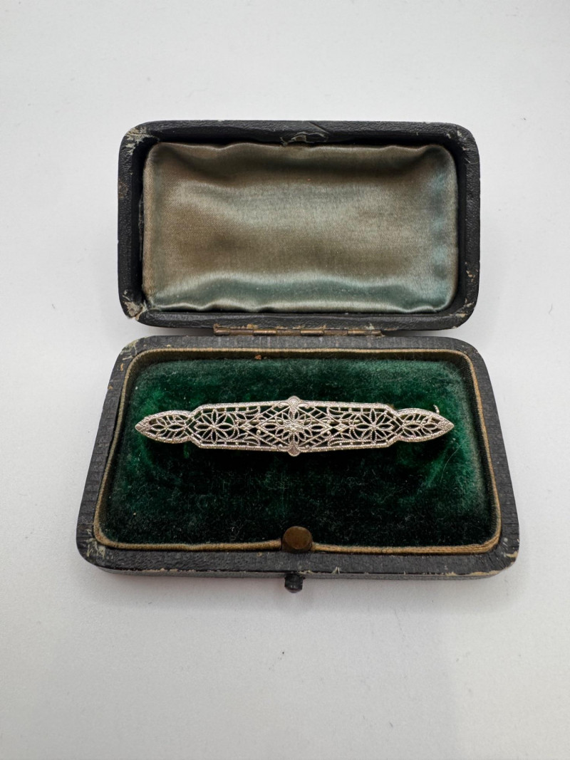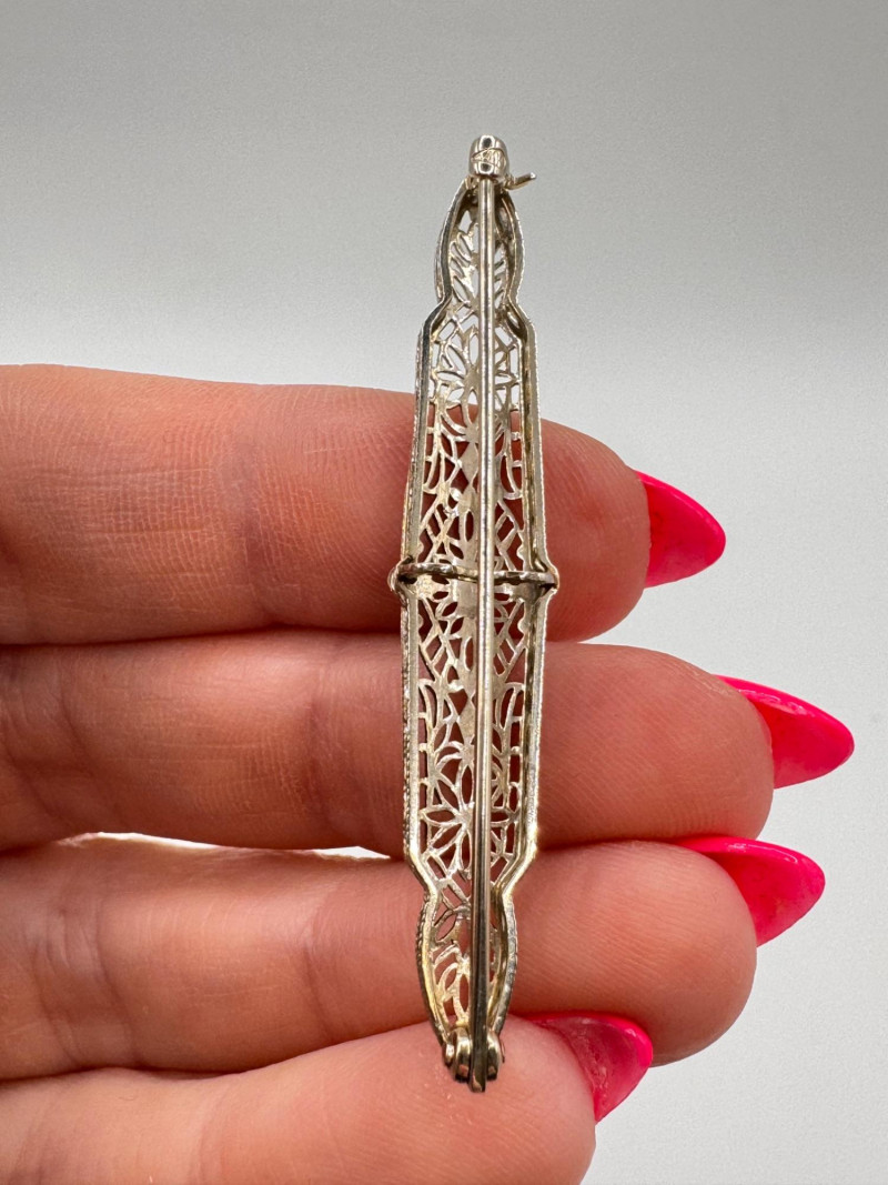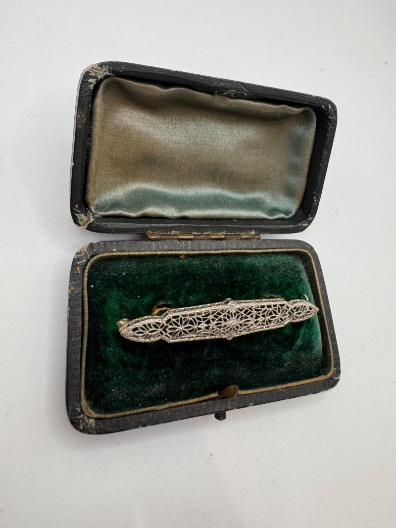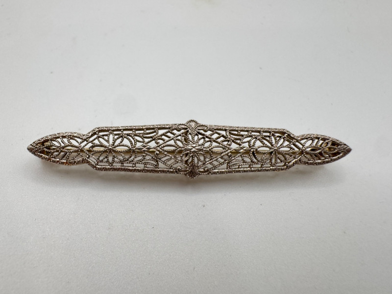 Lot # 117 - 14K White Gold Open Work Filigree Bar Pin - Tested, 3.06g