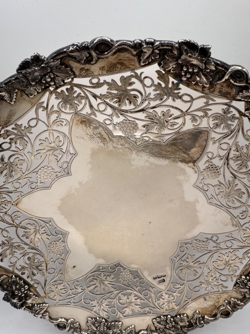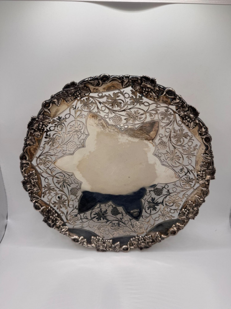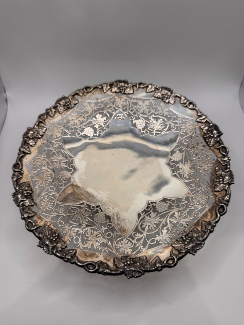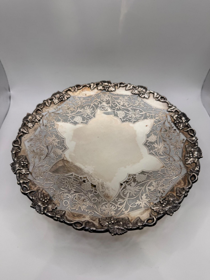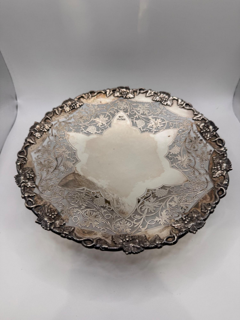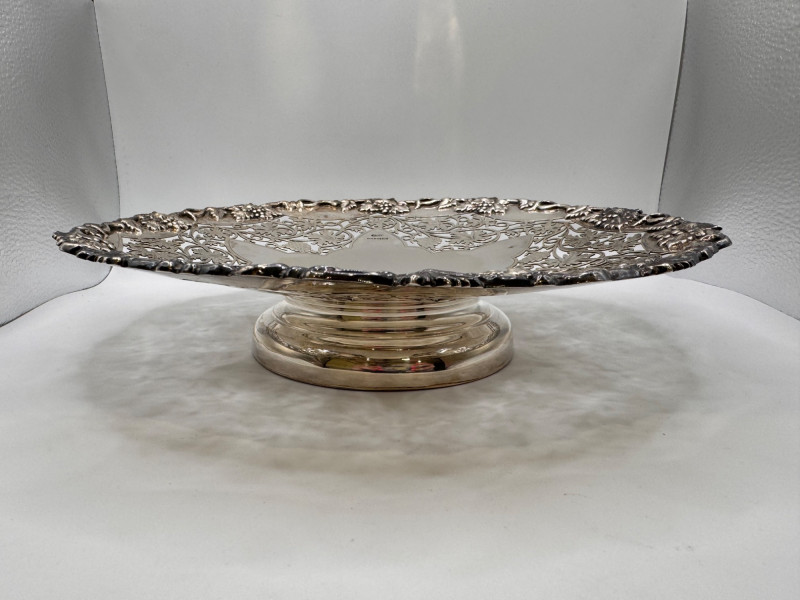 Large Sterling Silver Footed Cake Plate, European Hallmarked - Heavy.