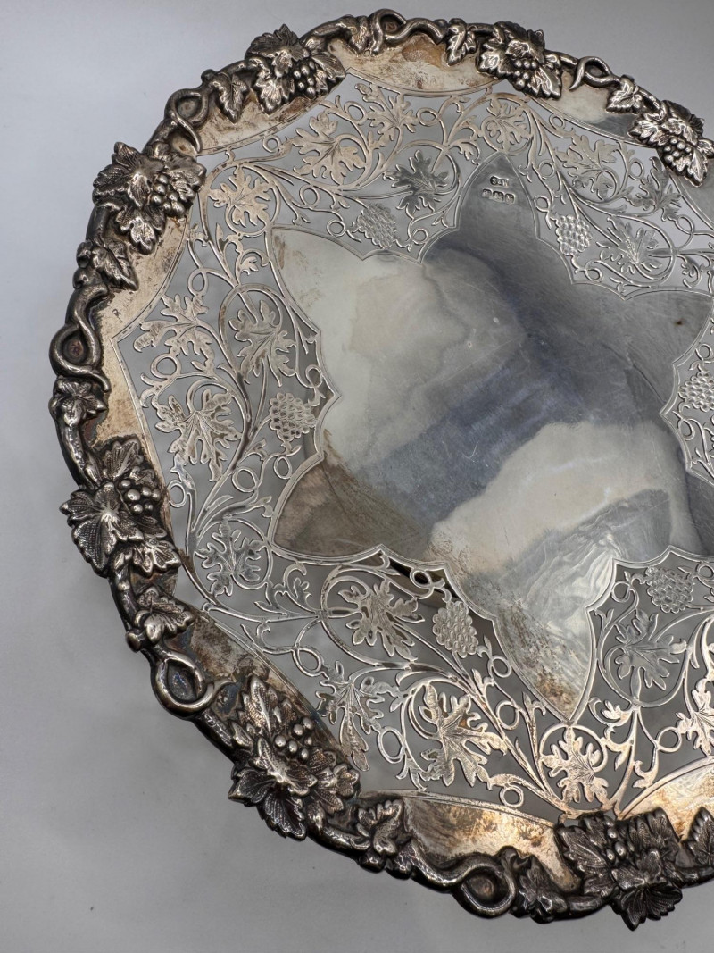 Lot # 119 - Large Sterling Silver Footed Cake Plate, European Hallmarked - Heavy