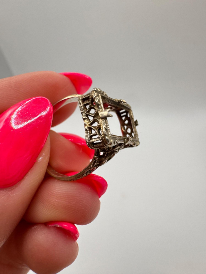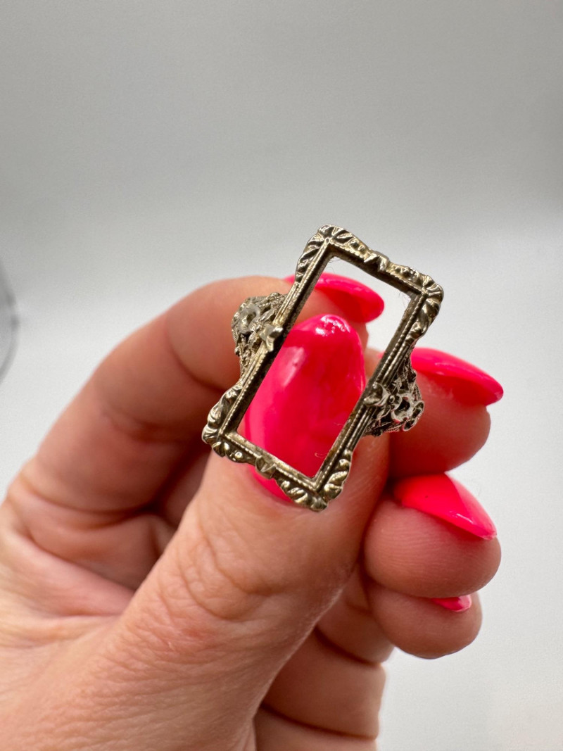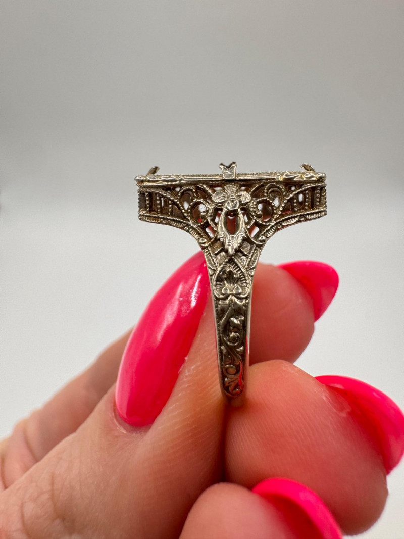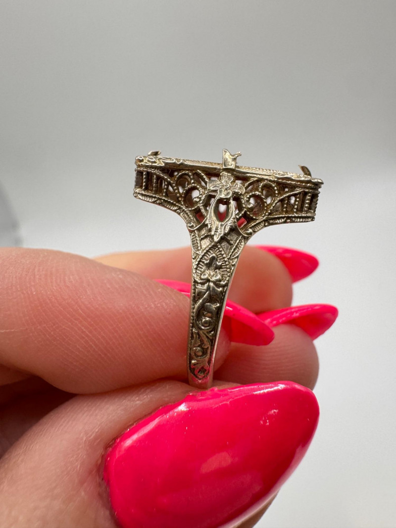 Antique 14K White Gold Filigree Ring, Size 5 - 2.77g.