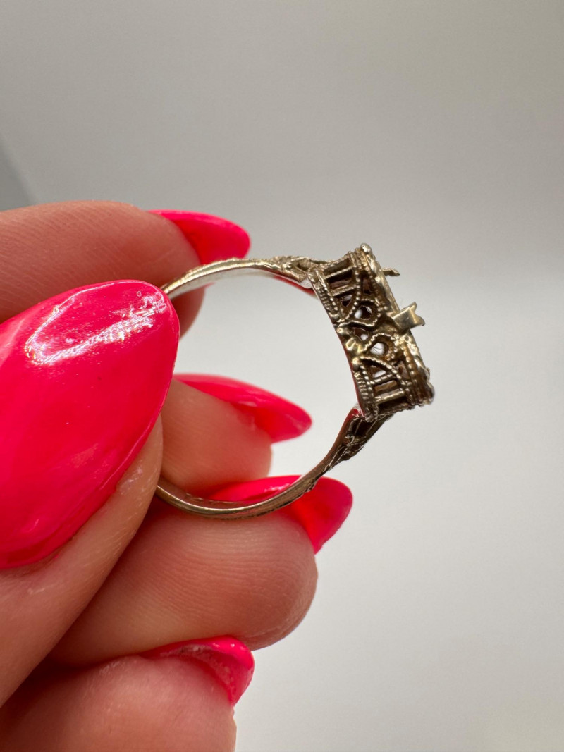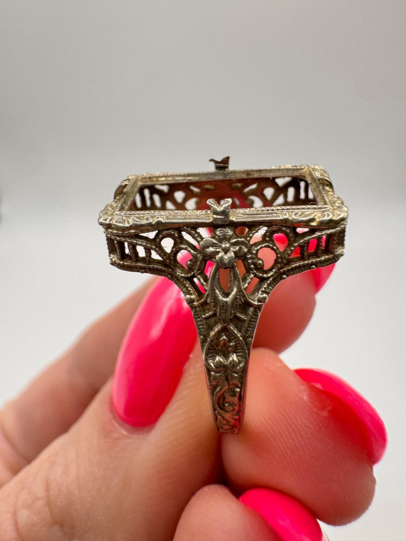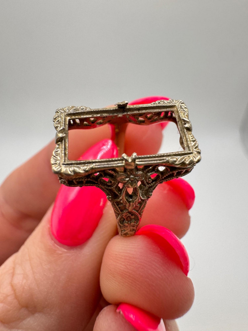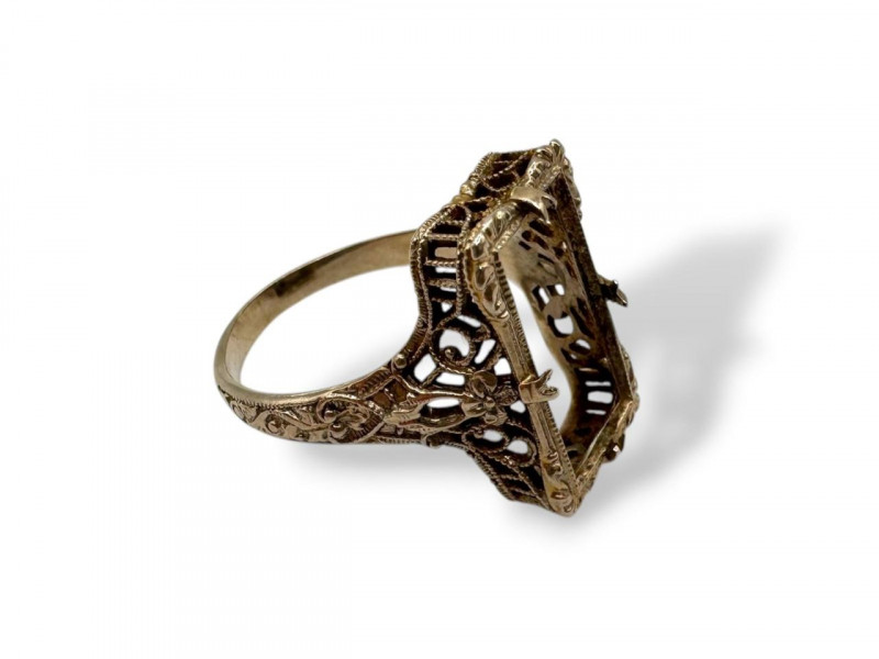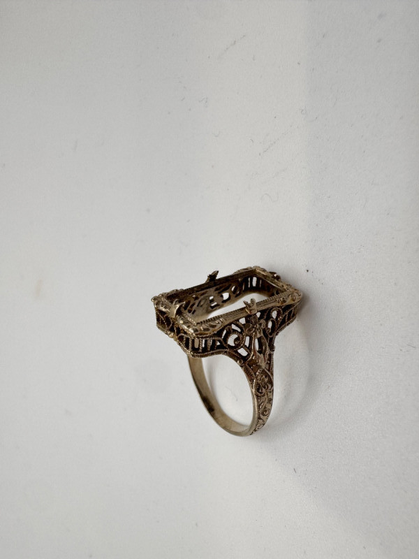 Antique 14K White Gold Filigree Ring, Size 5 - 2.77g.