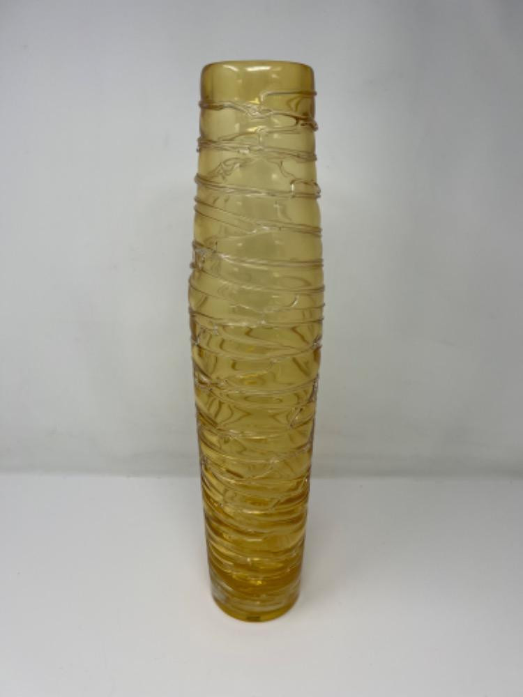 Lot # 17 - Striking Light Amber/Yellow Glass MCM Vase Starting Bid: $ 5.00 Bids: This sale will end in: |
