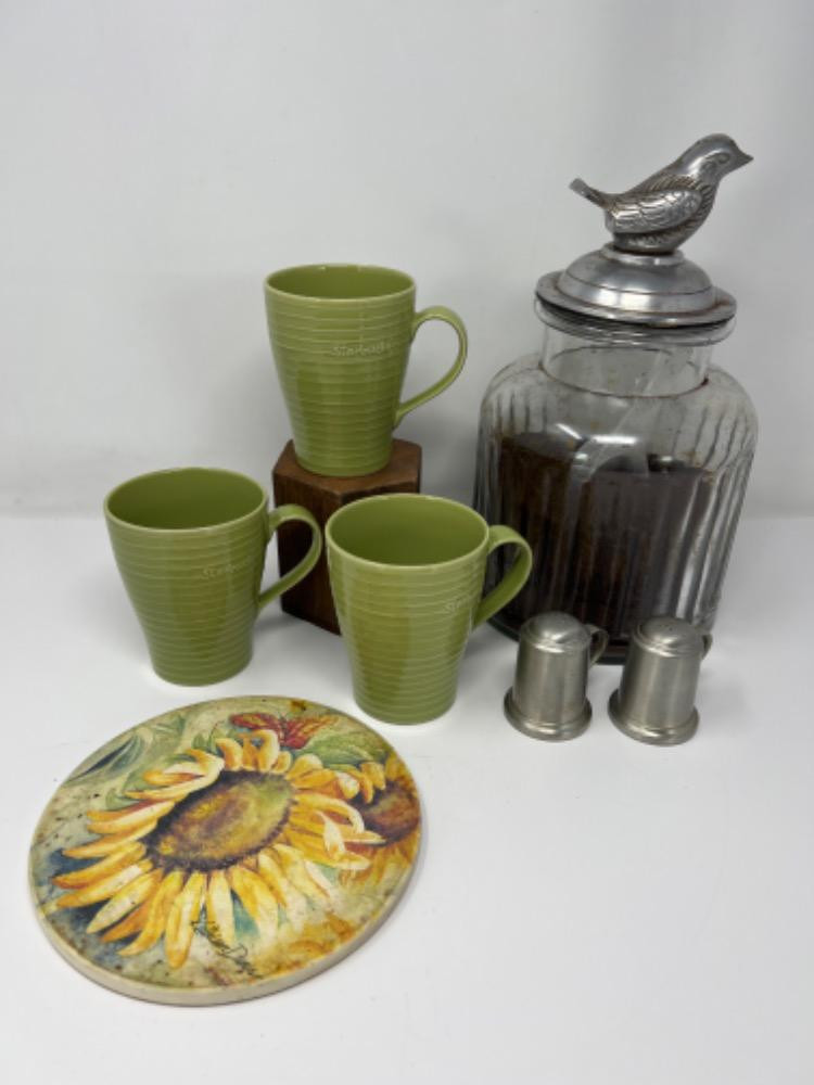 Lot # 26 - Wake Up With The Birds! Coffee Set Up w/ Starbucks Mugs Starting Bid: $ 5.00 Bids: This sale will end in: |