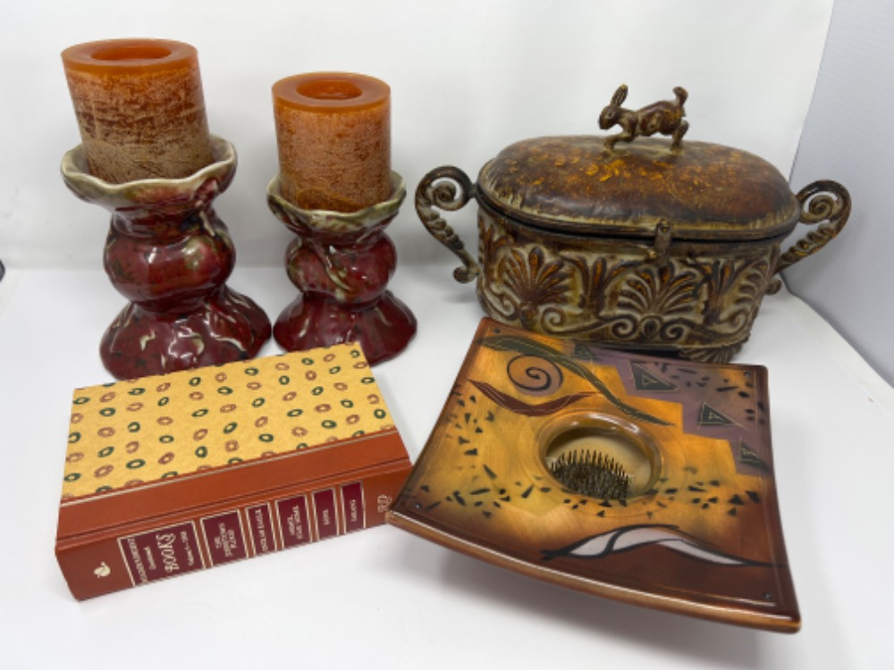Lot # 34 - Earthy Toned Variety of Tabletop Decor- Ceramics & Metals Starting Bid: $ 5.00 Bids: This sale will end in: |