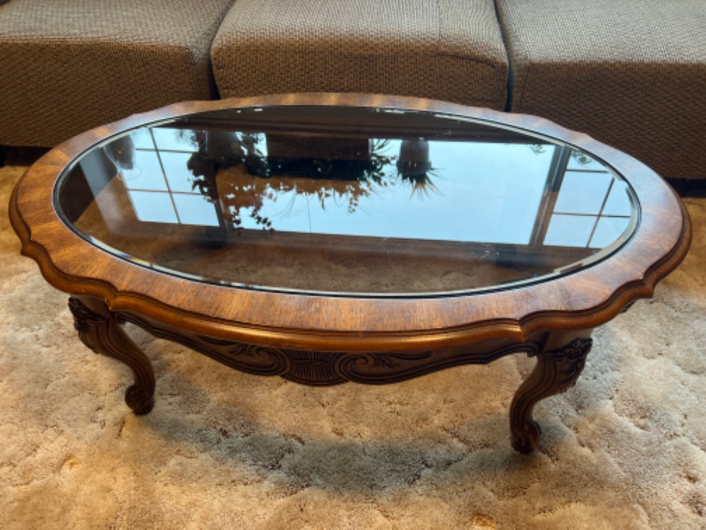 Lot # 77 - Gordon's Wood And Smoke Glass Coffee Table Starting Bid: $ 5.00 Bids: This sale will end in: |