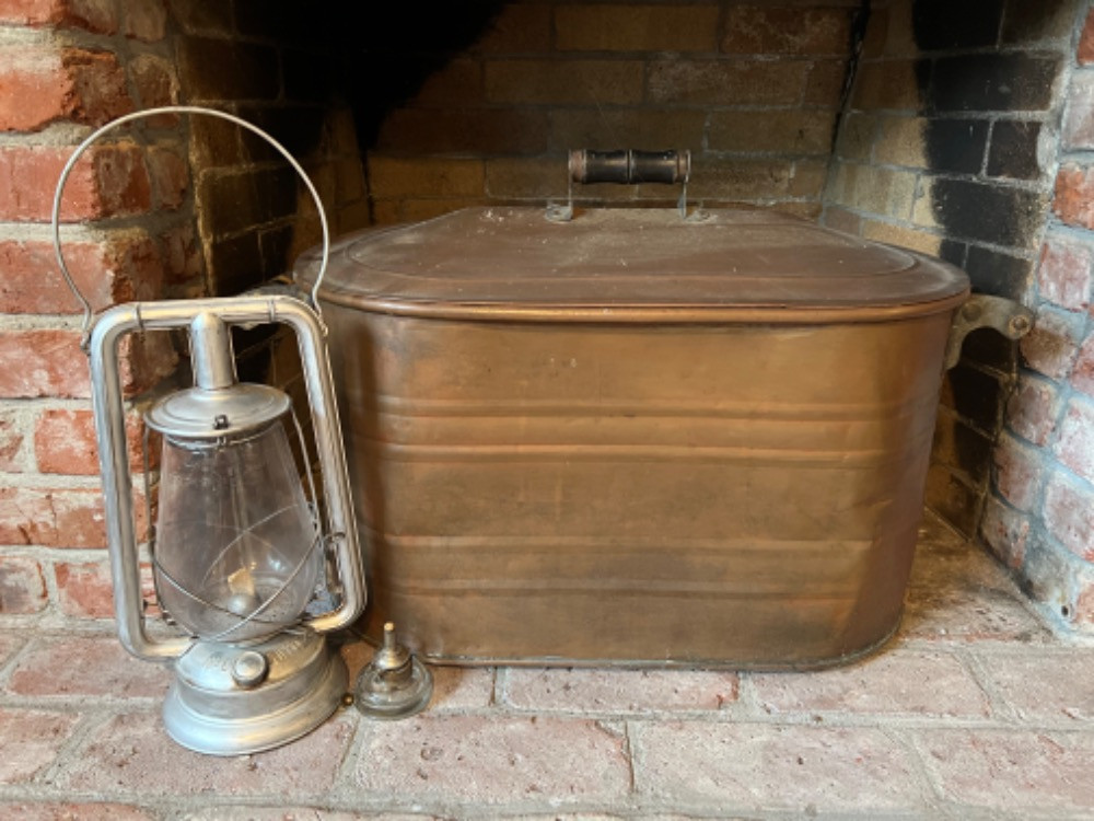 Lot # 80 - Vintage Oil Lamp And Lidded Copper Boiler Starting Bid: $ 5.00 Bids: This sale will end in: |
