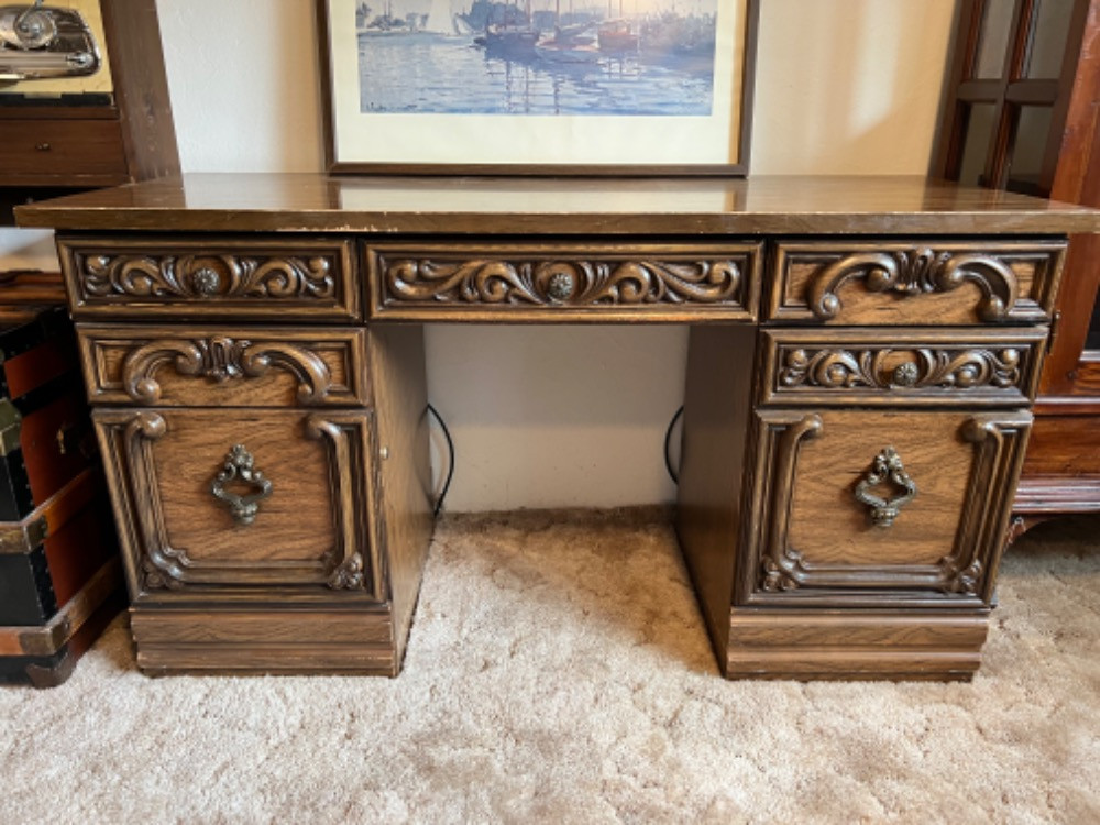 Lot # 87 - 1970s Wooden Desk From DMI Furniture Starting Bid: $ 5.00 Bids: This sale will end in: |