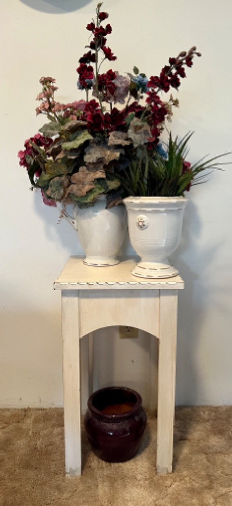 Lot # 89 - Distressed Table & Decor Starting Bid: $ 5.00 Bids: This sale will end in: |